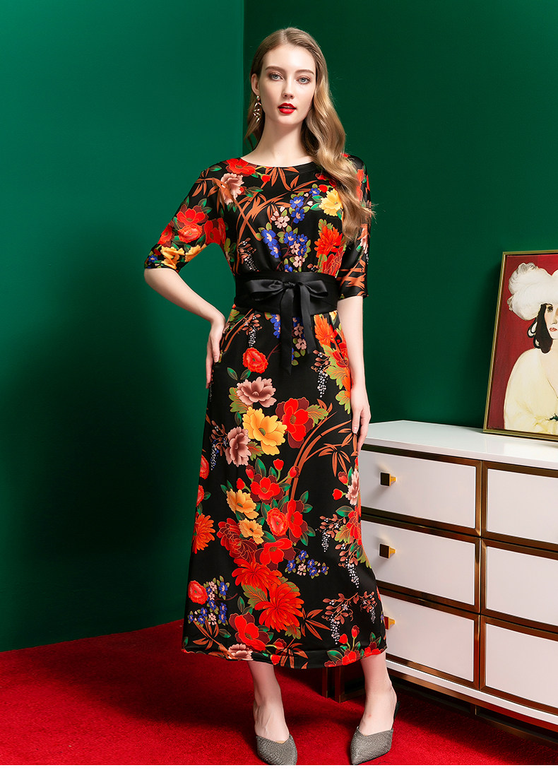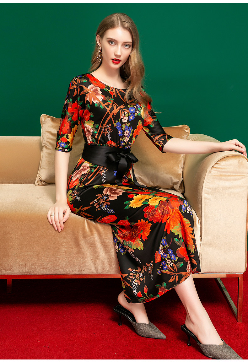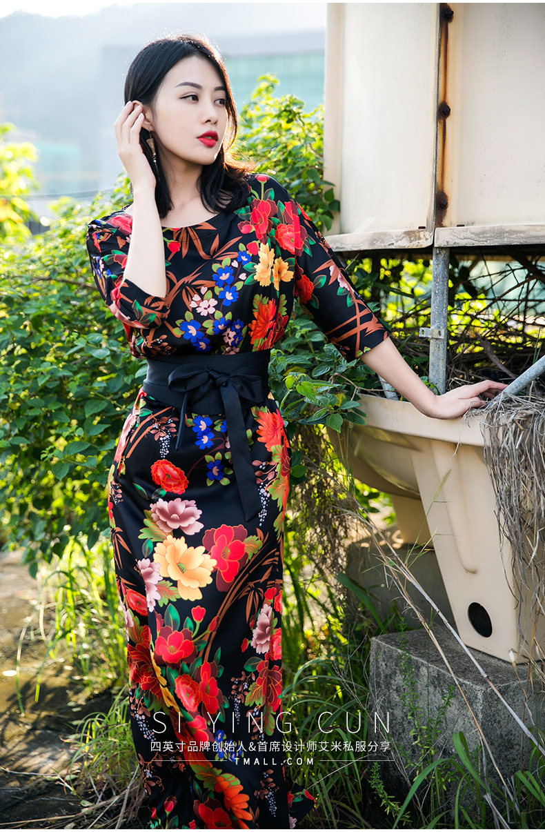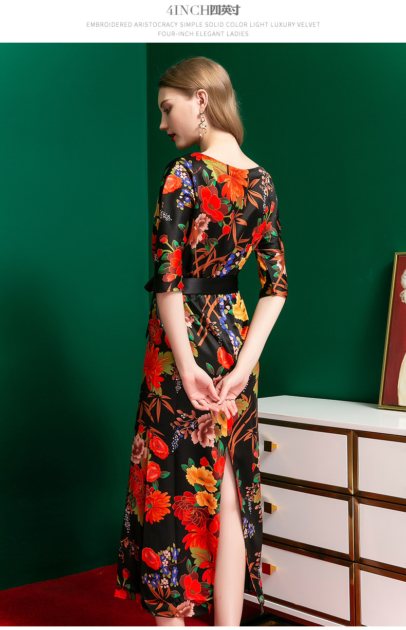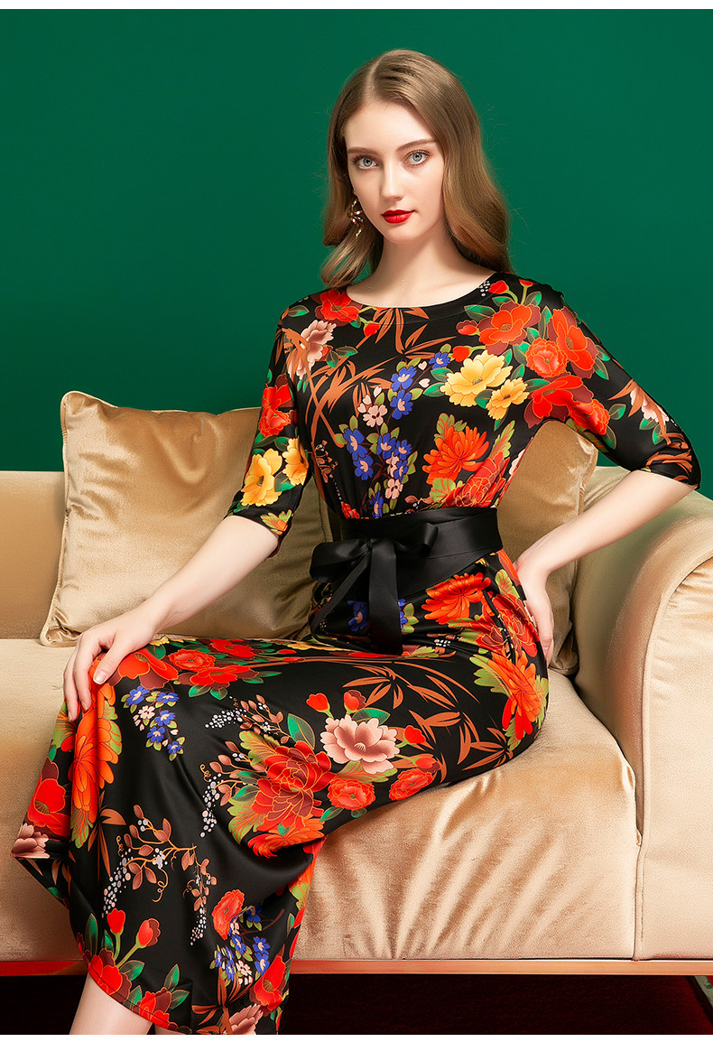 SYC-88651春季新款法式复古淑女印花连衣裙
