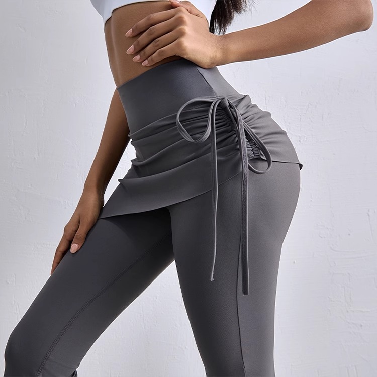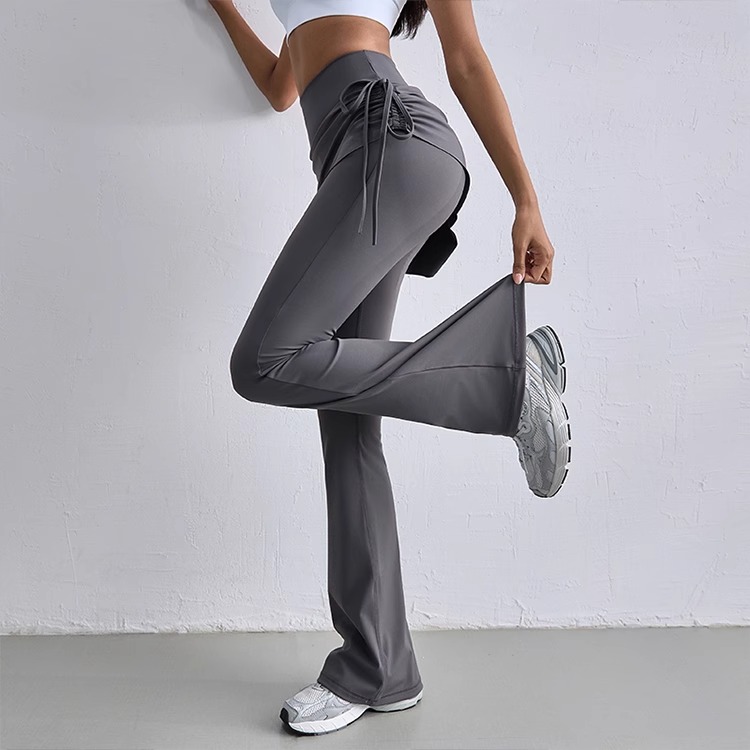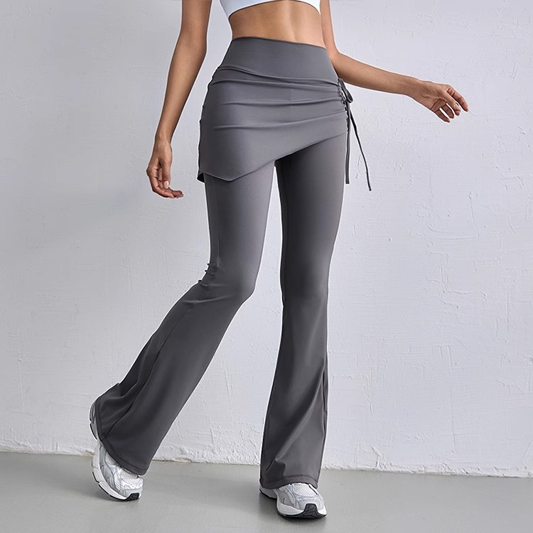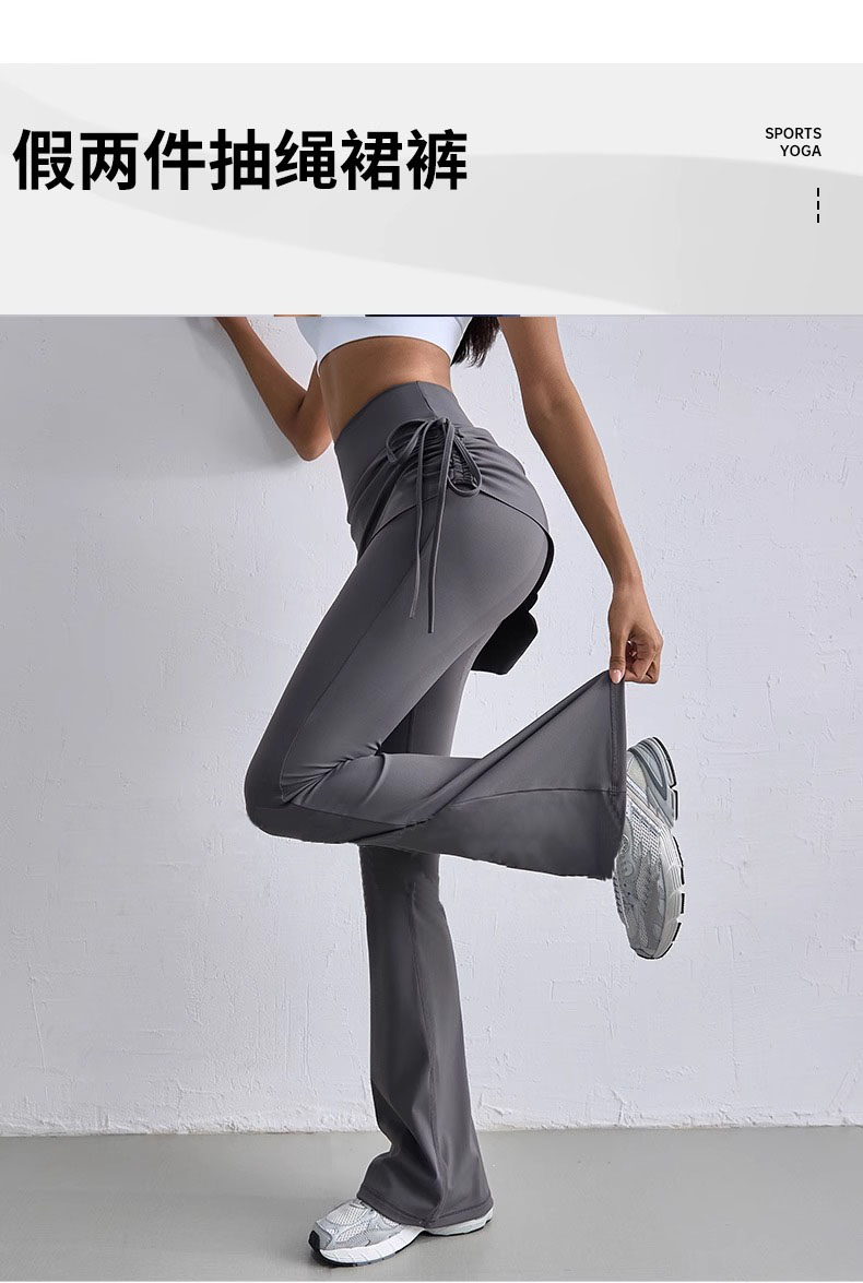 跃牌【瑜堂系列】新款抽皱喇叭裙裤假两件微喇普拉提高腰提臀瑜伽裤JYMK139