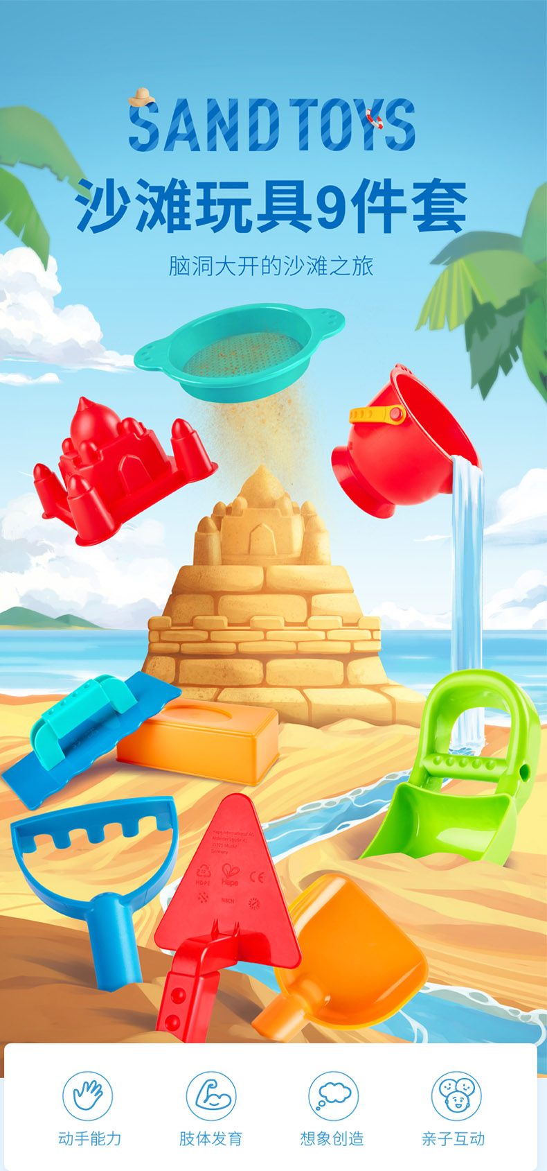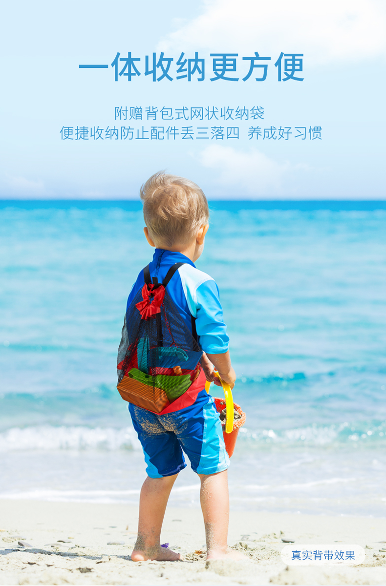 Hape(德国)儿童沙滩玩具加大加厚玩沙戏水玩雪9件套送收纳袋E8404