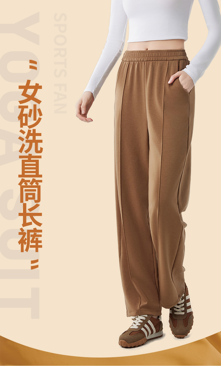 跃牌【砂洗空气层系列】女砂洗直筒长裤W11K1