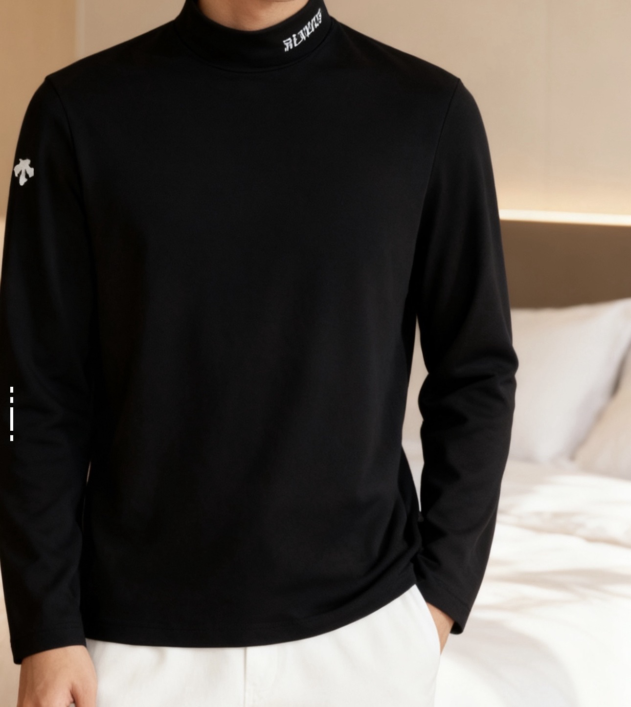 💰139顺丰包邮 现货发 越南代工厂出口韩国订单 原单 25秋冬最新款 原单正品迪桑特男士半高领磨绒长袖衫~某物最低900➕ 只有黑色 标牌齐全 自留款 可直接送人!