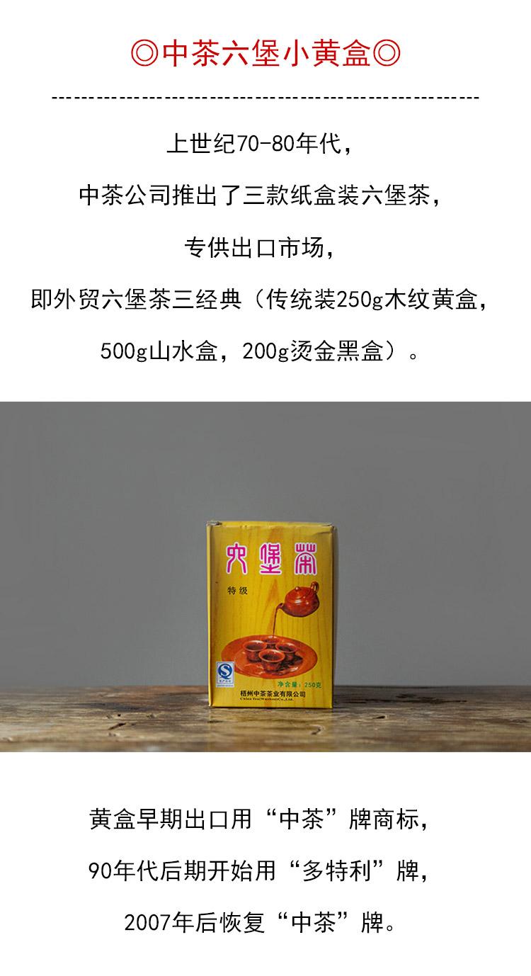 茶香记 中茶六堡小黄盒013 黑茶 梧州茶厂 大厂高标准 外贸出口 甜醇柔润