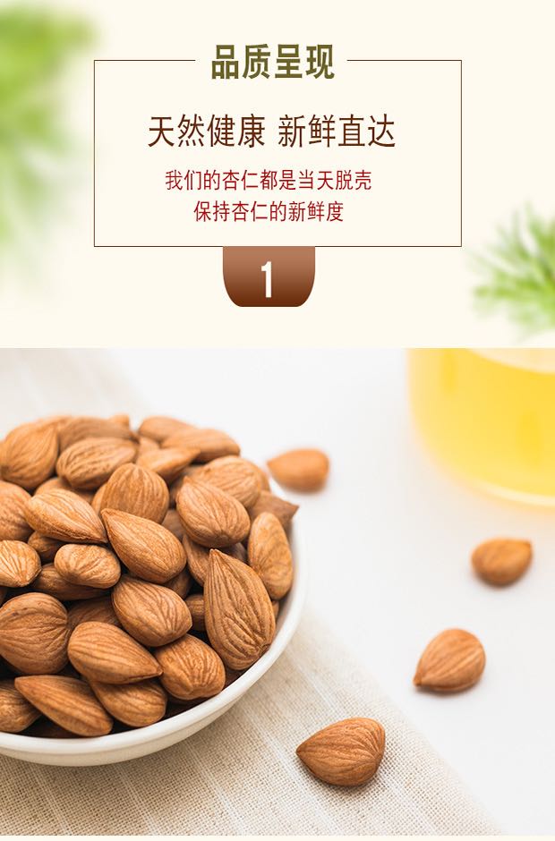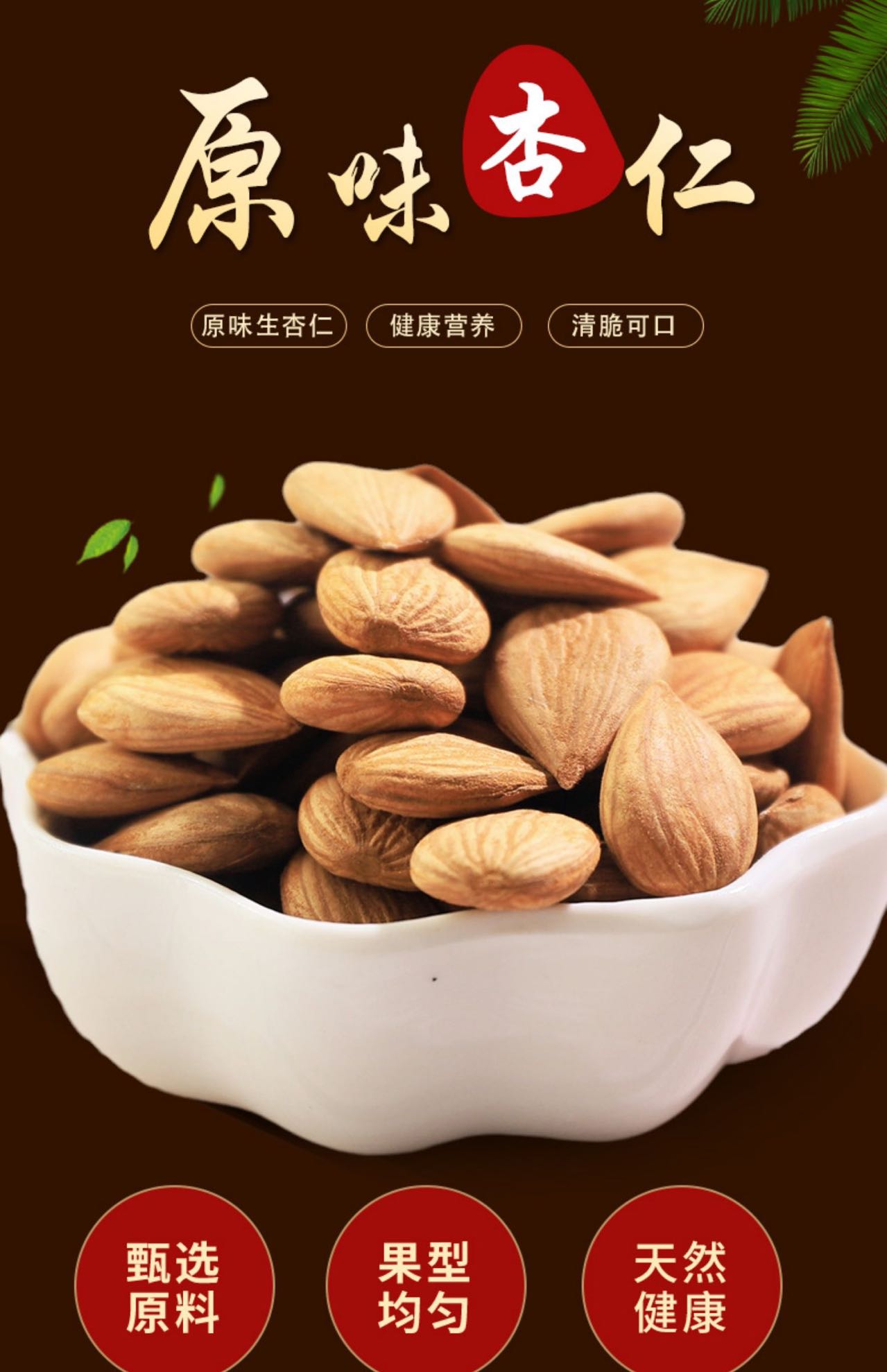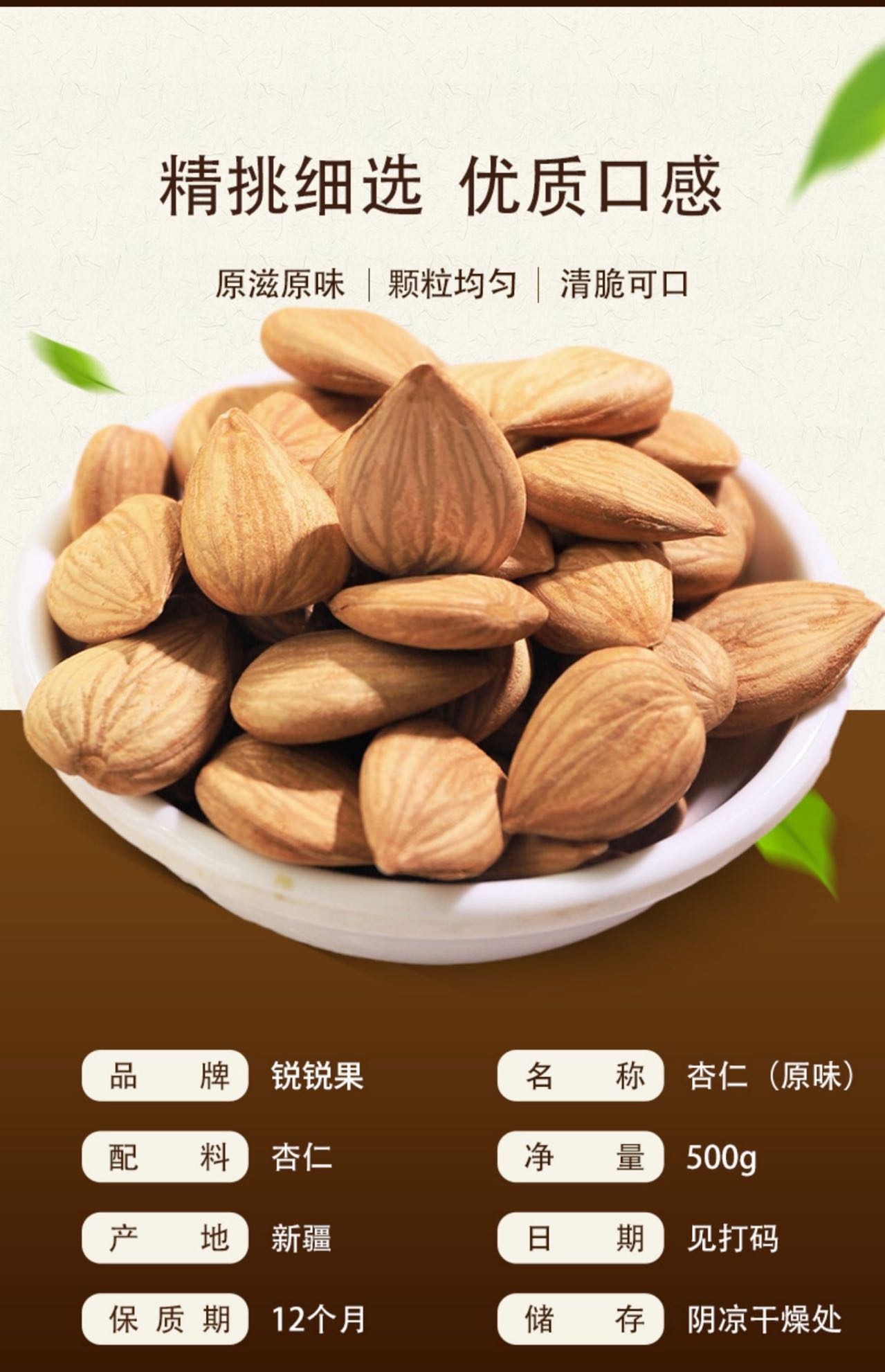 新疆原味生杏仁坚果甜杏仁500g吊干杏杏仁 新疆特产 养身坚果