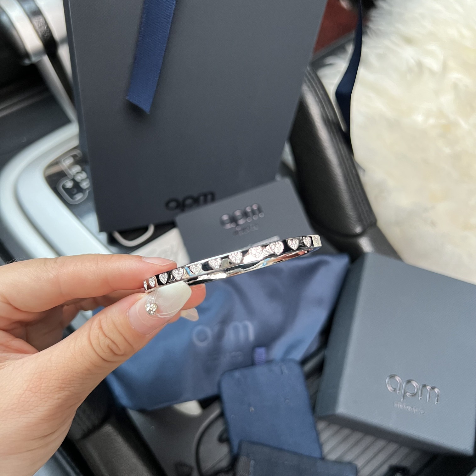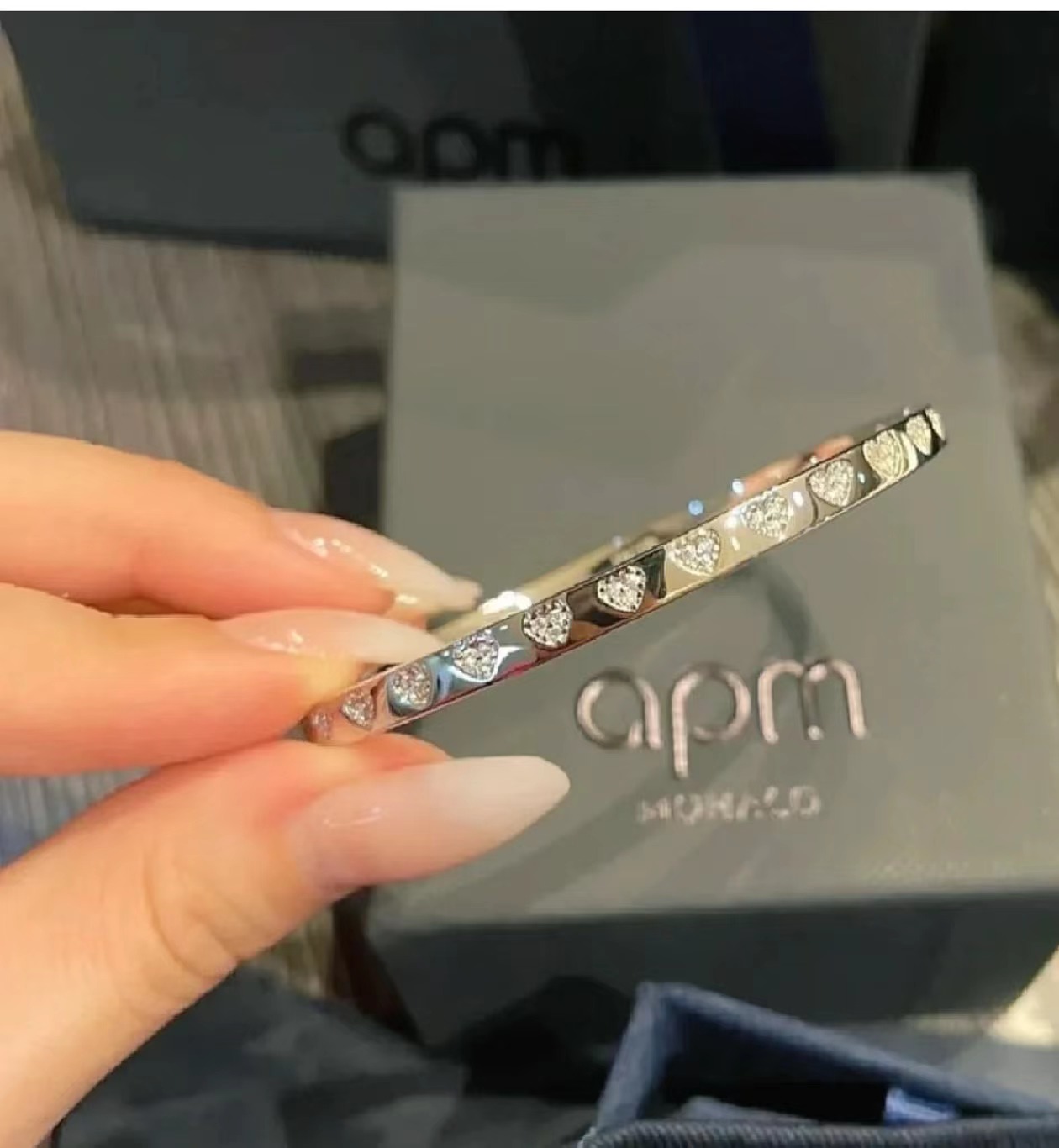 apm手镯可配手链叠加更好看,APM Monaco 新款爱心手镯925银女手环时尚2022新款送女友七夕礼物,配全套包装