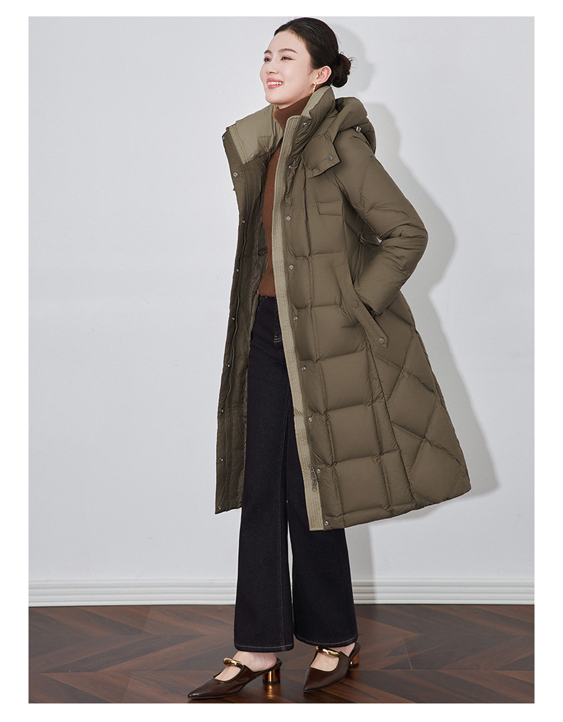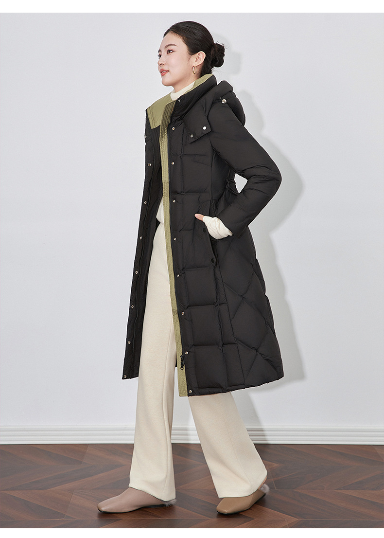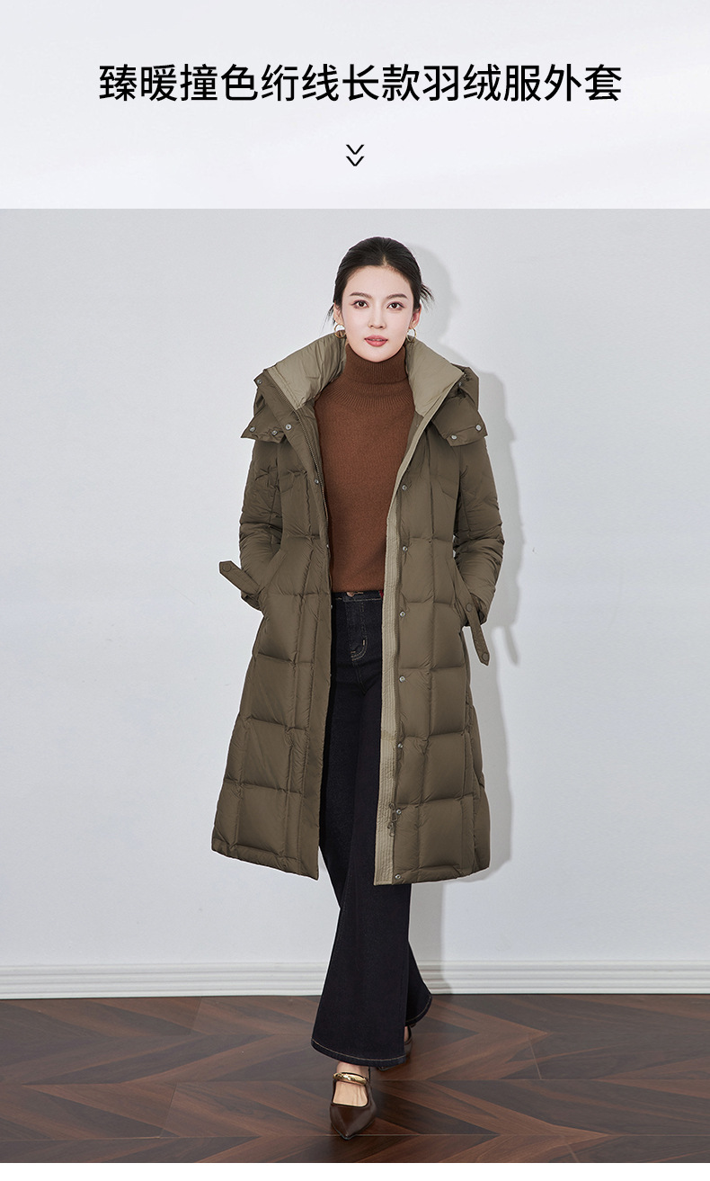 【高货wl】全新升级【铂金会员735/天猫999/差价264】(01014) 洛诗琳时尚撞色白鸭绒羽绒服女冬连帽加厚保暖上衣外套