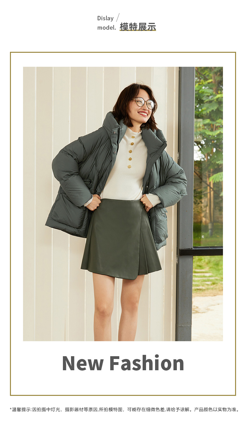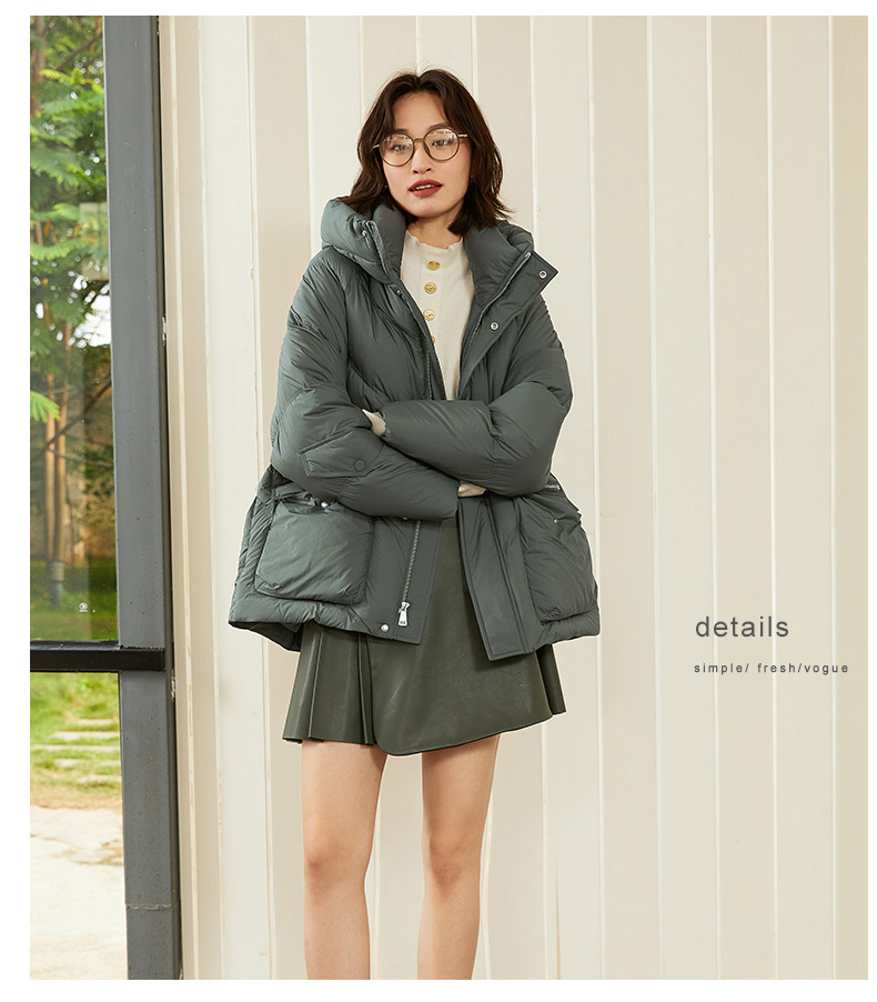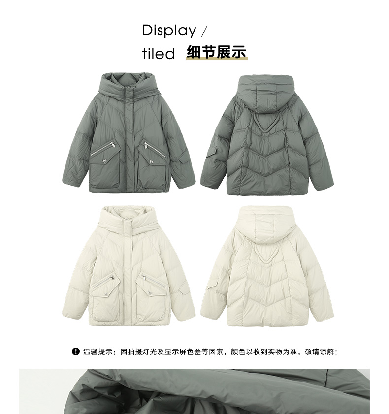 连帽立领大口袋羽绒服女2024年冬季新款蓬松饱满90%鸭绒面包服