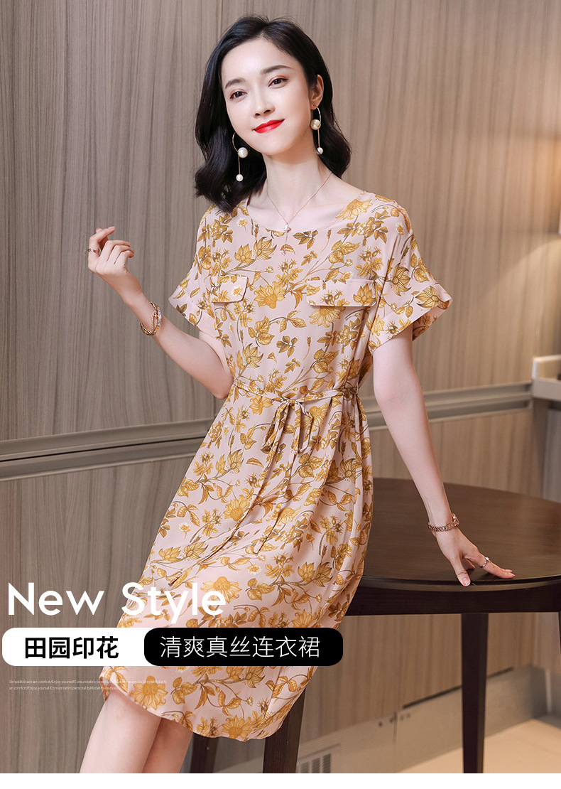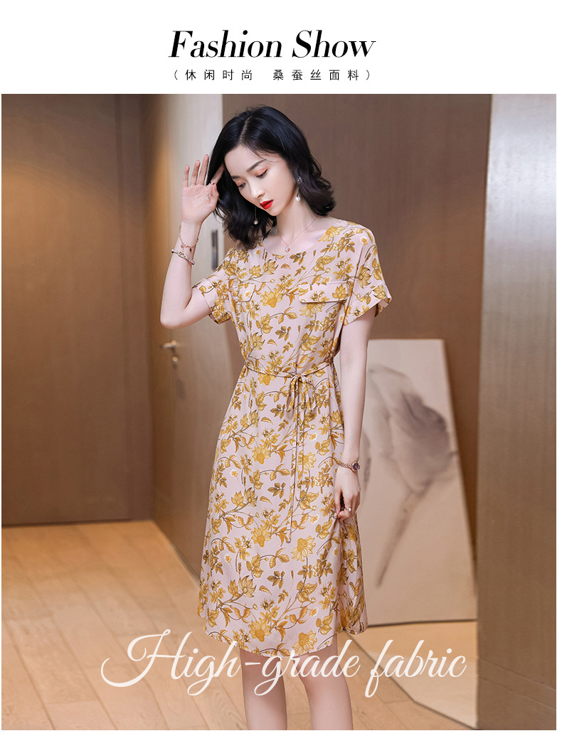 上海旗袍厂ASE-2326正宗真丝连衣裙2021新款夏季印花气质桑蚕丝裙子优雅潮