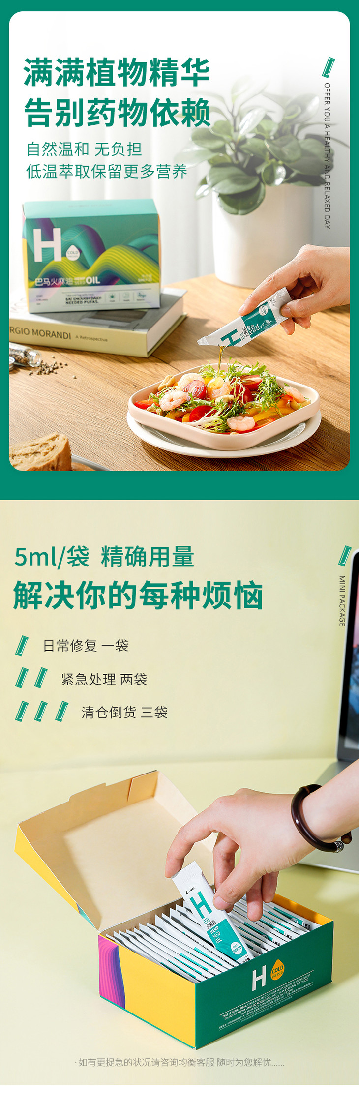 均衡小站小袋油系列~特级巴马初榨火麻籽油5ml*21袋/盒