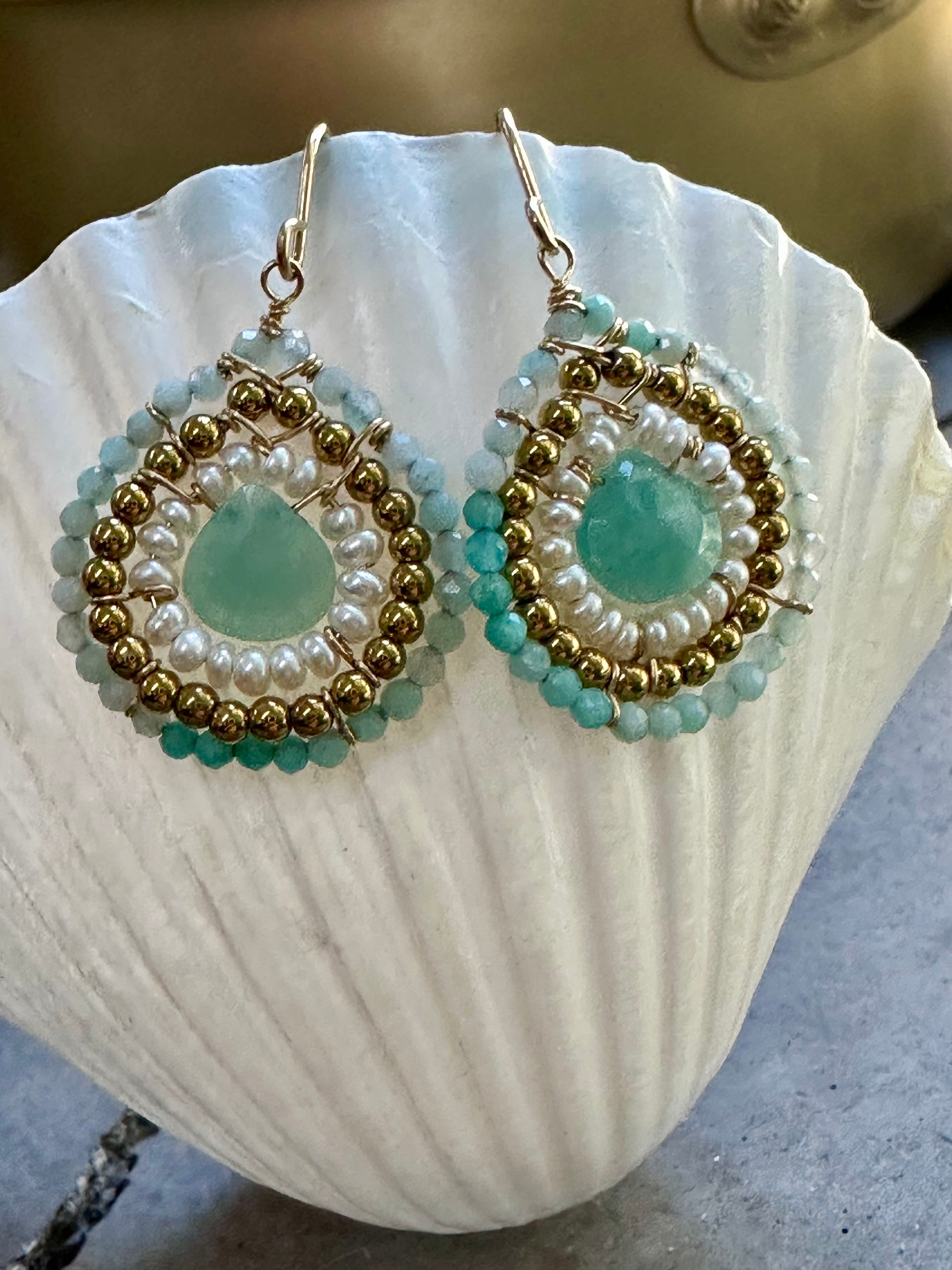 SpoiledBrat Jewelry戏剧系列 |14K注金斜长石蓝锆石耳环