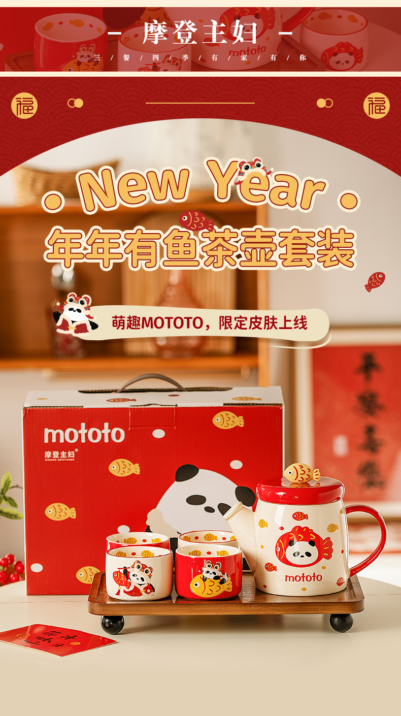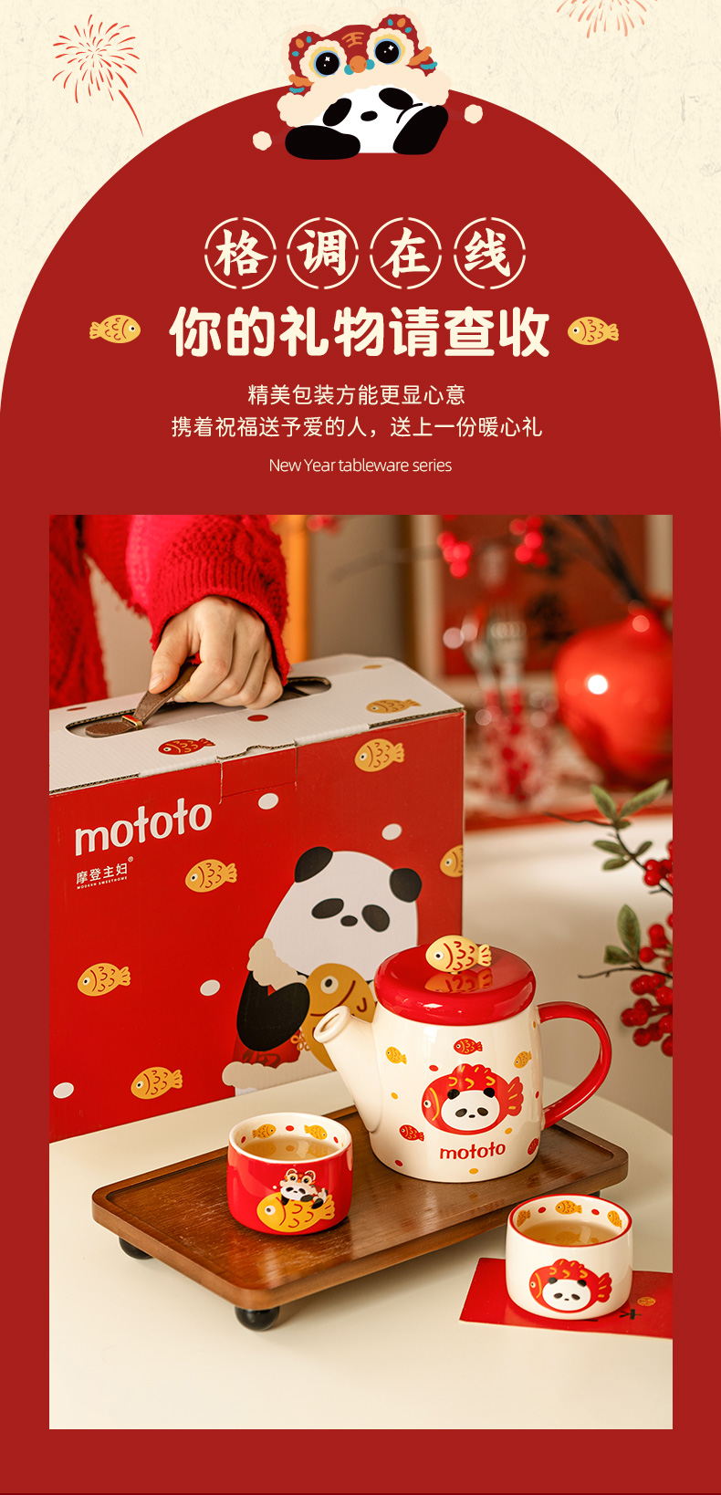 摩登主妇 mototo熊猫陶瓷泡茶壶套装乔迁结婚新婚圣诞礼物茶具杯子