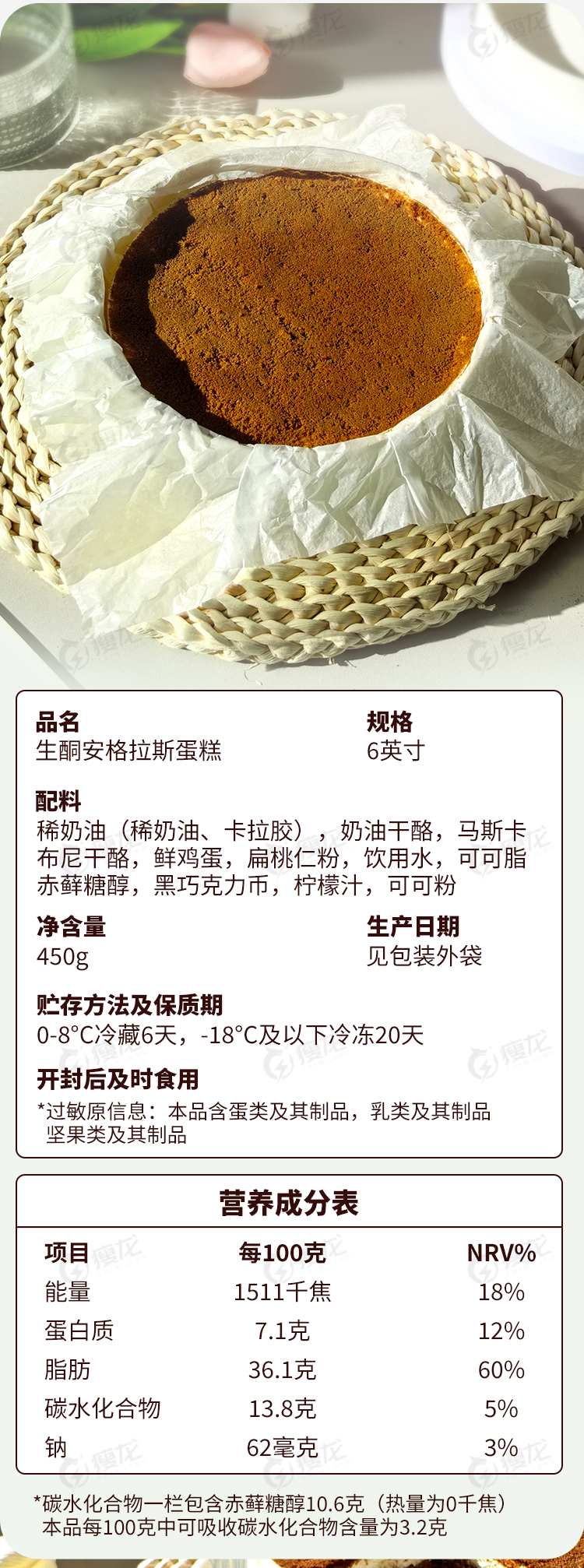 【迷黛尔】生酮安格拉斯蛋糕(6英寸)0蔗糖0面粉0谷朊粉