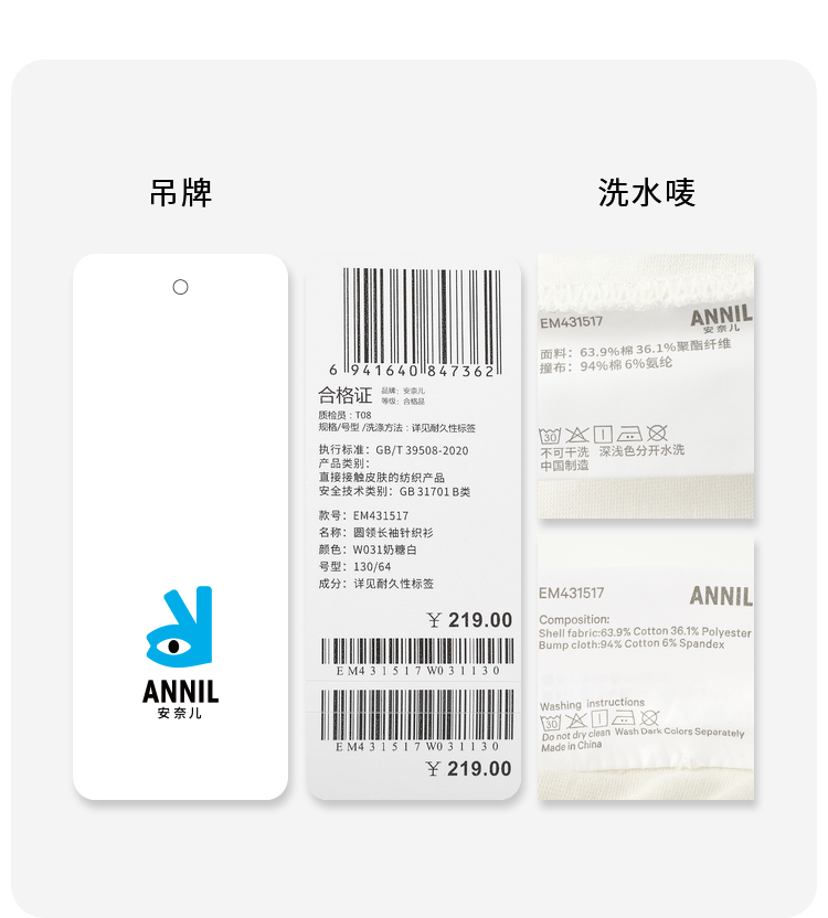 男女童圆领长袖针织衫秋季新款安奈儿童装EM431517