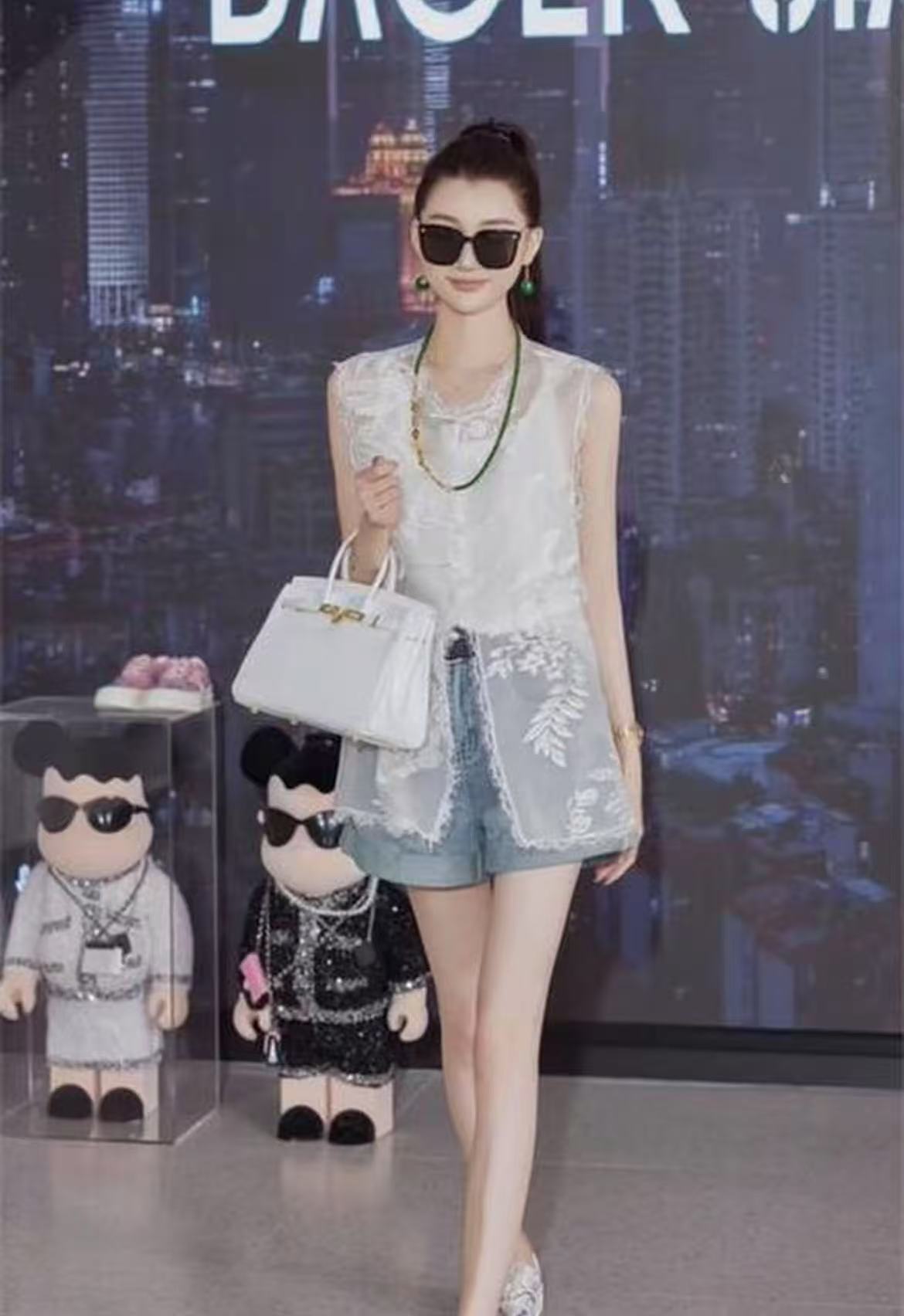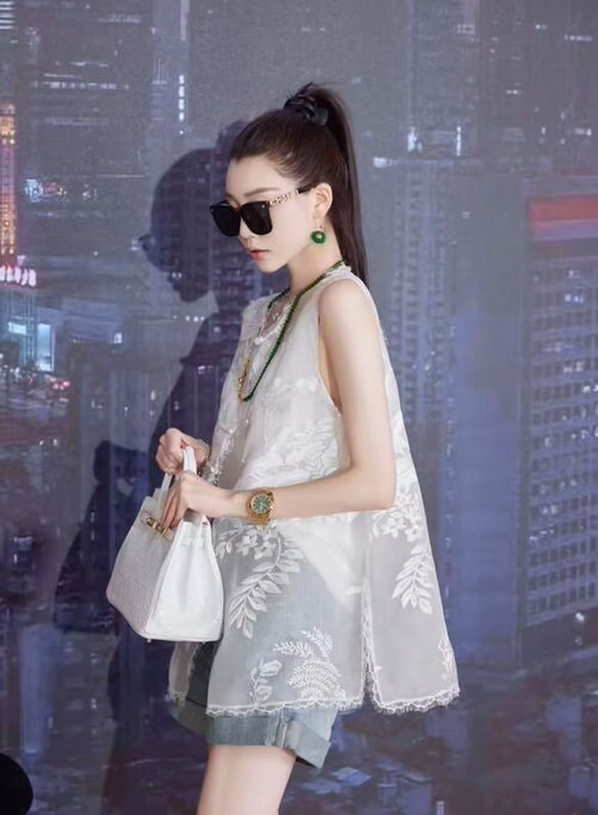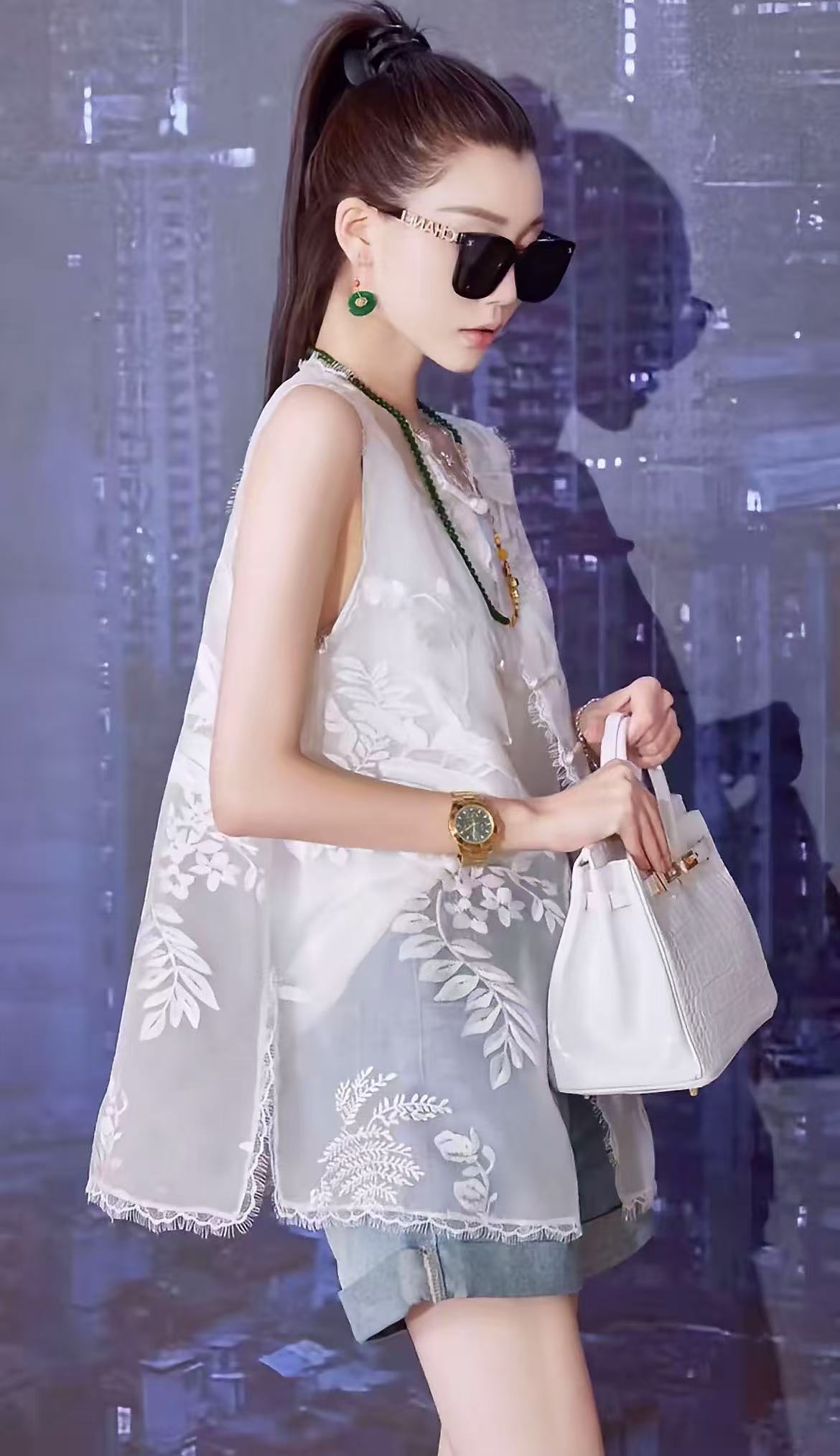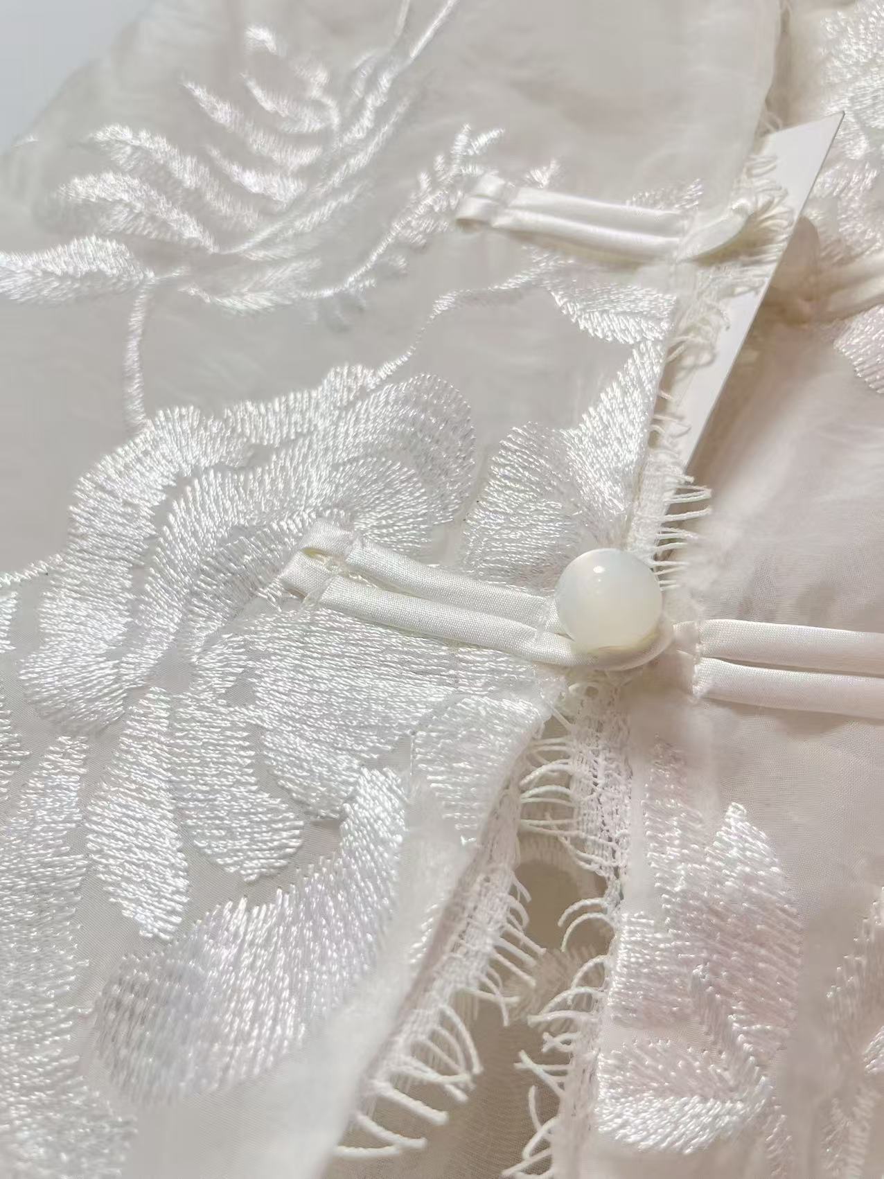 【MYBL】8899双层欧根纱超美新中式刺绣蕾丝边侧开叉马甲-喜出