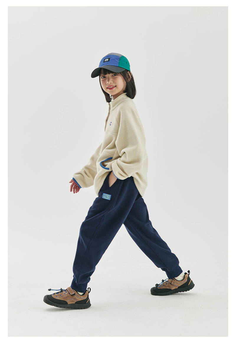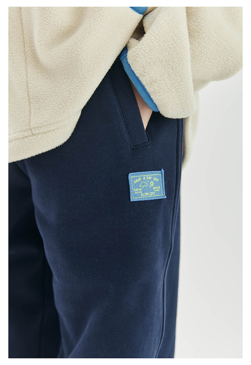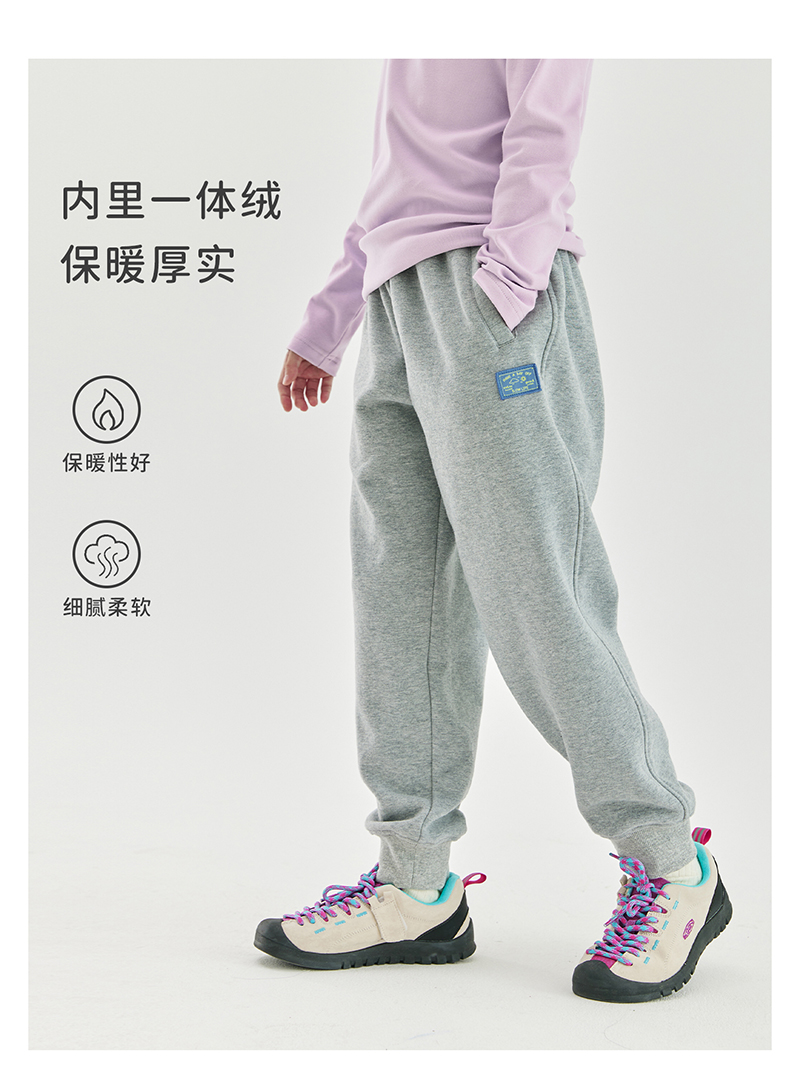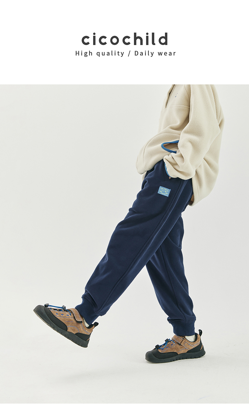 cicochild2024秋冬新款女童加绒裤子男童休闲运动纯色束脚长裤