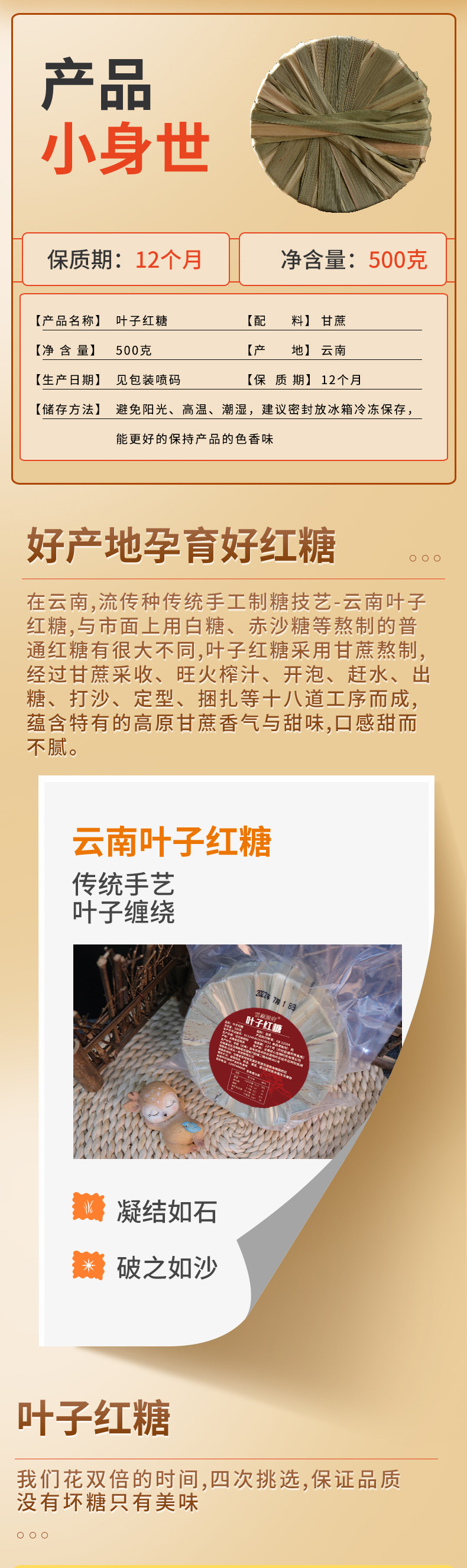 【品名】云南叶子红糖 【规格】500g/块*3块 【保质期】12个月 【储存方法】避免阳光、高温、潮湿,建议密封放冰箱冷冻保存 【产地】云南 【发货地】云南 【发货快递】韵达,圆通 【不发货区域】新疆,西藏,港澳台地区不发 【补邮费地区】内蒙+4元 【发货时效】48小时,节假日顺延 |
