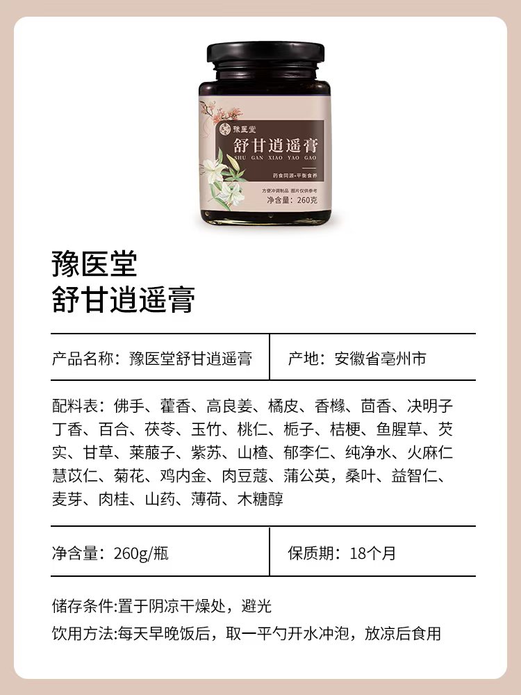 豫医堂舒甘膏逍遥膏佛手香橼 上热下寒三焦淤堵 草本肝郁堵中焦不通