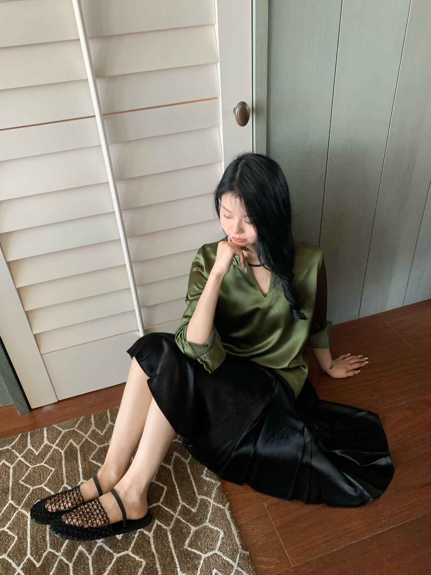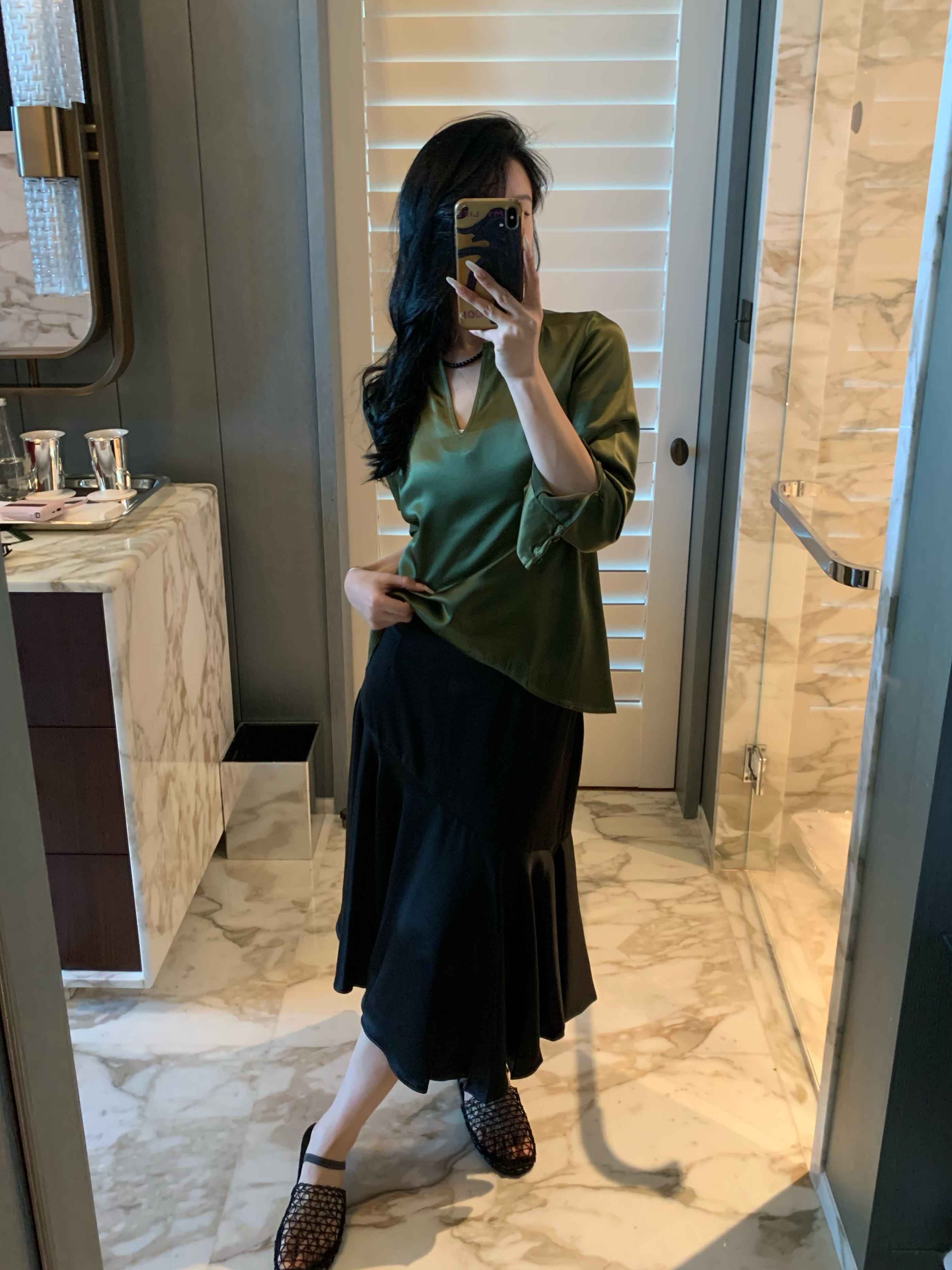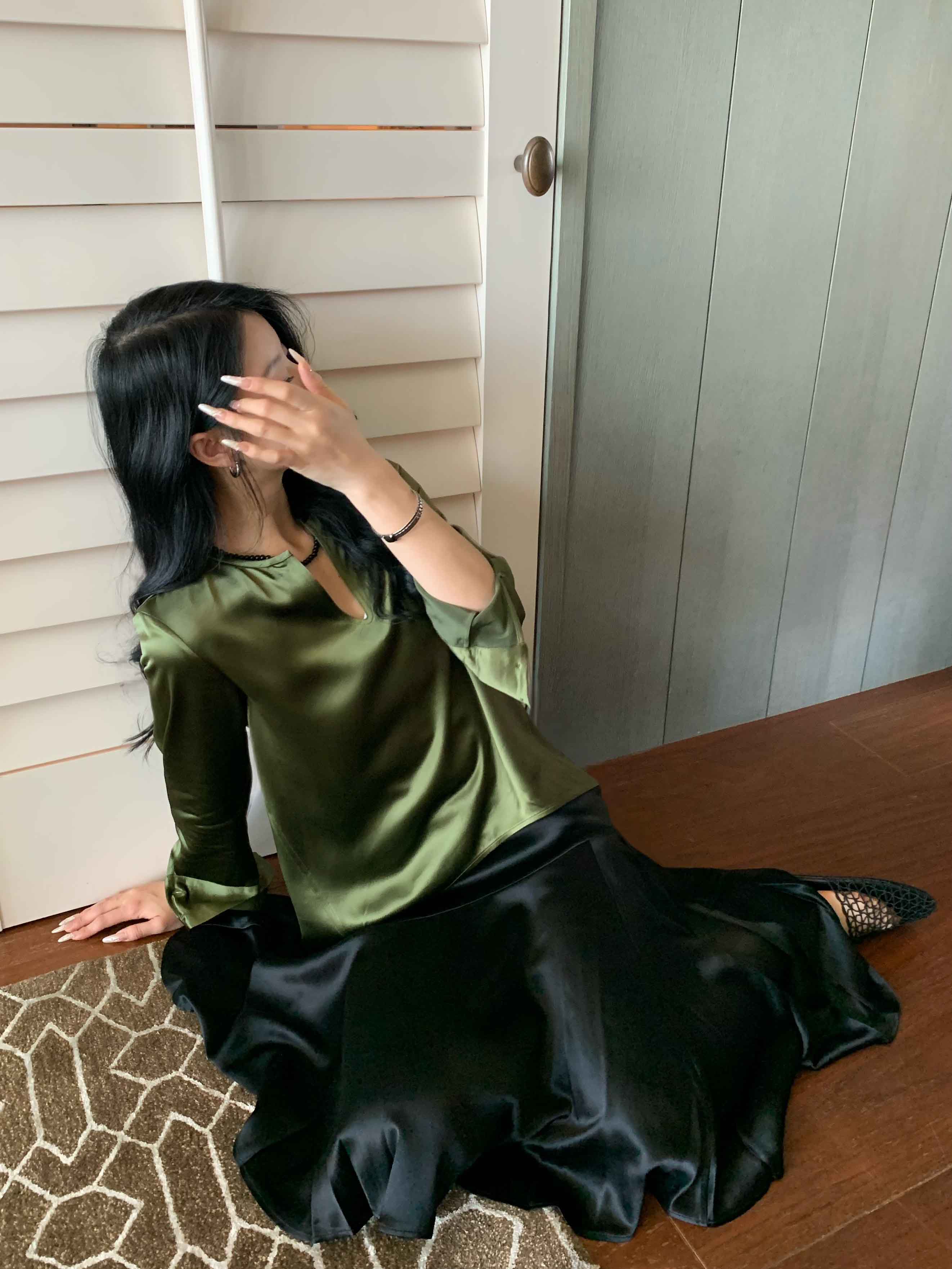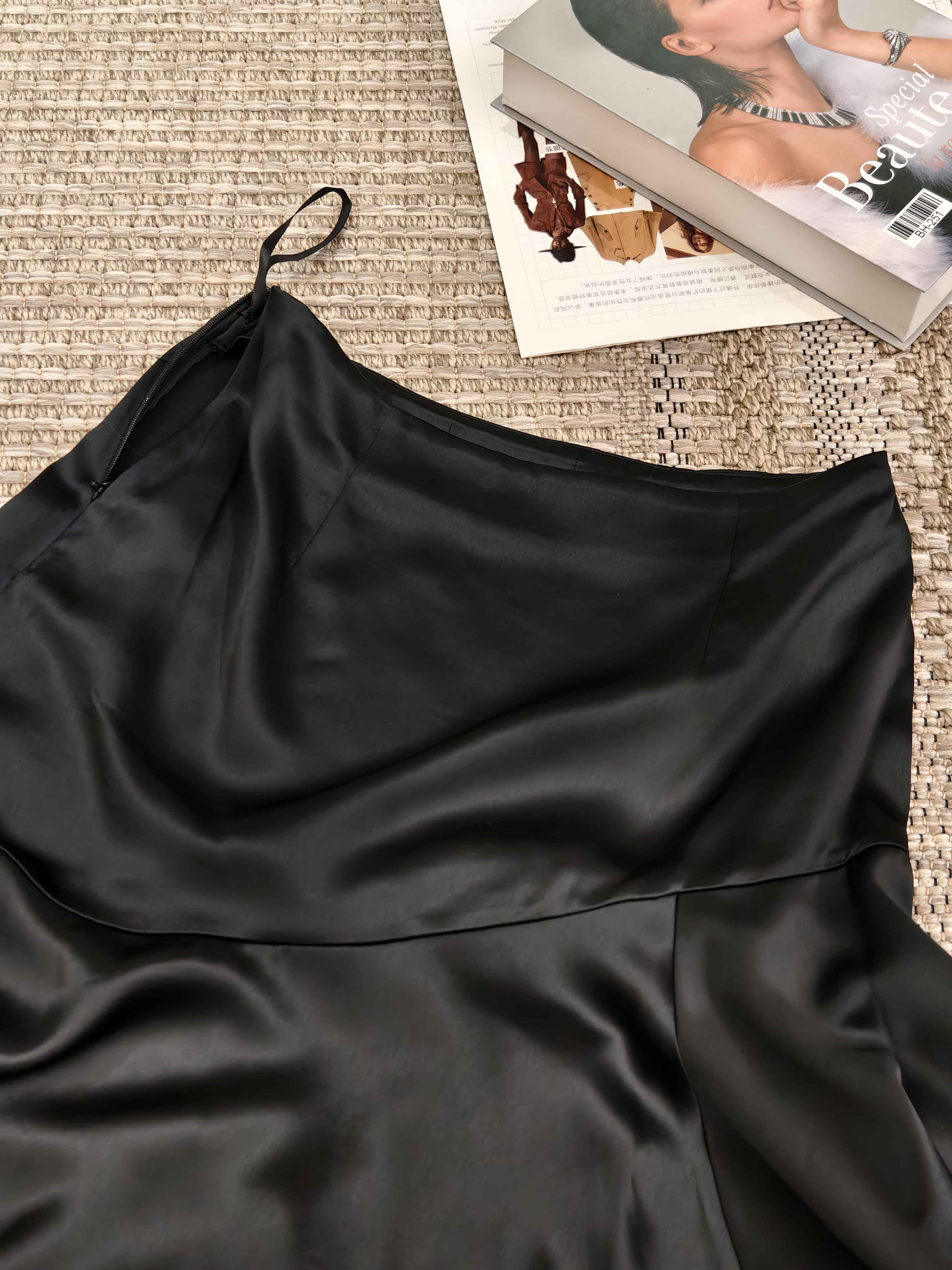 顺丰包邮洛诗琳14028夏季新款设计感不对称分割气质醋酸半裙0719