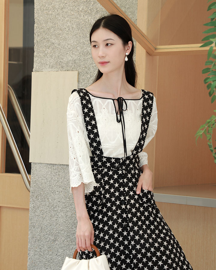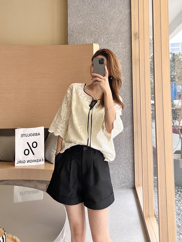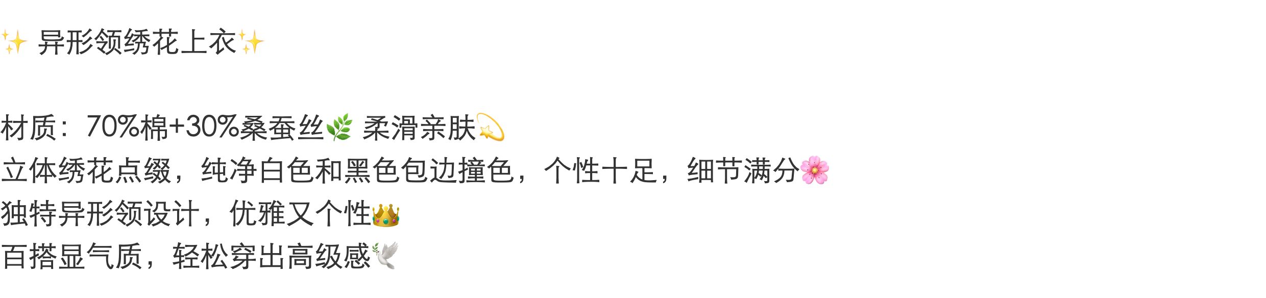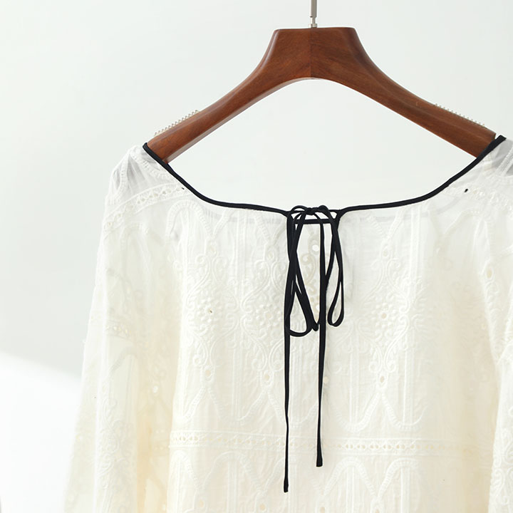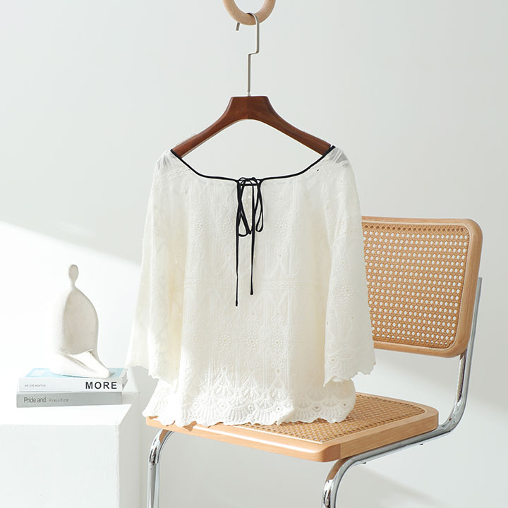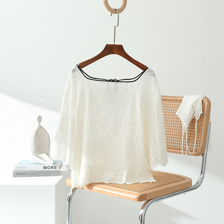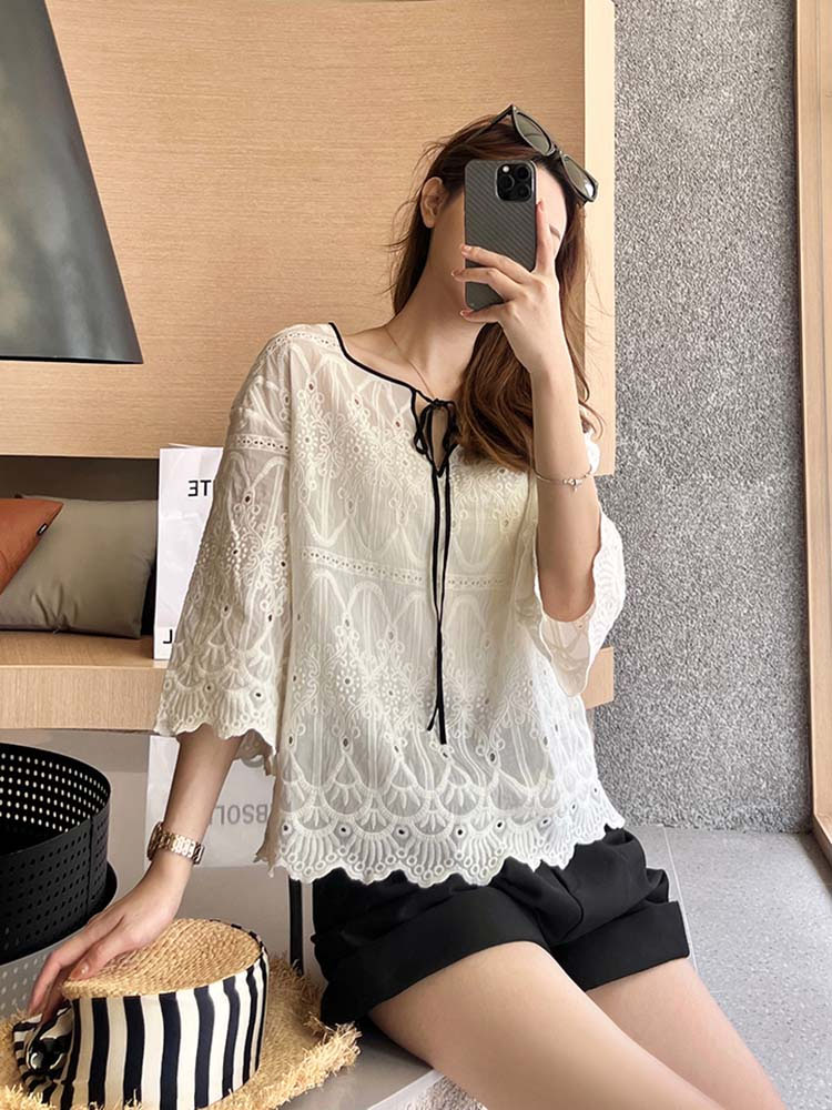 洛诗琳15331法式优雅绣花衬衫2025夏季新款七分袖刺绣上衣0831