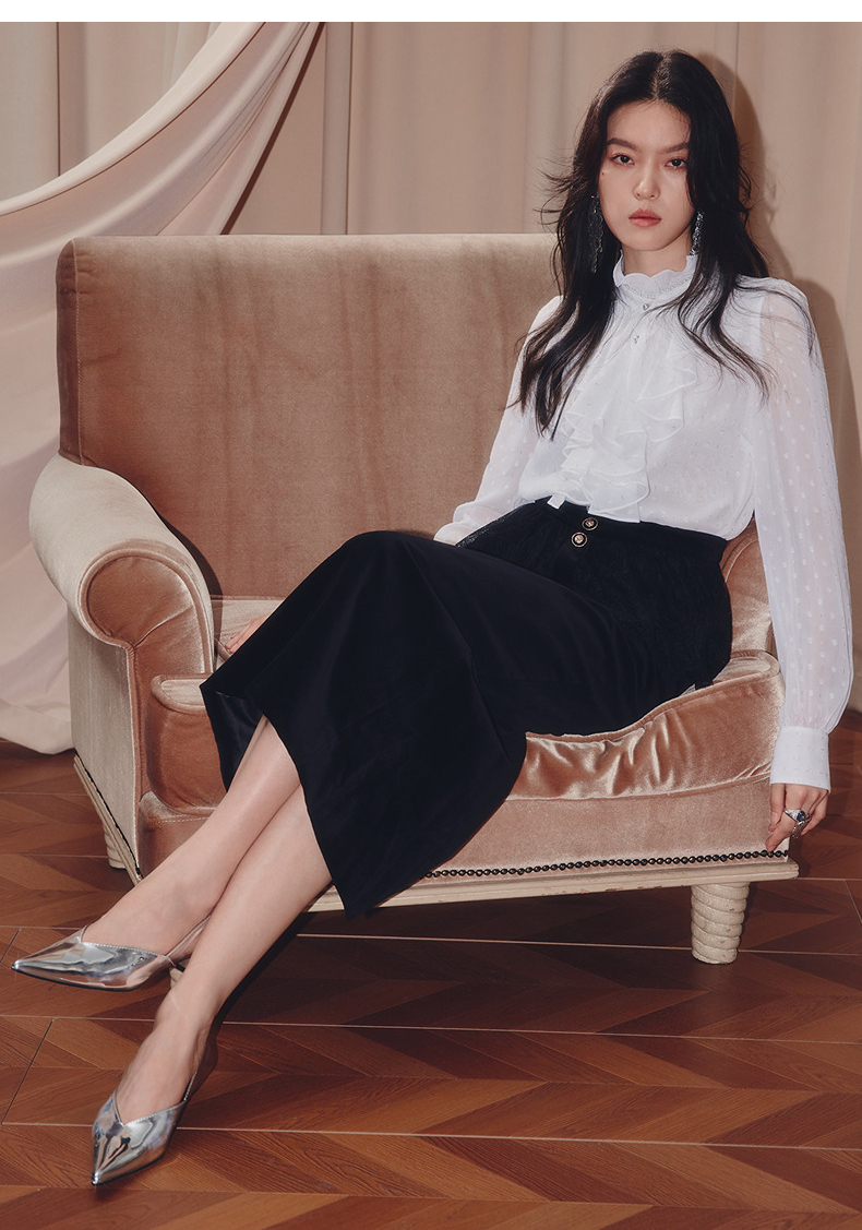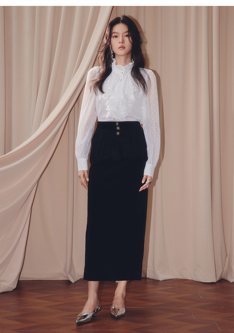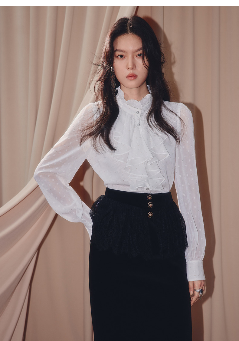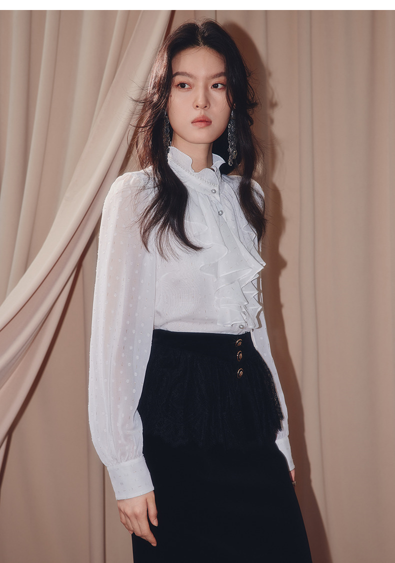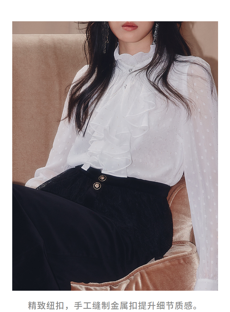 玛克门店发货:MAXRIENY宫廷复古荷叶边领衬衫(货号:MF86TP514)