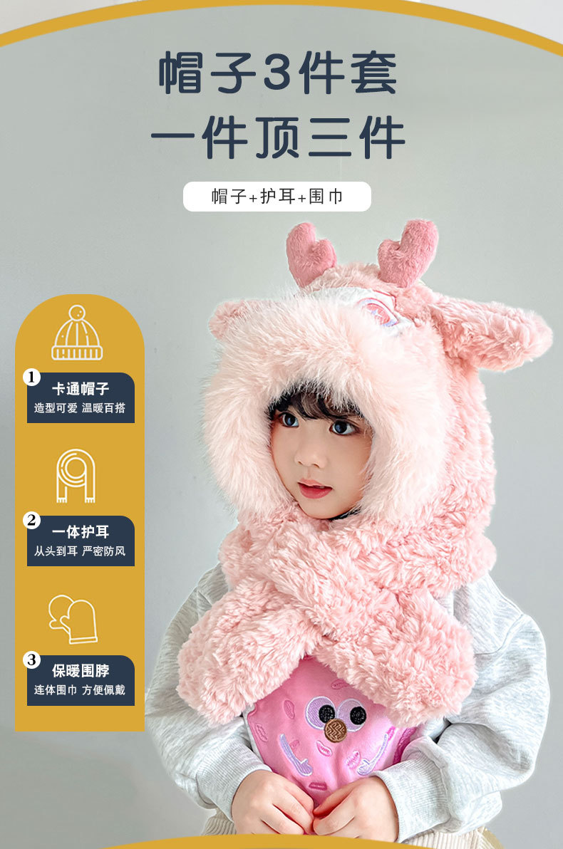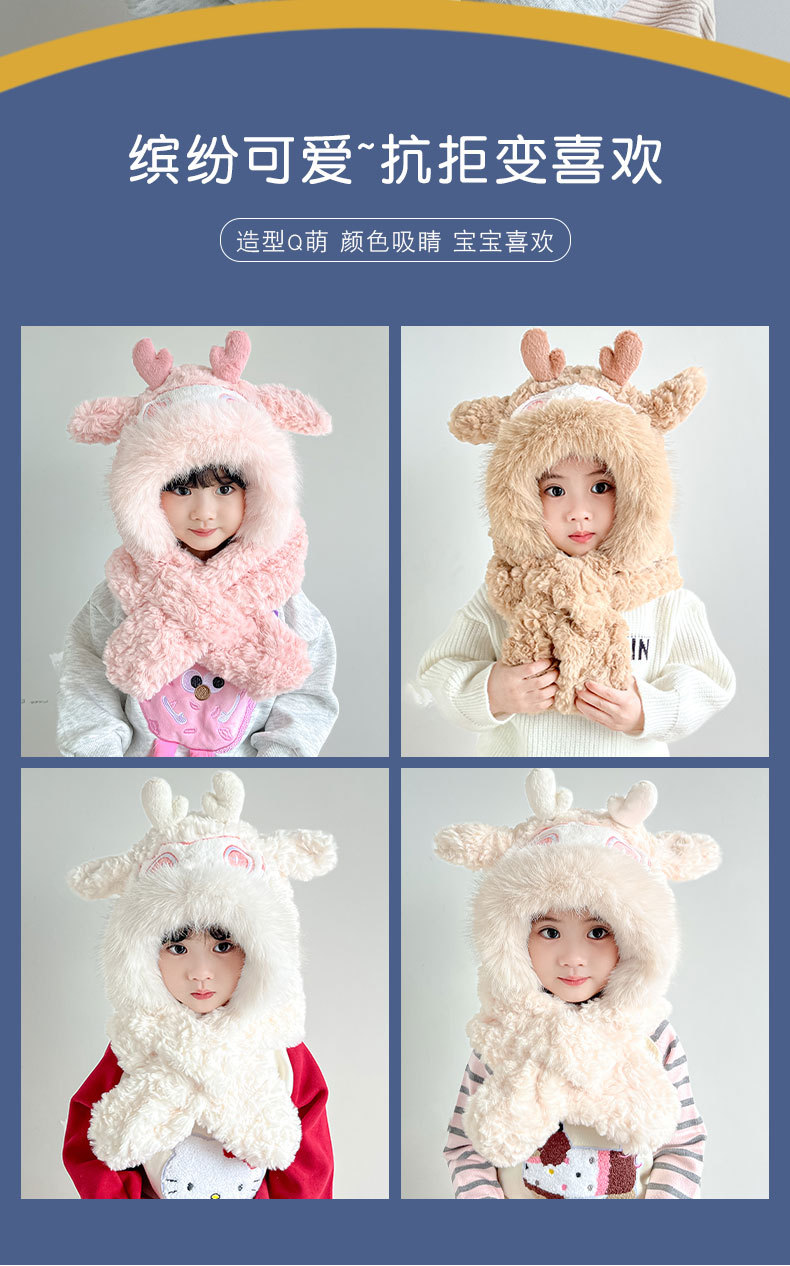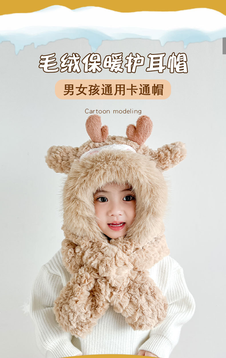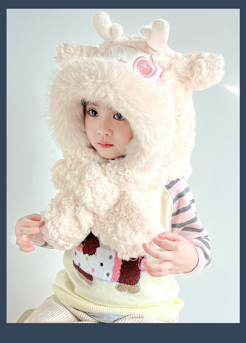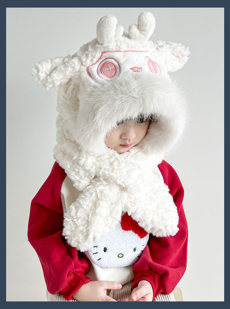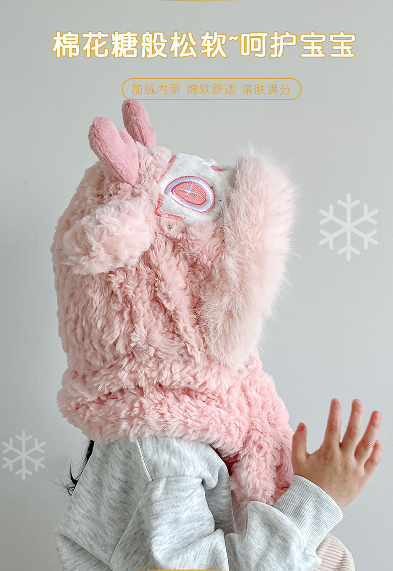 【棉花糖般松软❗️加厚保暖舒适】儿童宝宝帽子冬季围巾一体毛绒卡通懒洋洋二件套男女童保暖防寒帽。ja