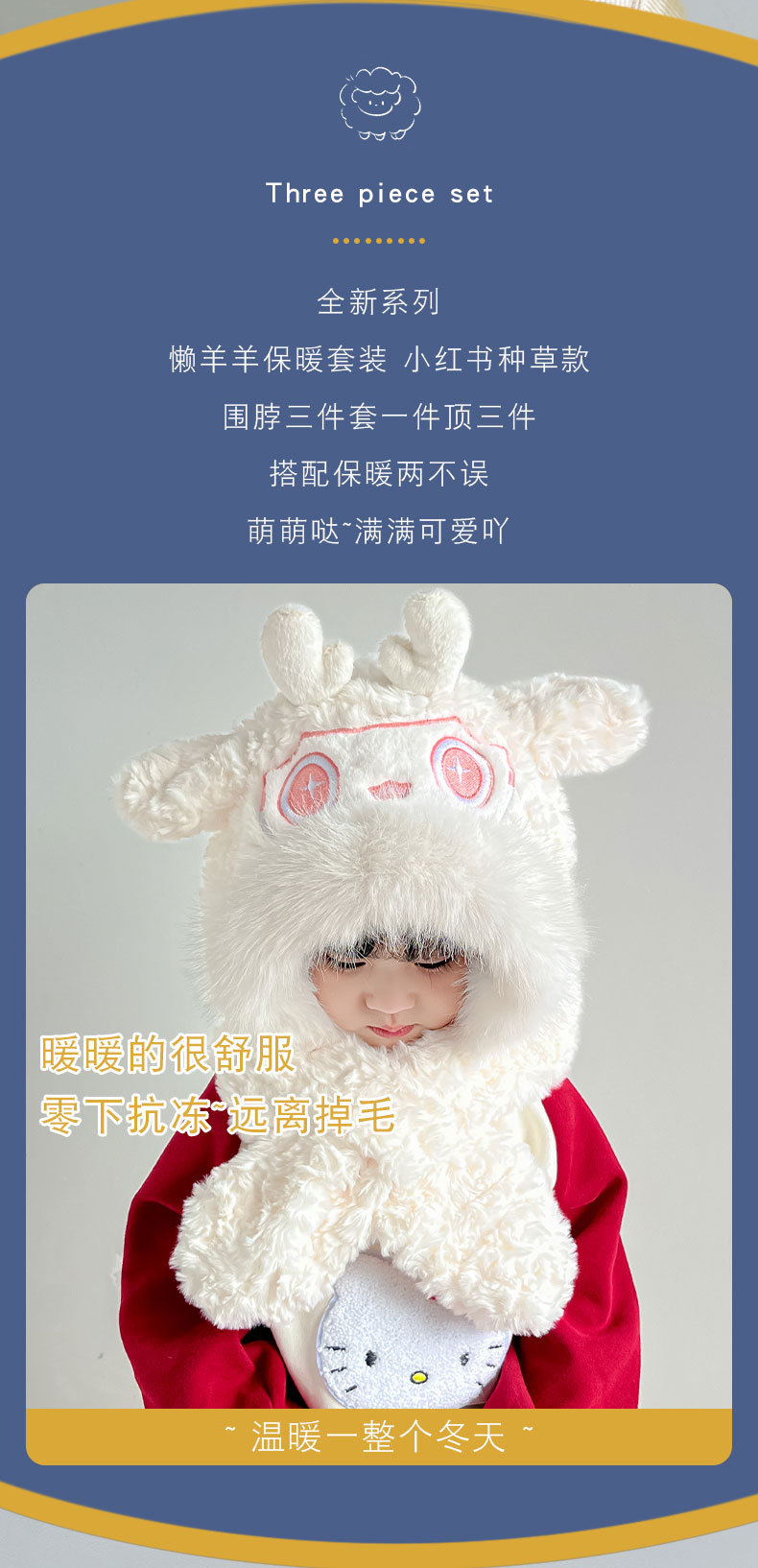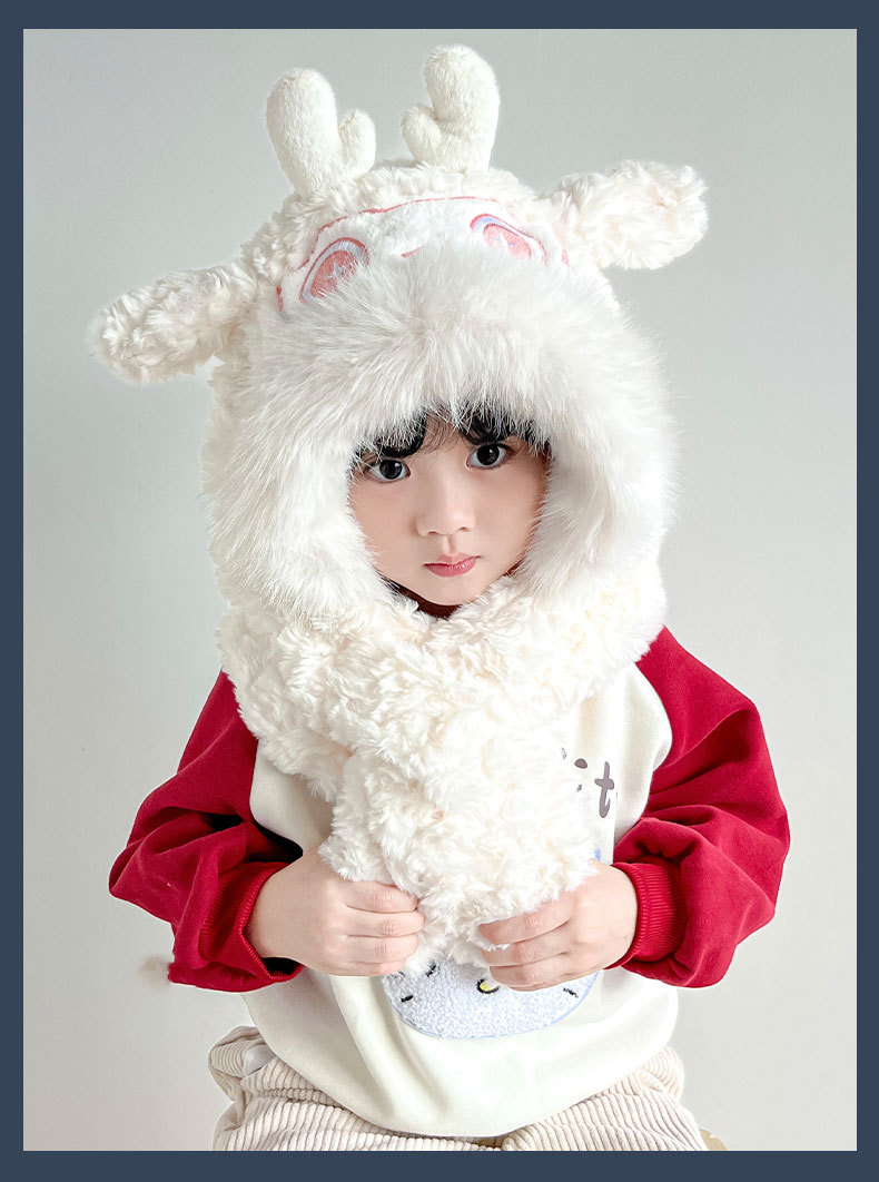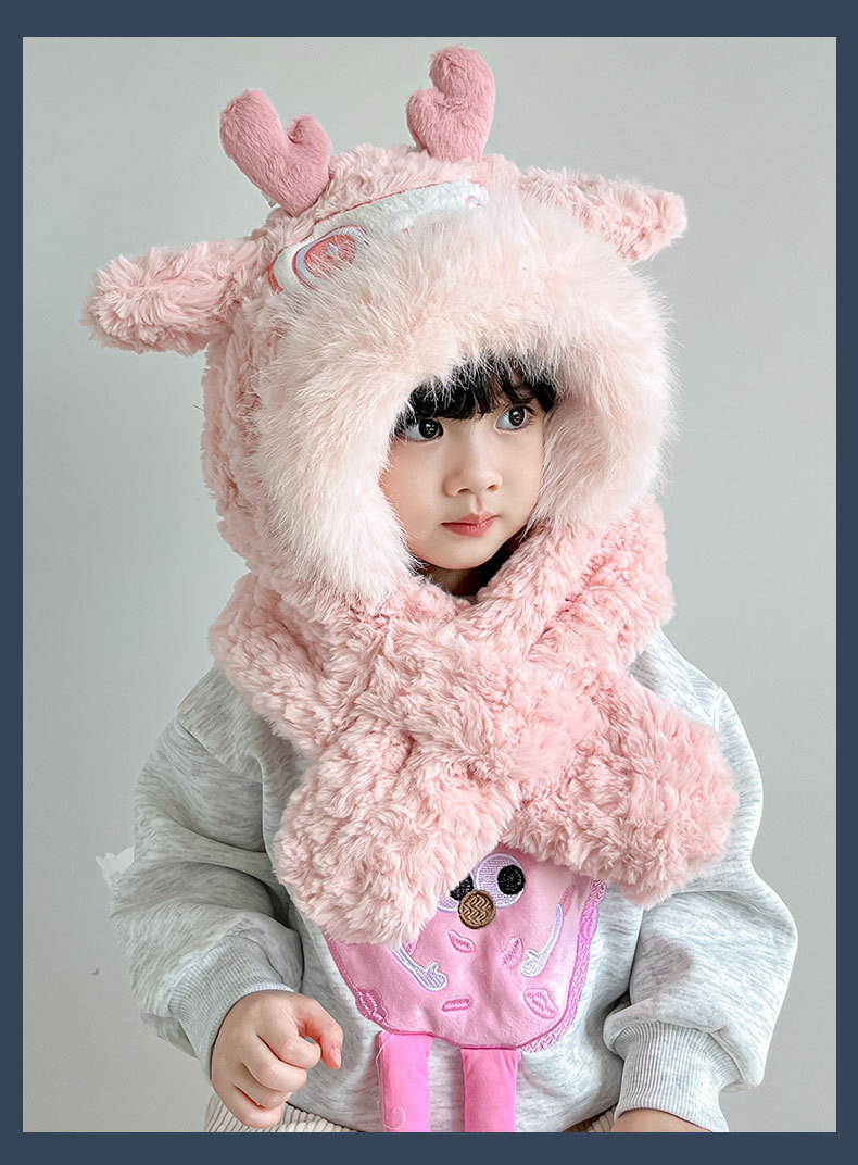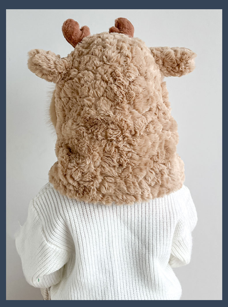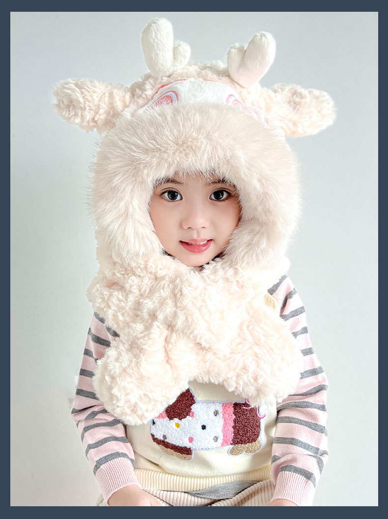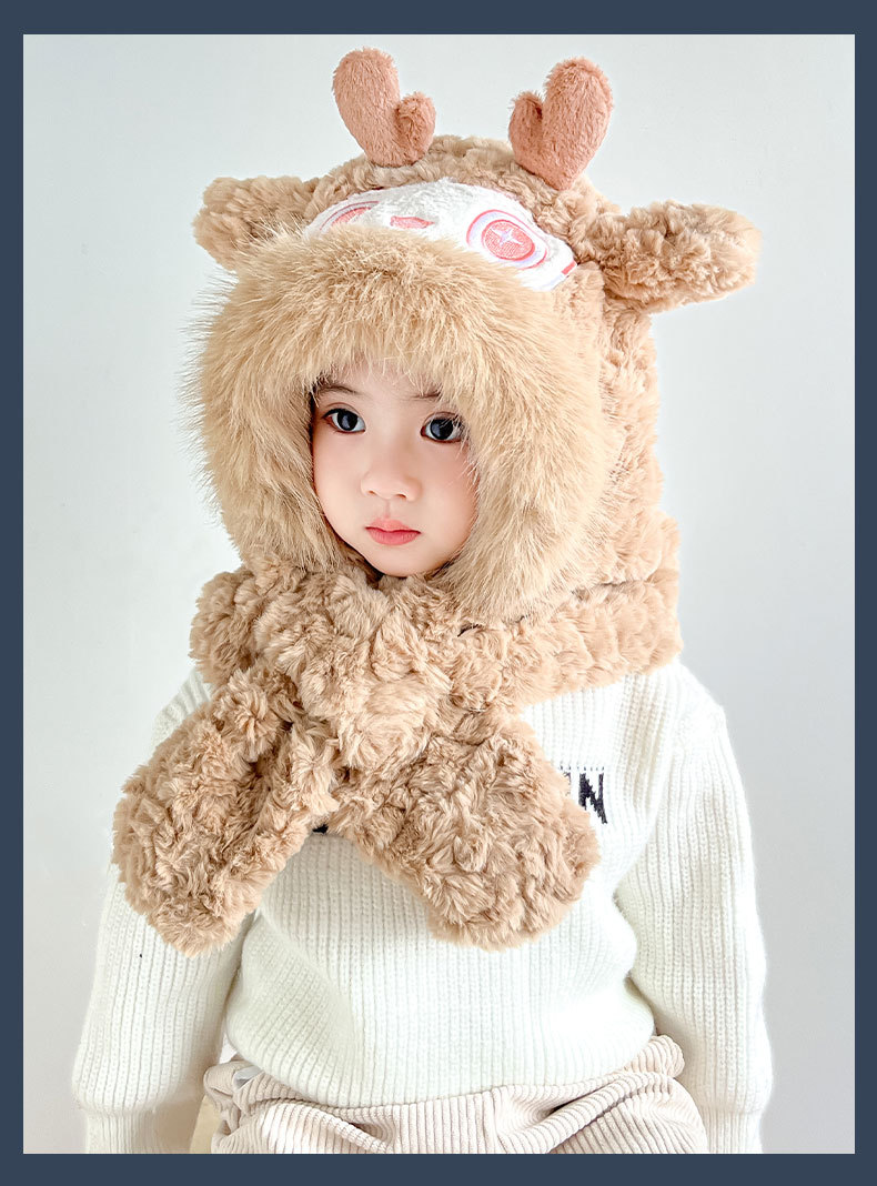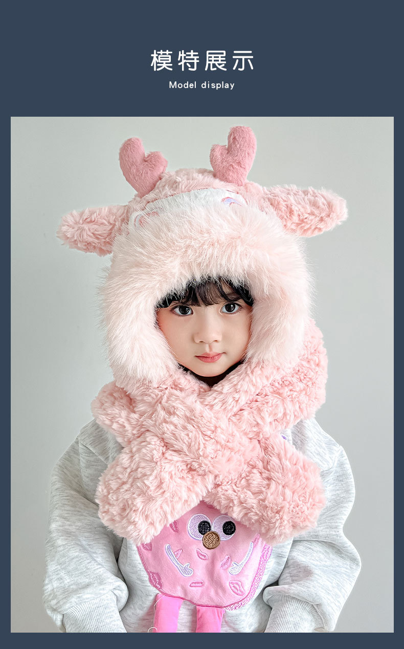 【棉花糖般松软❗️加厚保暖舒适】儿童宝宝帽子冬季围巾一体毛绒卡通懒洋洋二件套男女童保暖防寒帽。ja