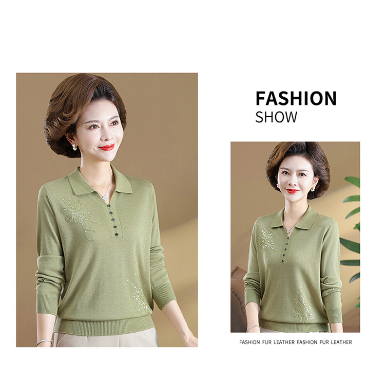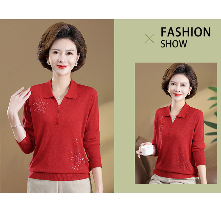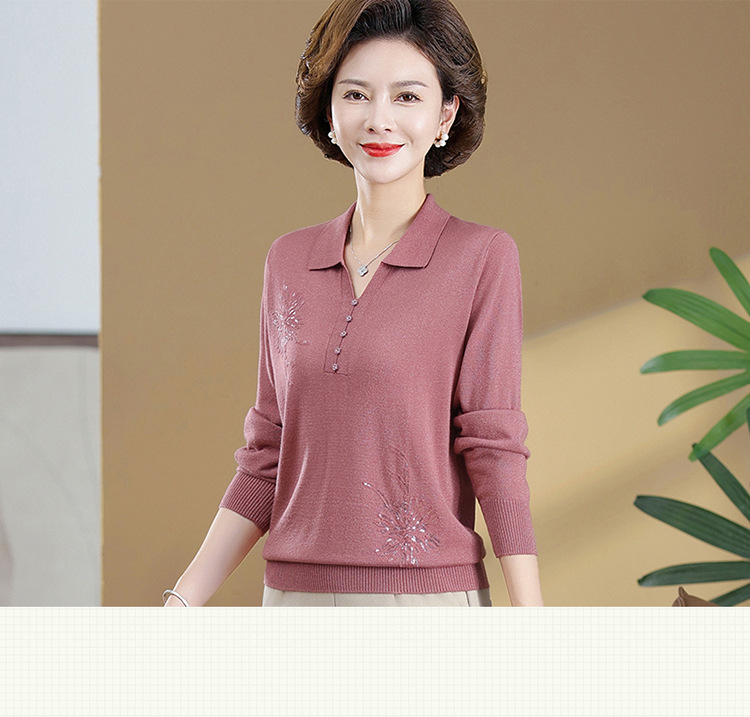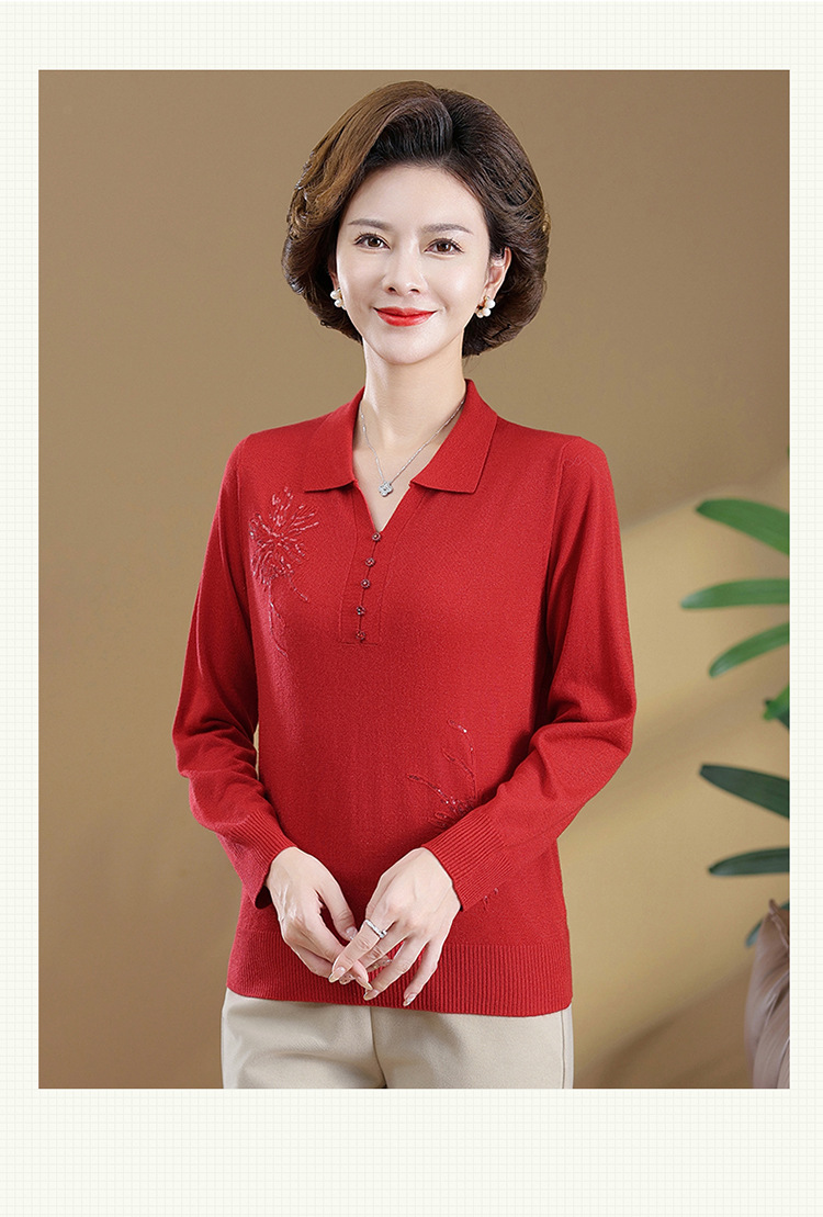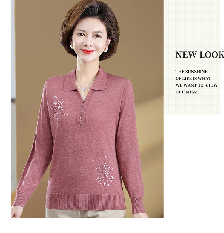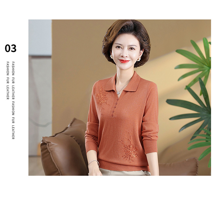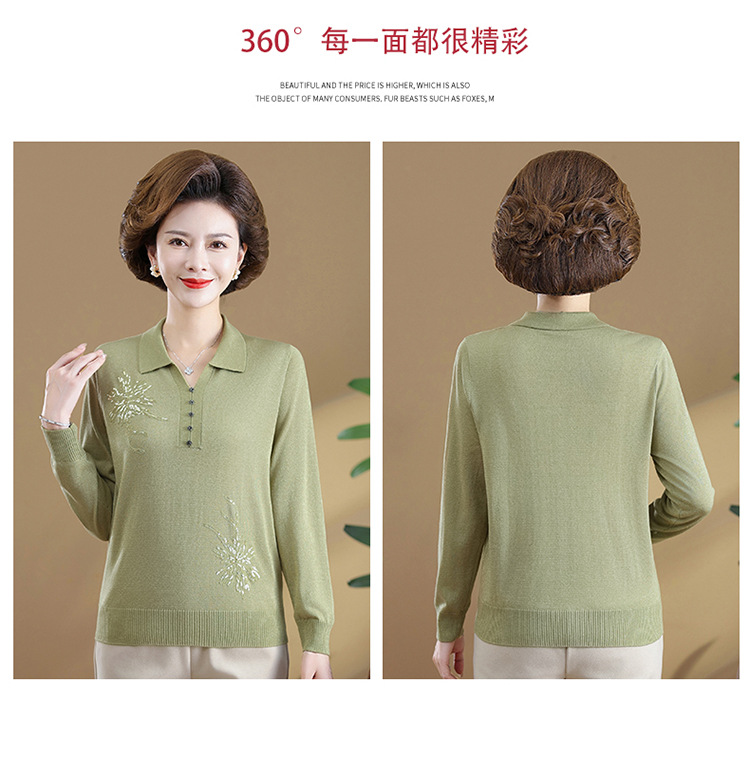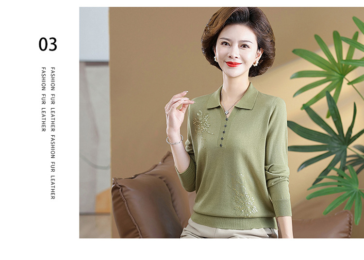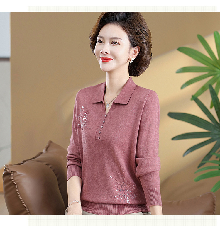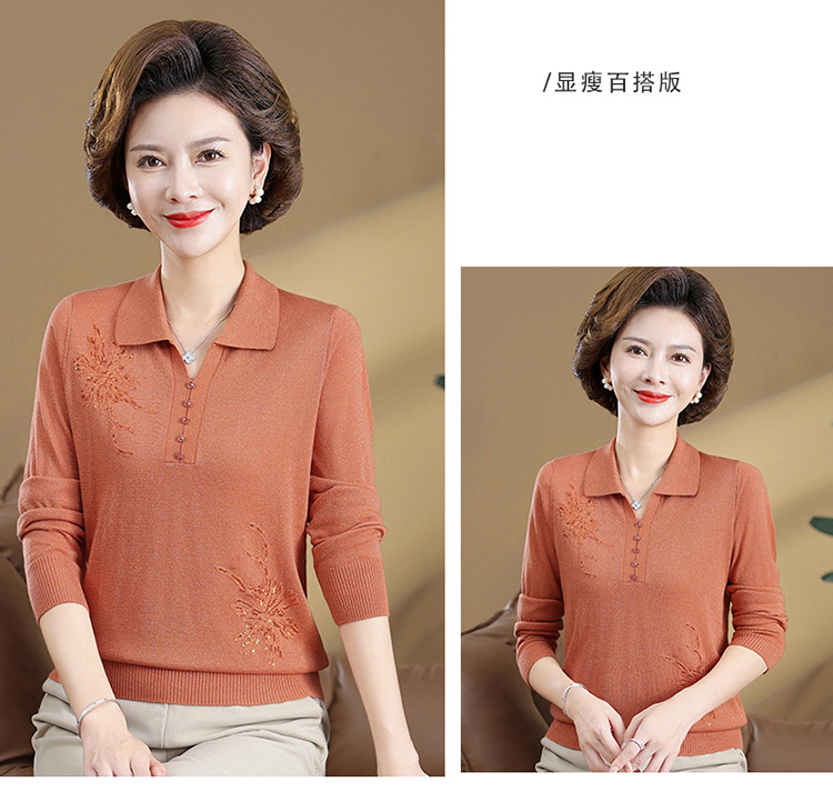 W503-362-108-168秋装2025新款毛衣洋气翻领小衫中老年人女春秋长袖针织打底衫