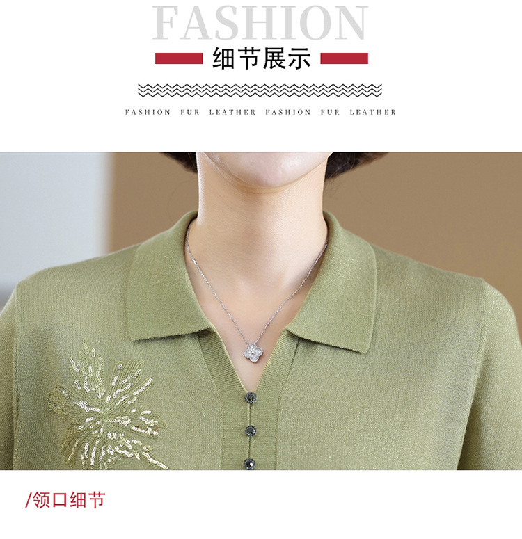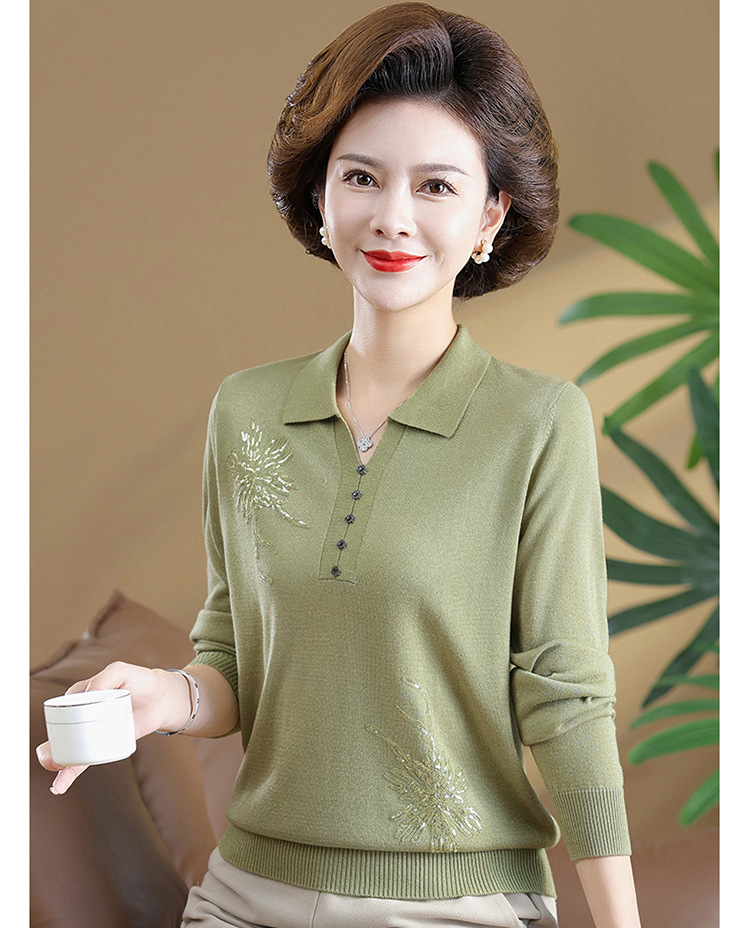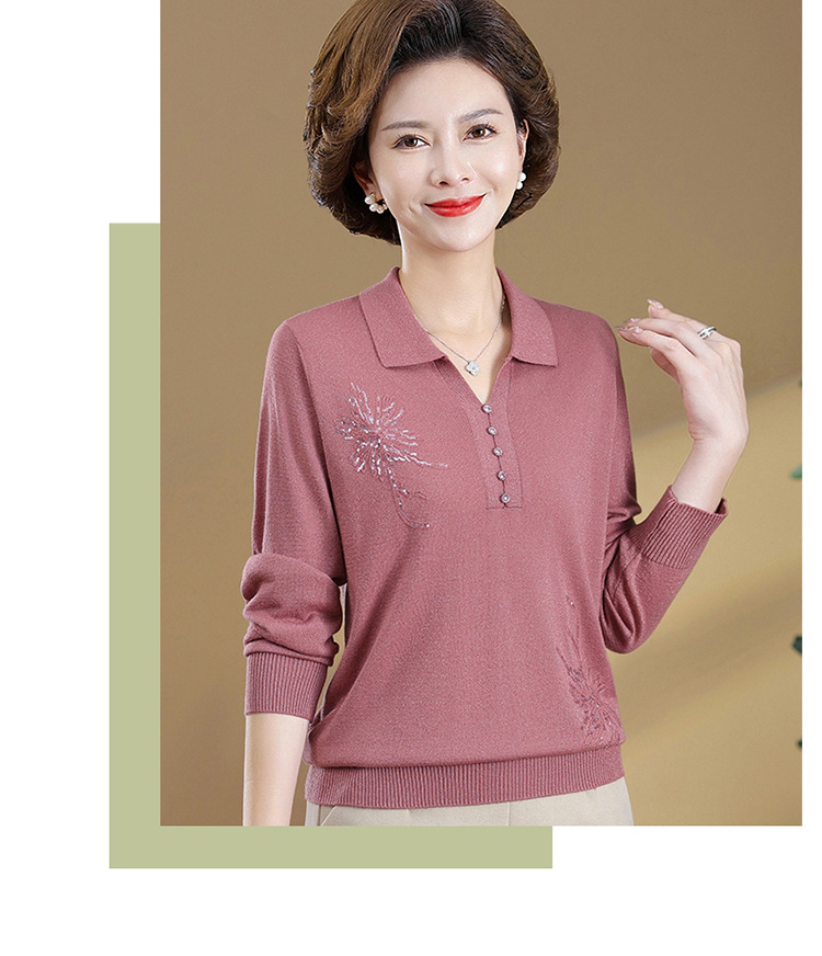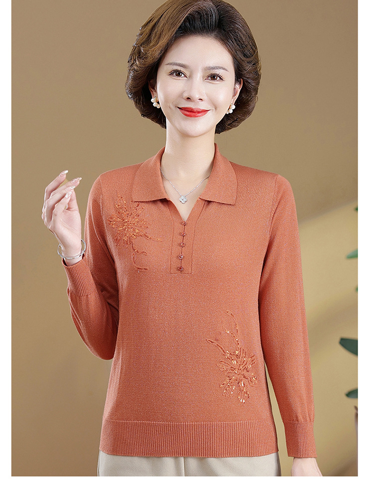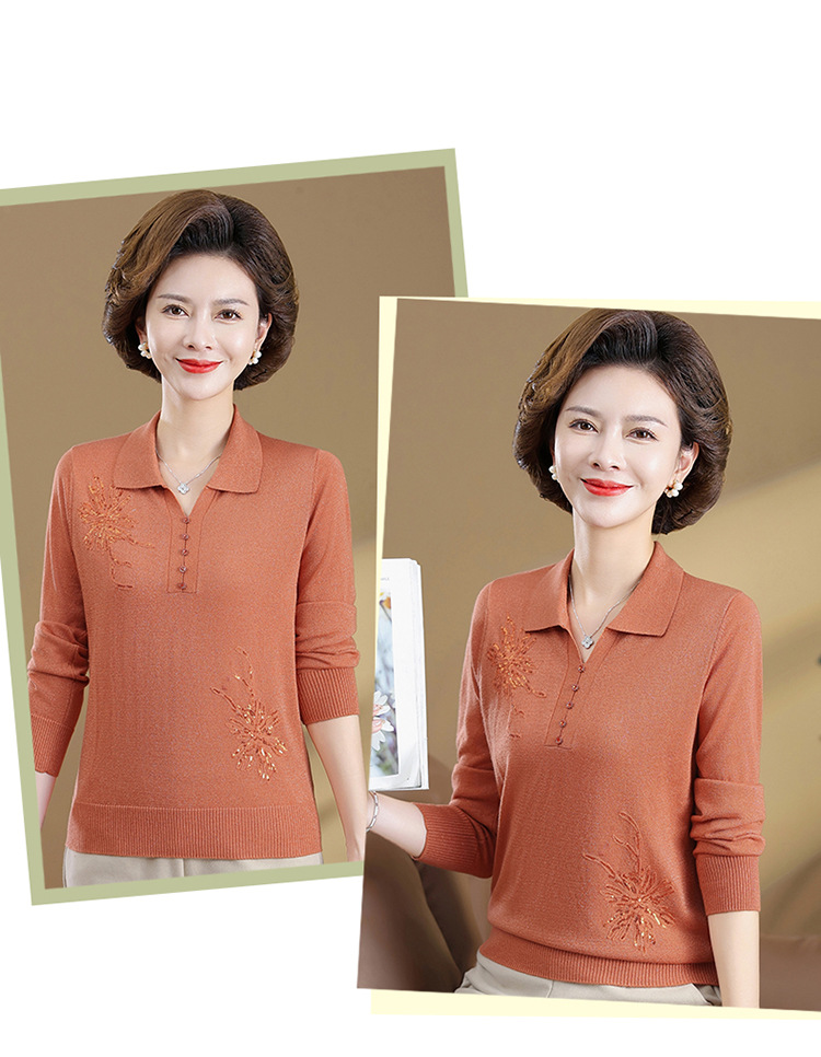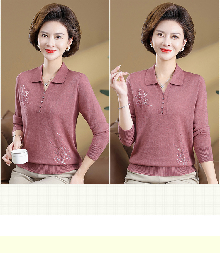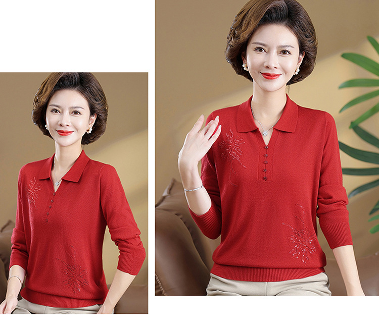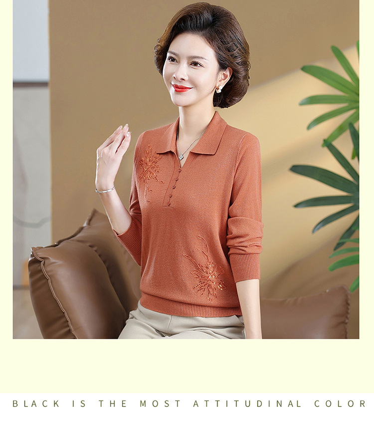 W503-362-108-168秋装2025新款毛衣洋气翻领小衫中老年人女春秋长袖针织打底衫