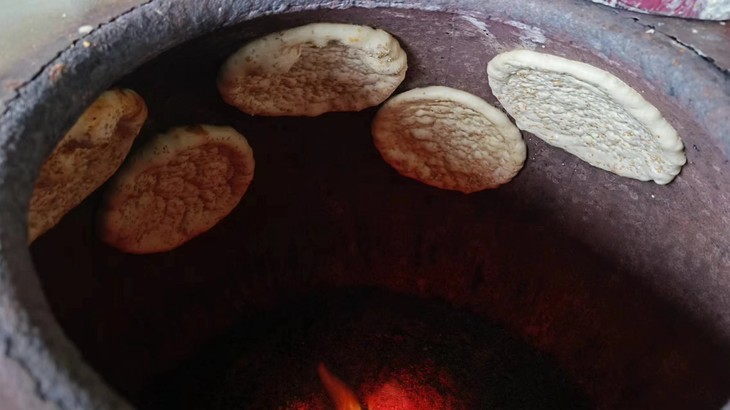 烤馕用的都是生态食材,燕子鲜酵母做半发酵面团,湖盐增添一点咸香的味道。