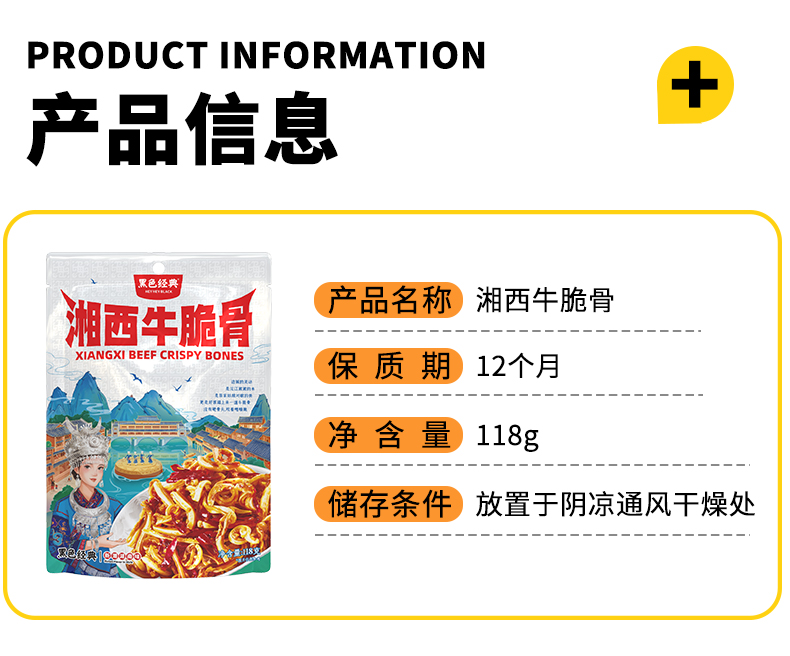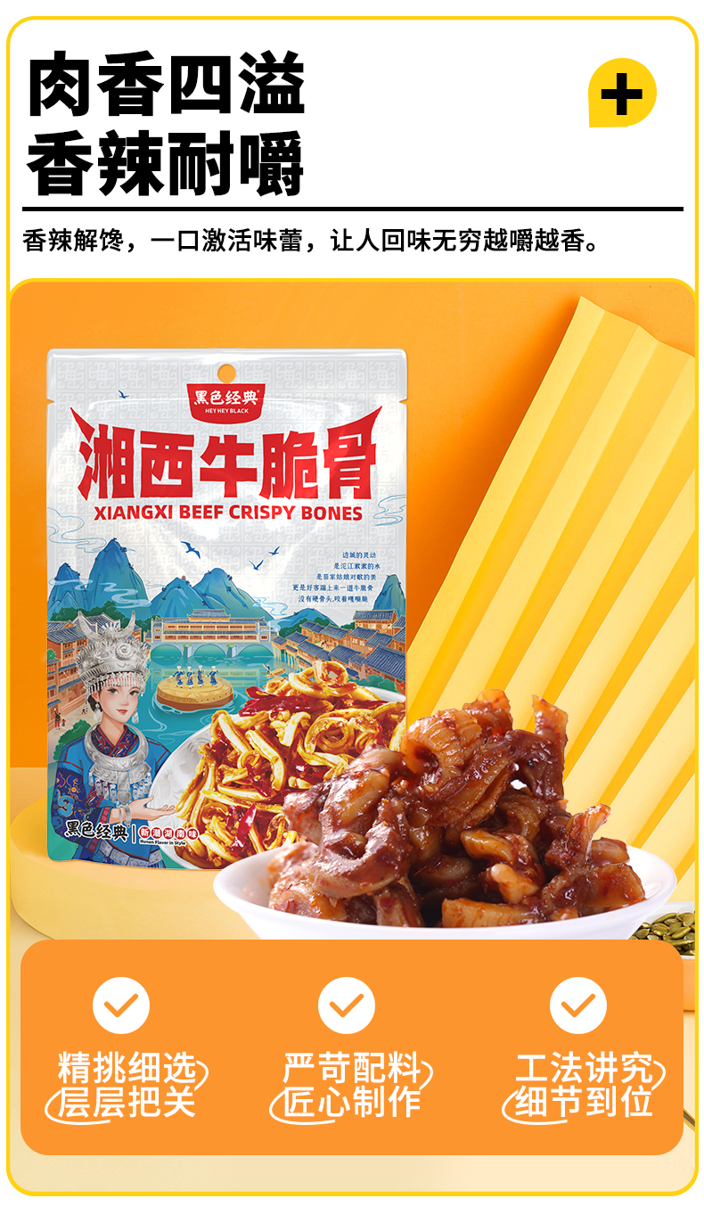 【999积分兑换】黑色经典湘西牛脆骨新版118g/袋