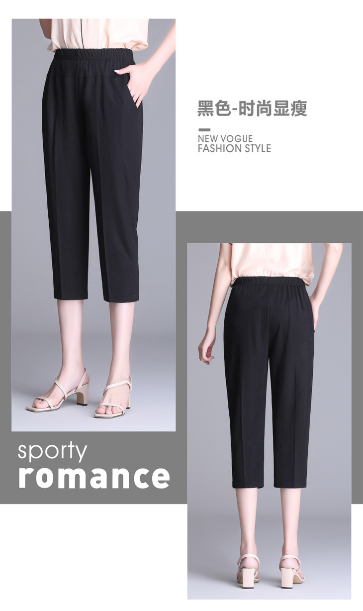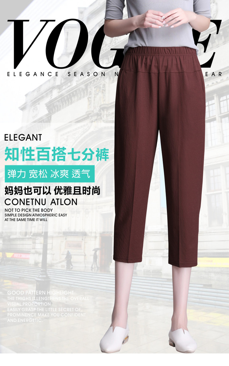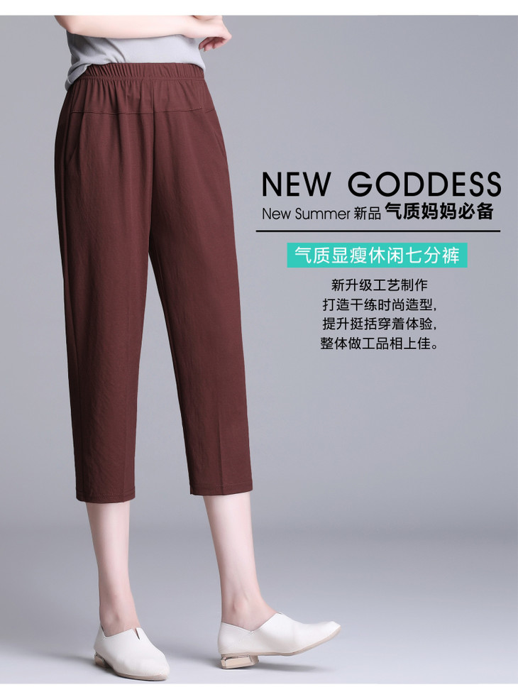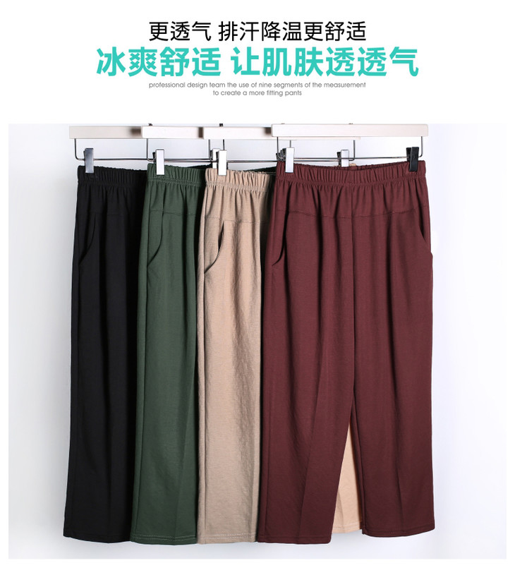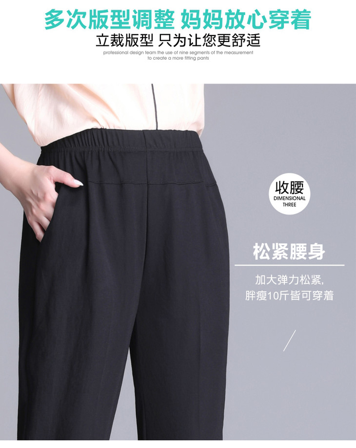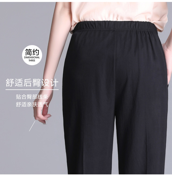 W1563夏天薄款冰丝中老年休闲宽松高腰松紧大码七分裤