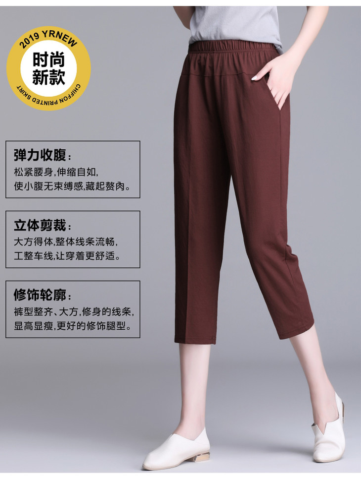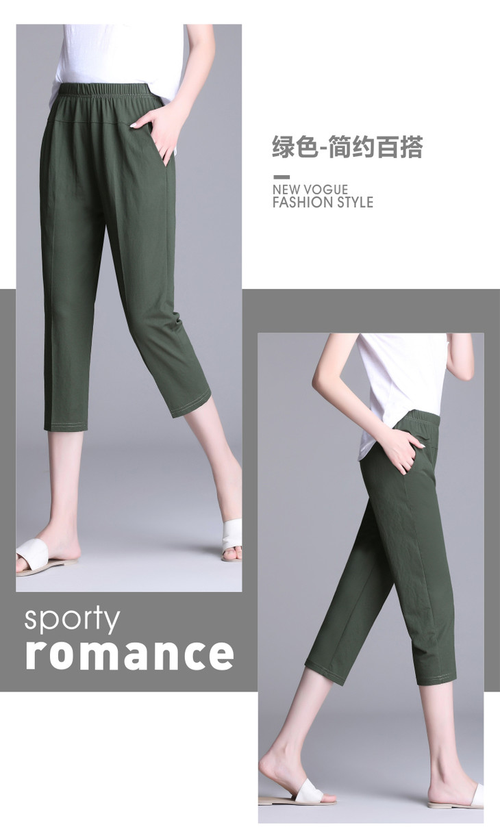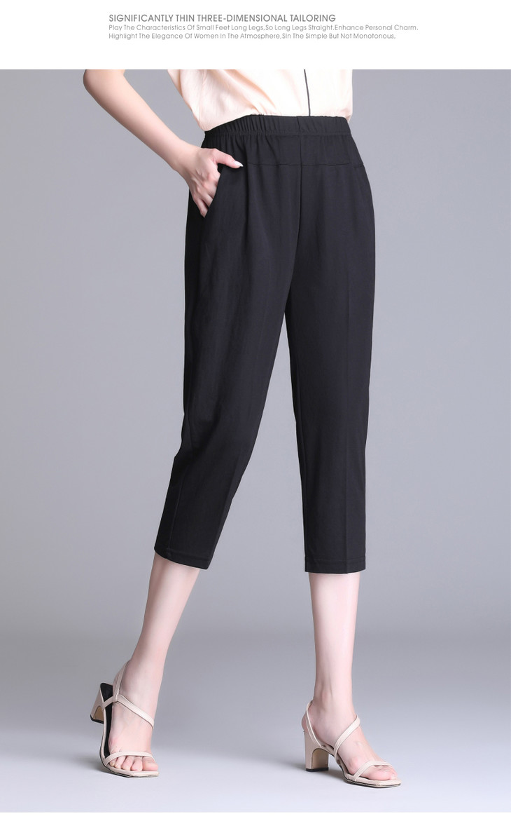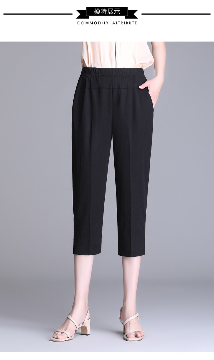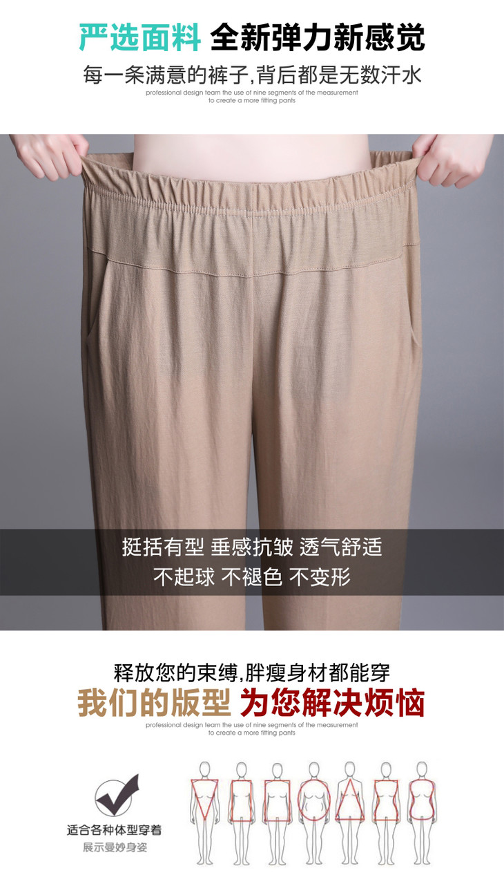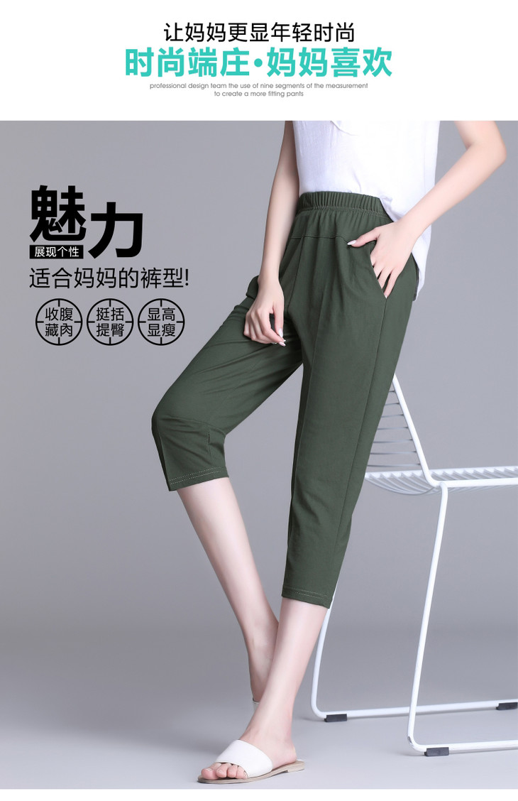 W1563夏天薄款冰丝中老年休闲宽松高腰松紧大码七分裤