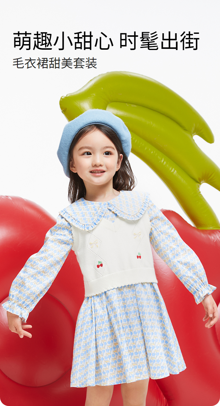 女童毛衣裙甜美套装新款安奈儿童装实体店同款XG433667