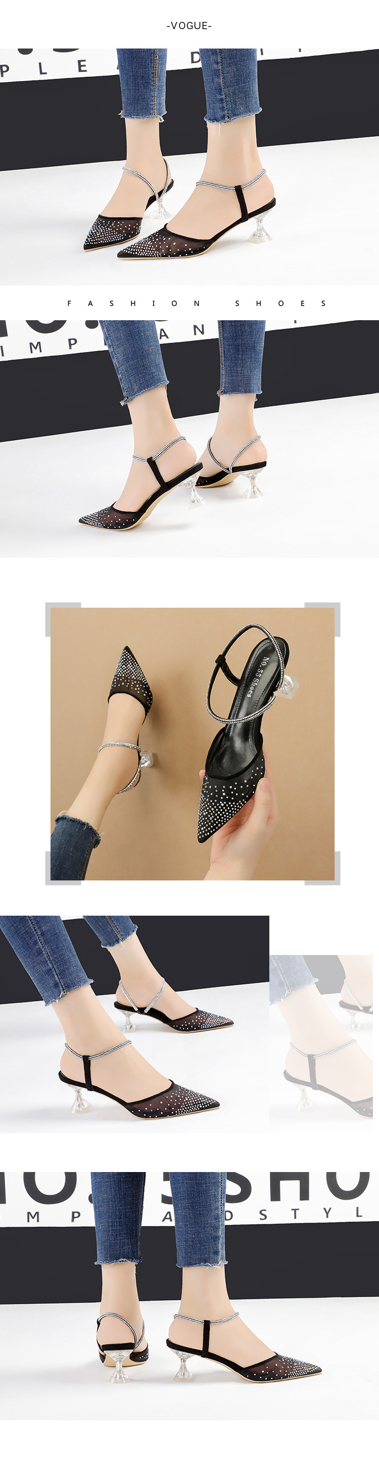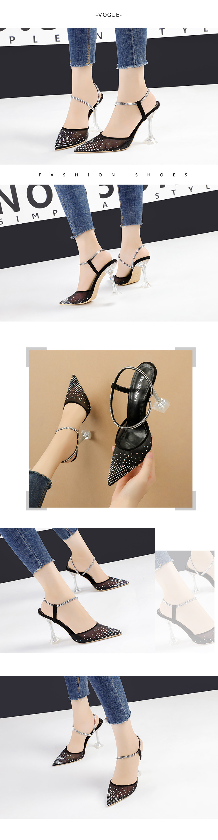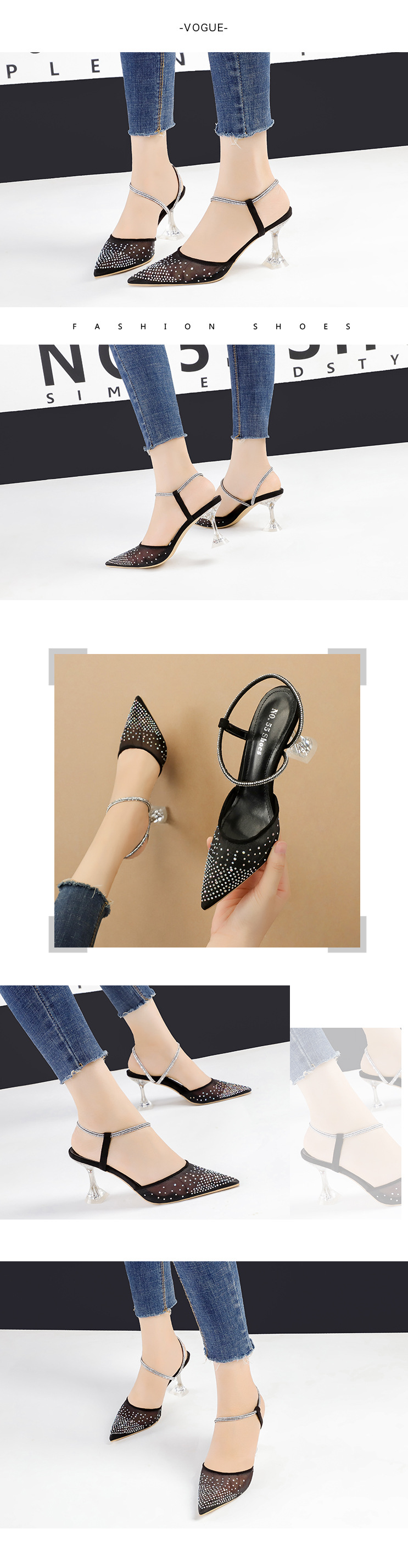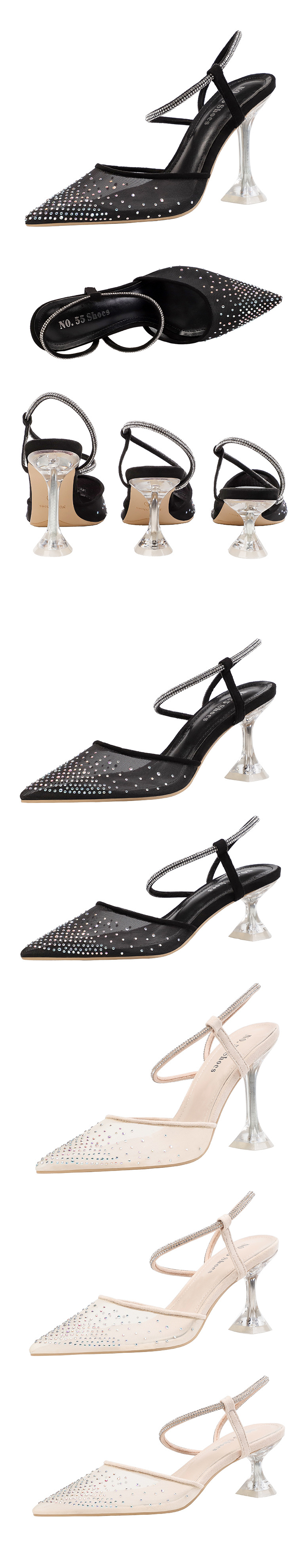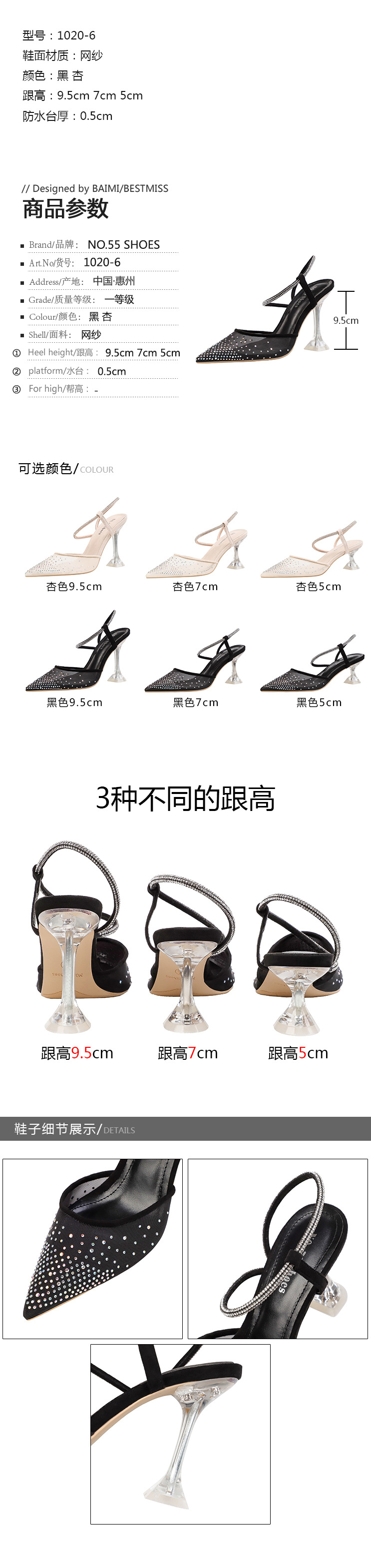NO.55 Shoes1020-6欧美性感尖头浅口水钻高跟鞋一字带猫跟凉鞋