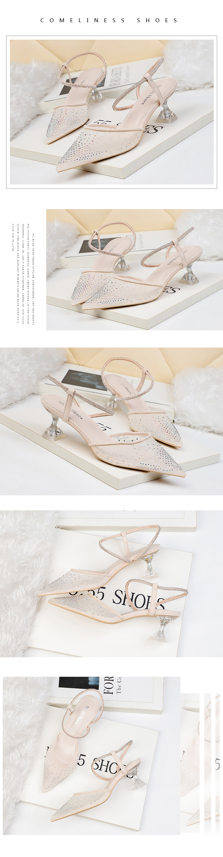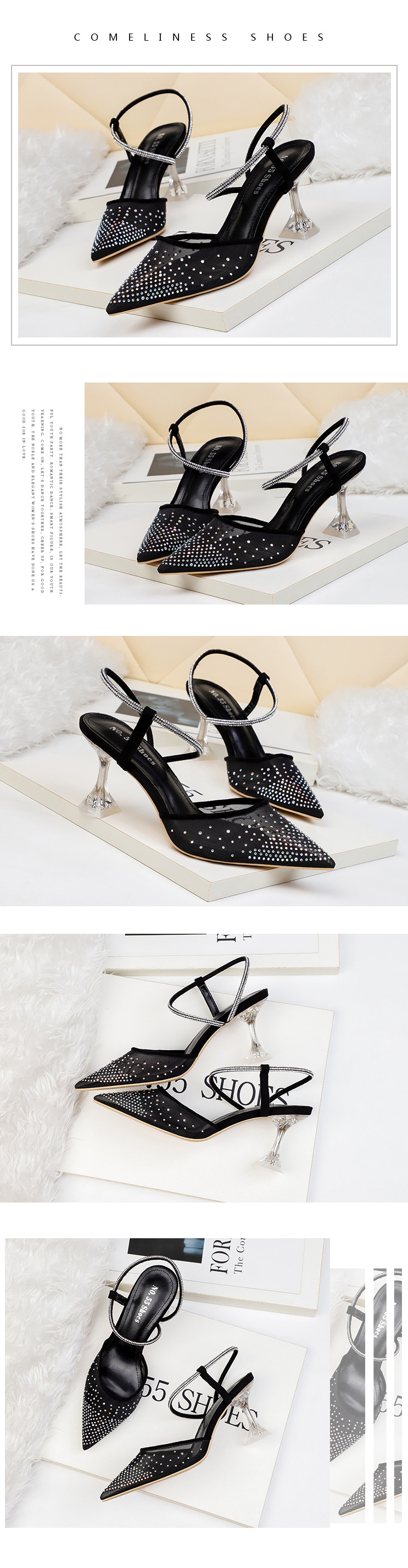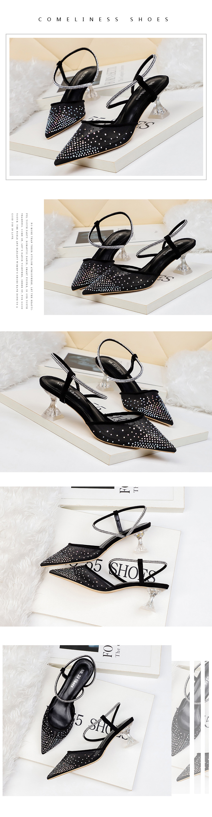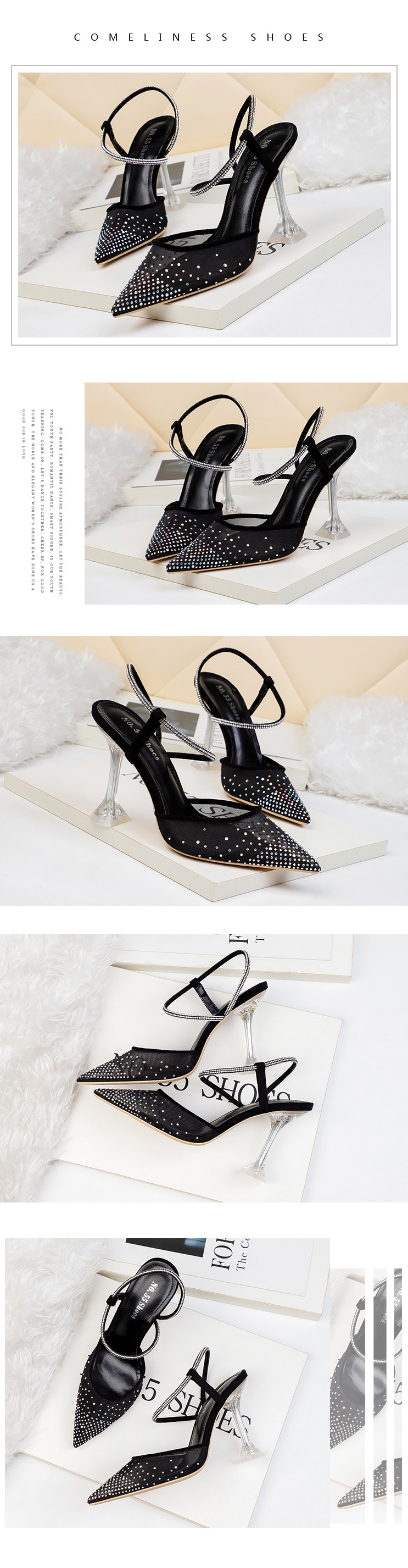 NO.55 Shoes1020-6欧美性感尖头浅口水钻高跟鞋一字带猫跟凉鞋