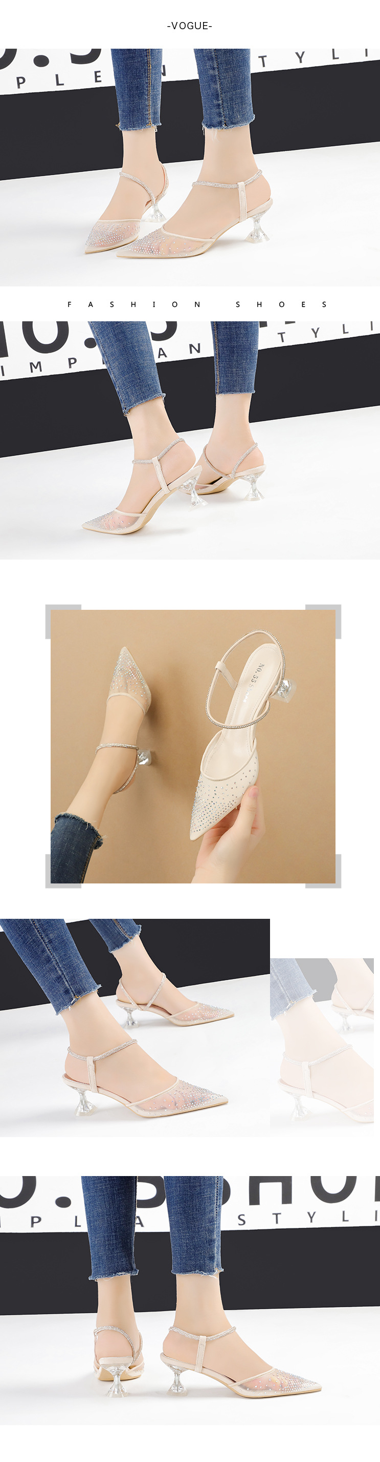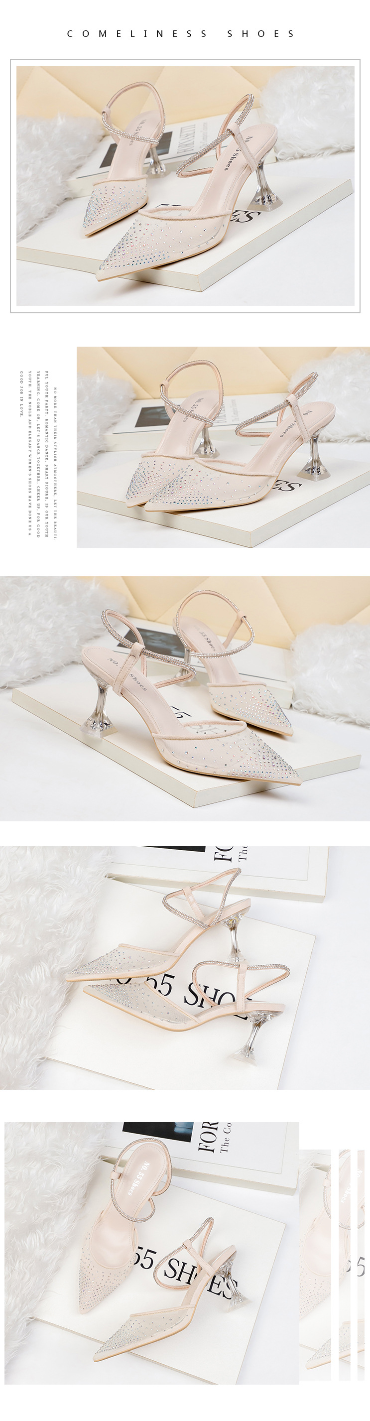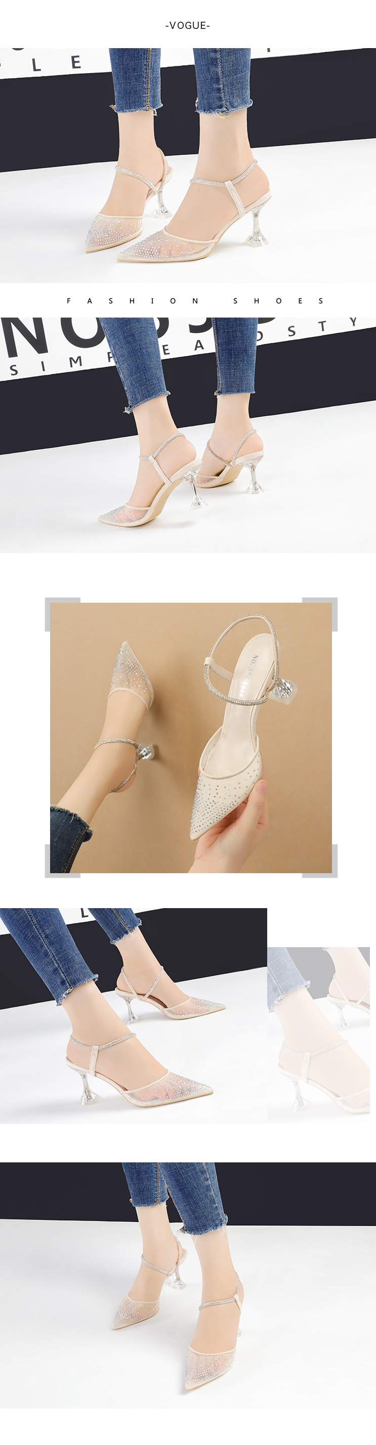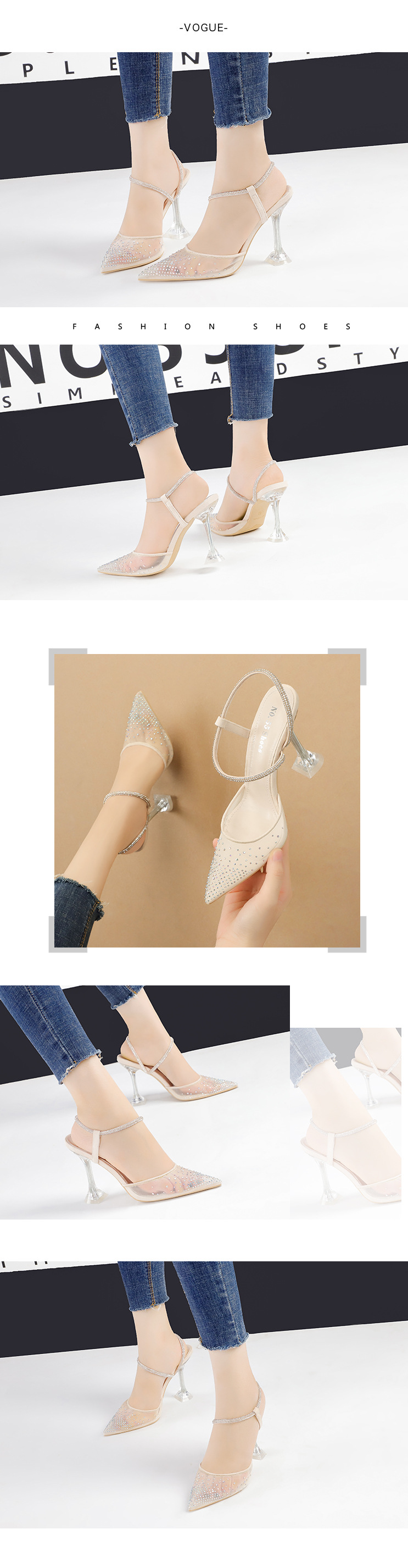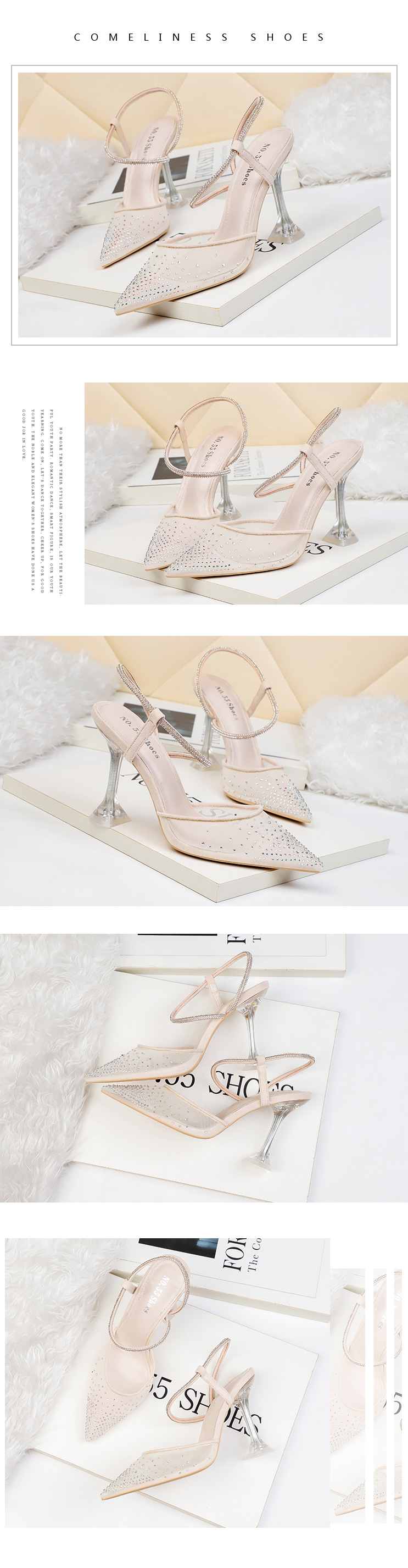 NO.55 Shoes1020-6欧美性感尖头浅口水钻高跟鞋一字带猫跟凉鞋