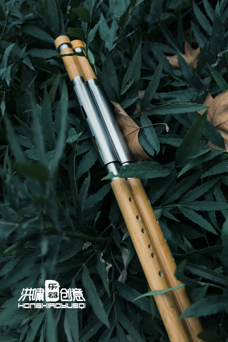 巴乌底部刻有洪啸商标,底部采用的不锈钢和实木衔接,显得巴乌整体饱满,古朴美观。