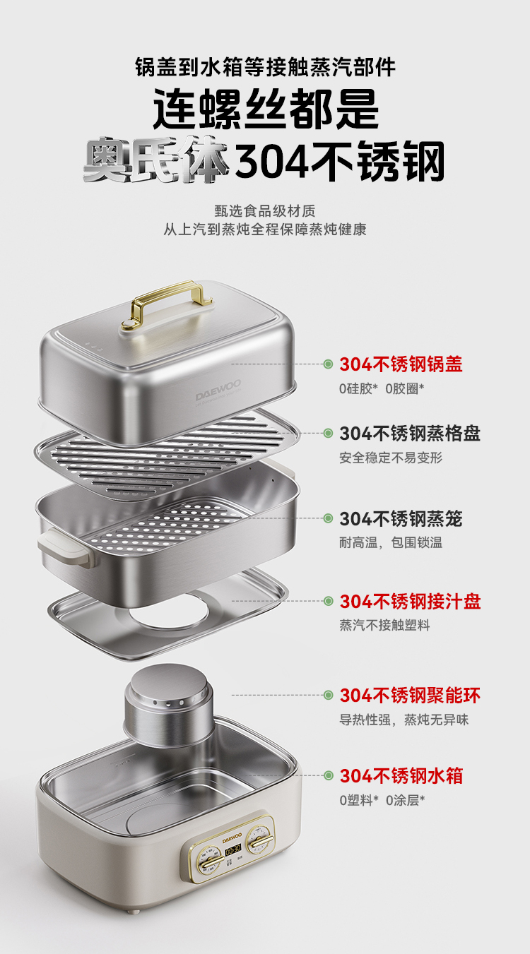 韩国大宇多功能不锈钢炖煮蒸锅S30(