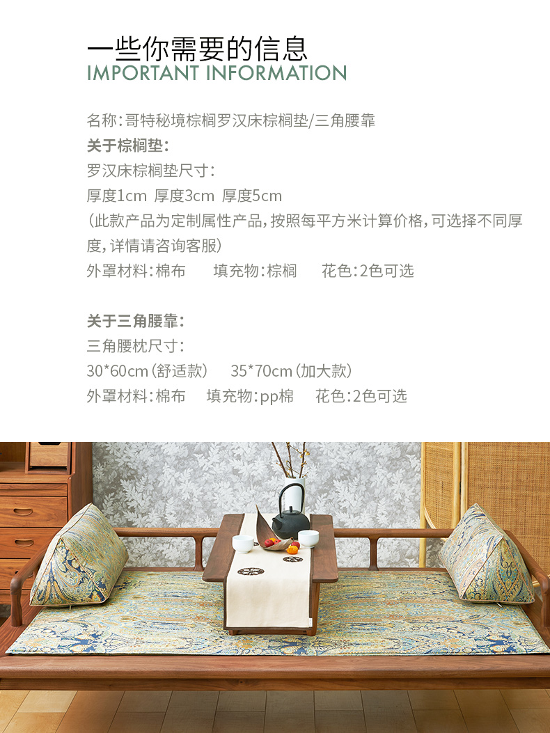 哥特秘境罗汉床棕榈加厚防滑沙发垫