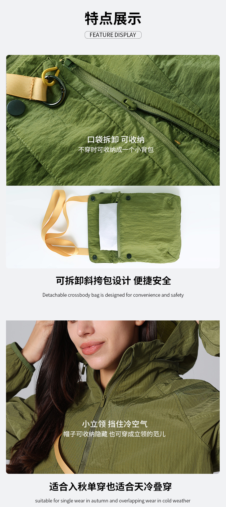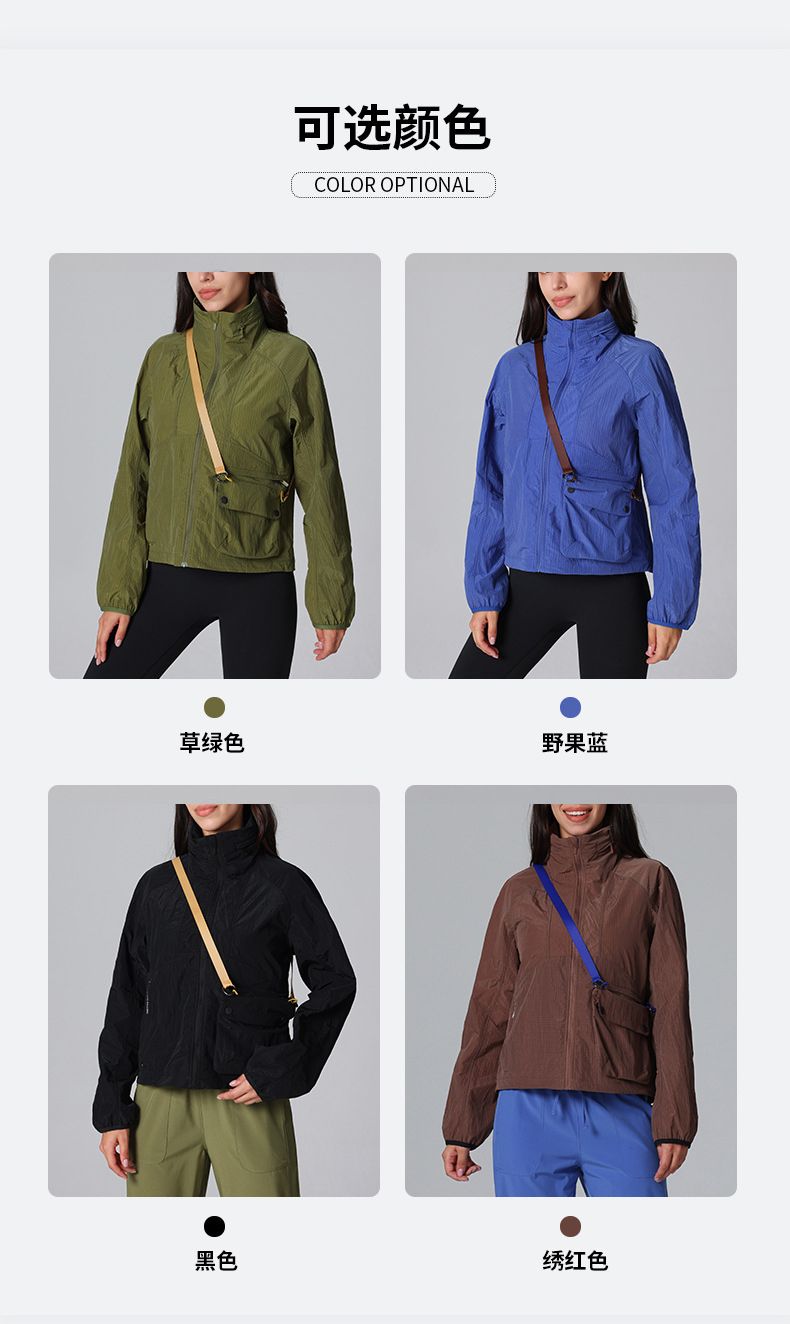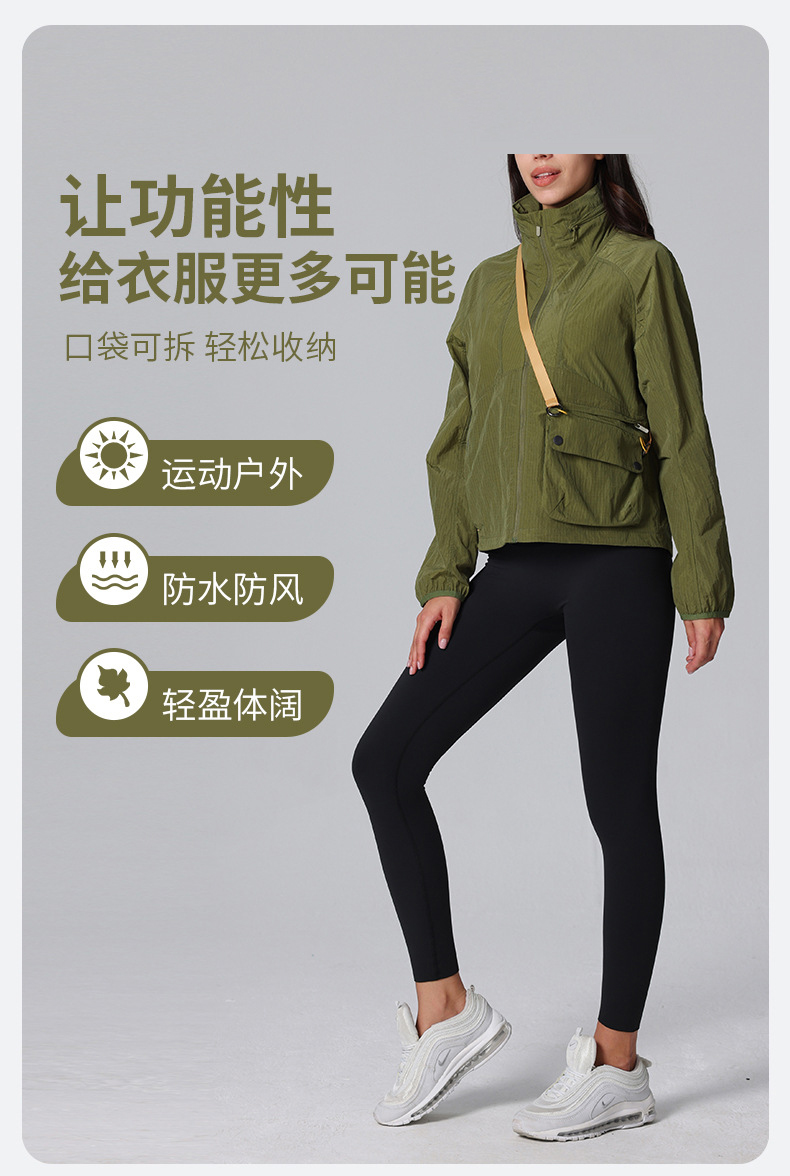 跃牌【瑞幸系列】立领防风户外休闲瑜伽连帽外套可拆卸Convertible拉链运动健身服HWT012