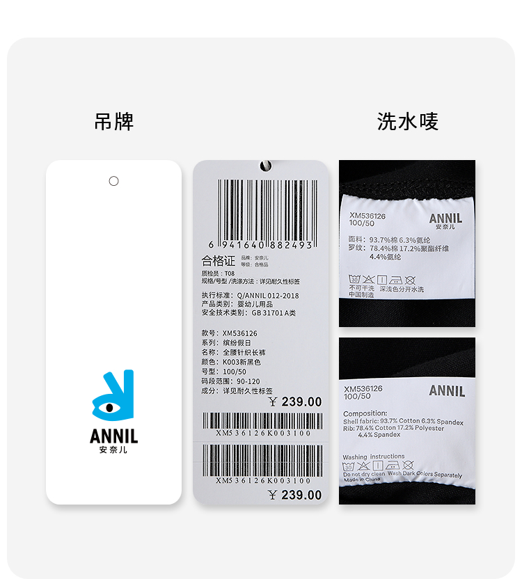 【实体店同款】男女童全腰针织长裤秋季新款安奈儿童装XM536126