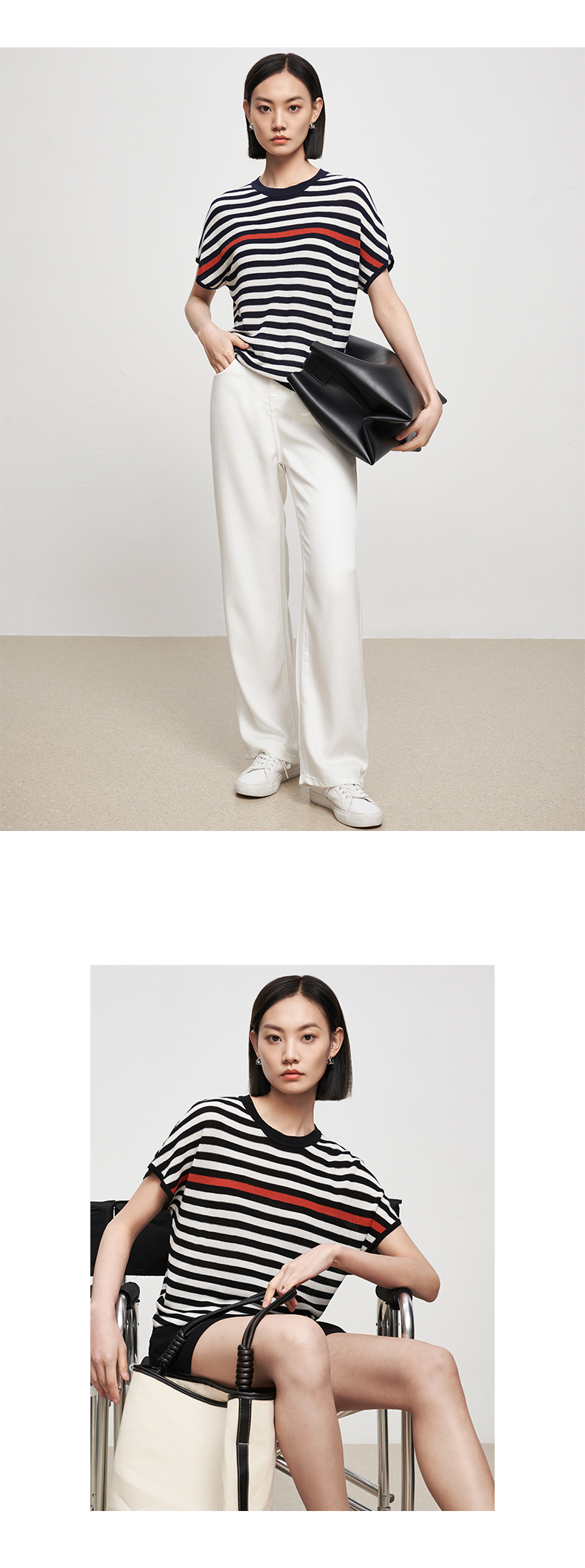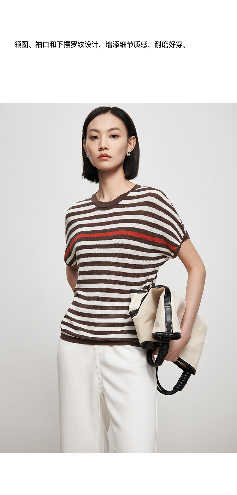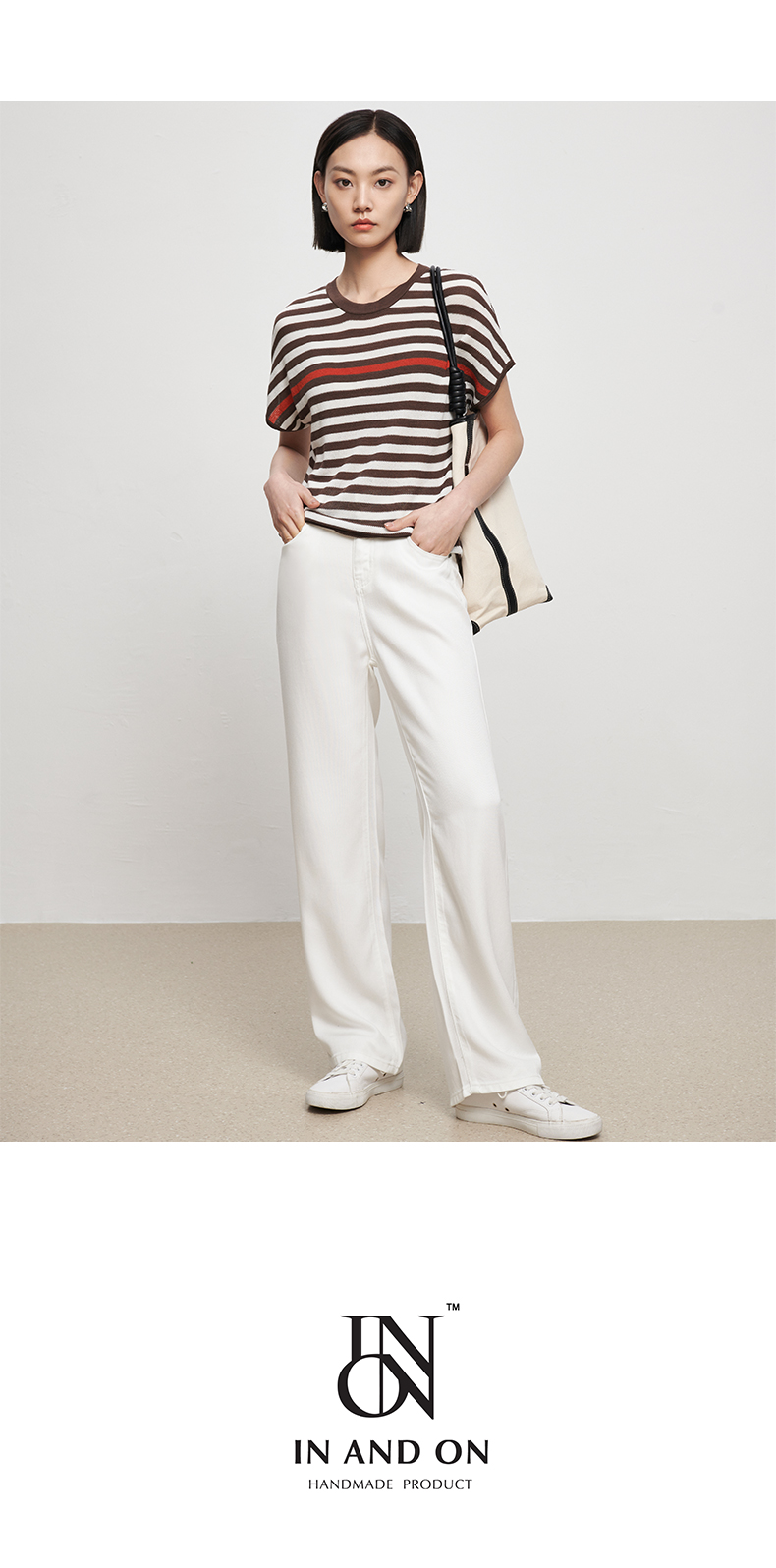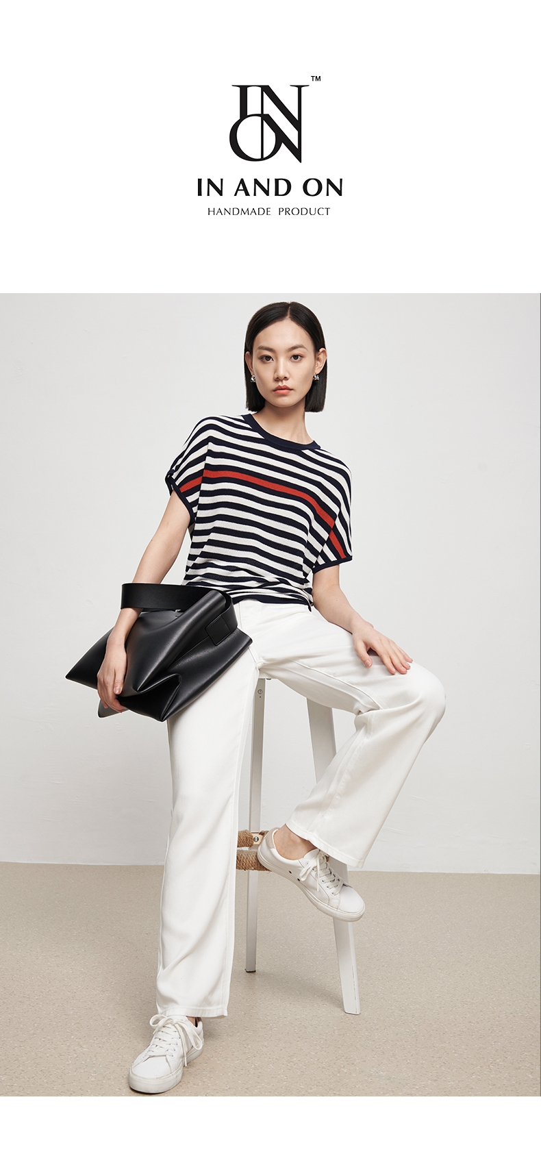 IN AND ON53306 短袖t恤女士2023 夏季新款莱赛尔条纹宽松百搭上衣