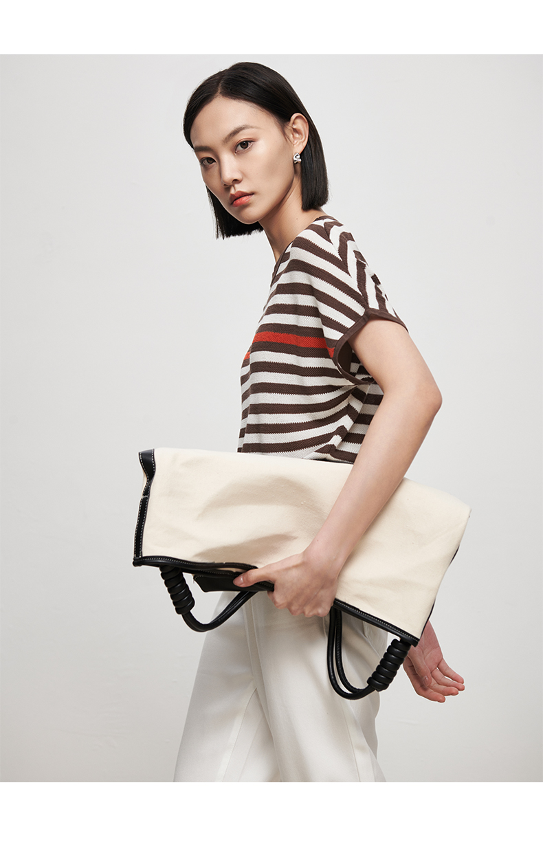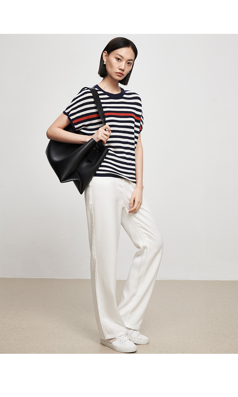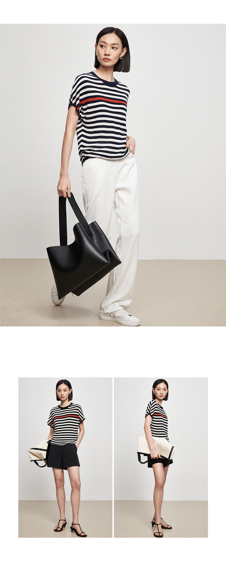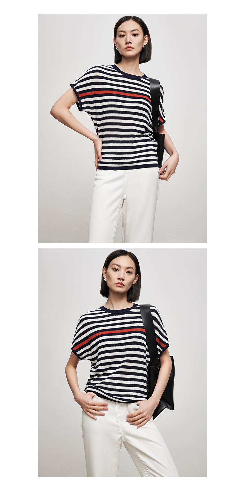 IN AND ON53306 短袖t恤女士2023 夏季新款莱赛尔条纹宽松百搭上衣
