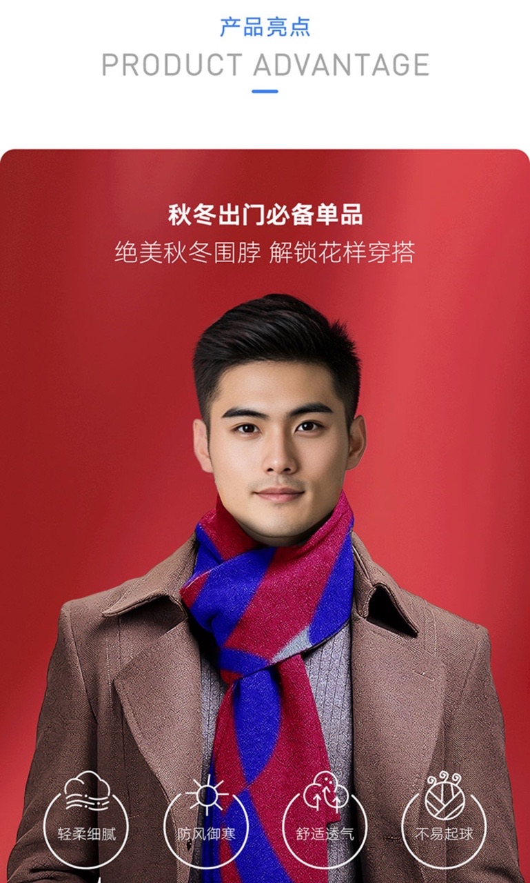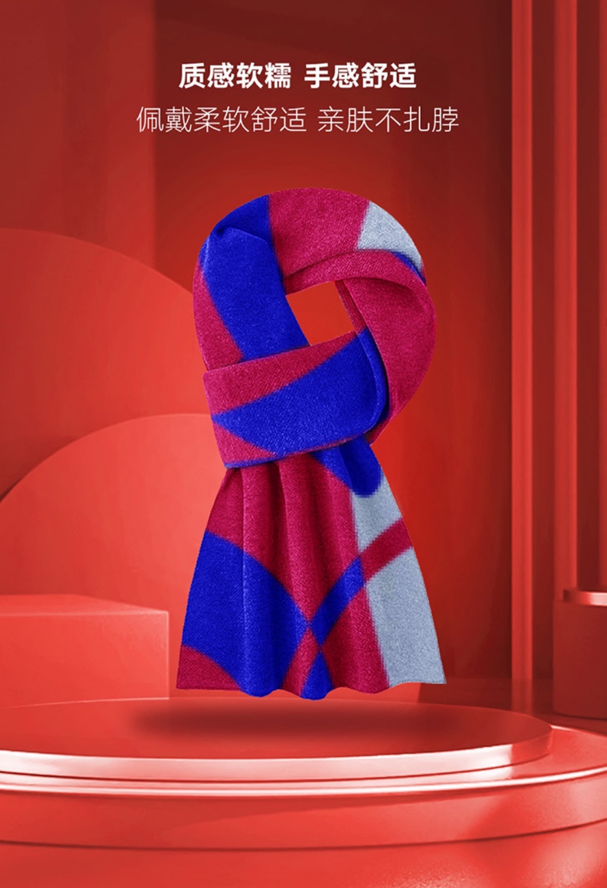 红与蓝羊毛围巾