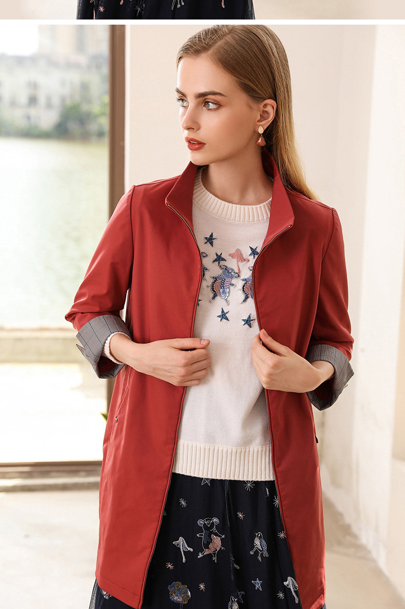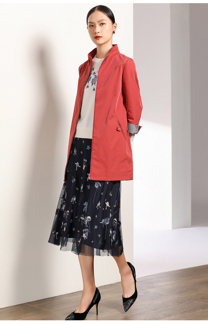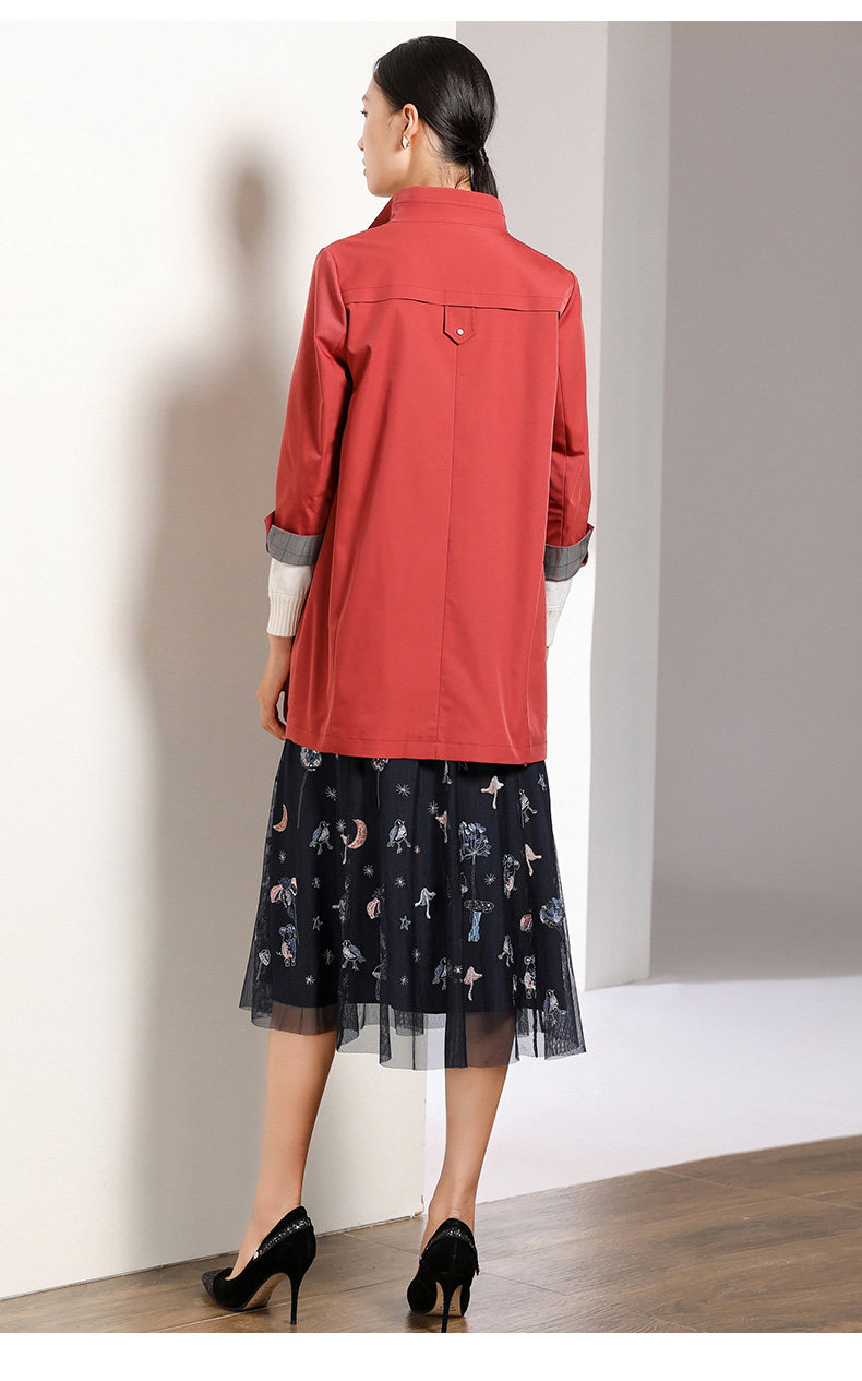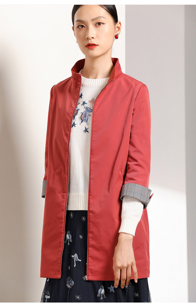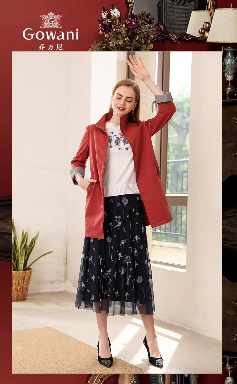 乔万尼秋装流行红色宽松直筒气质欧美风衣外套中长款EN3A326