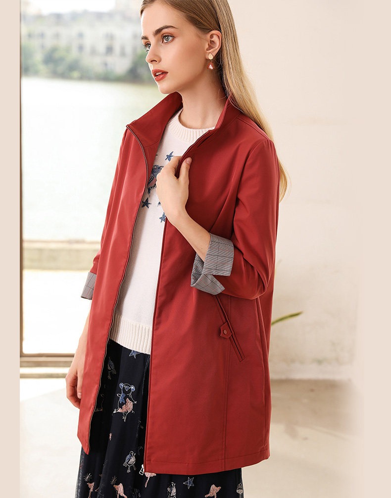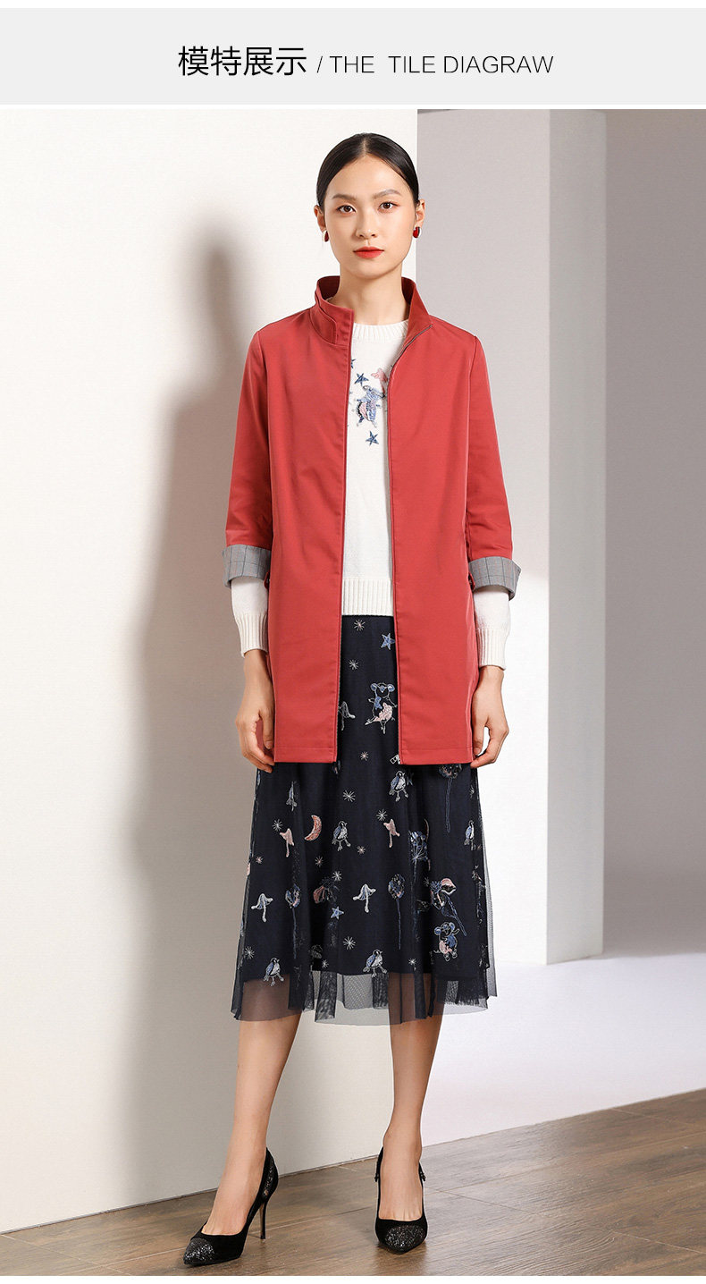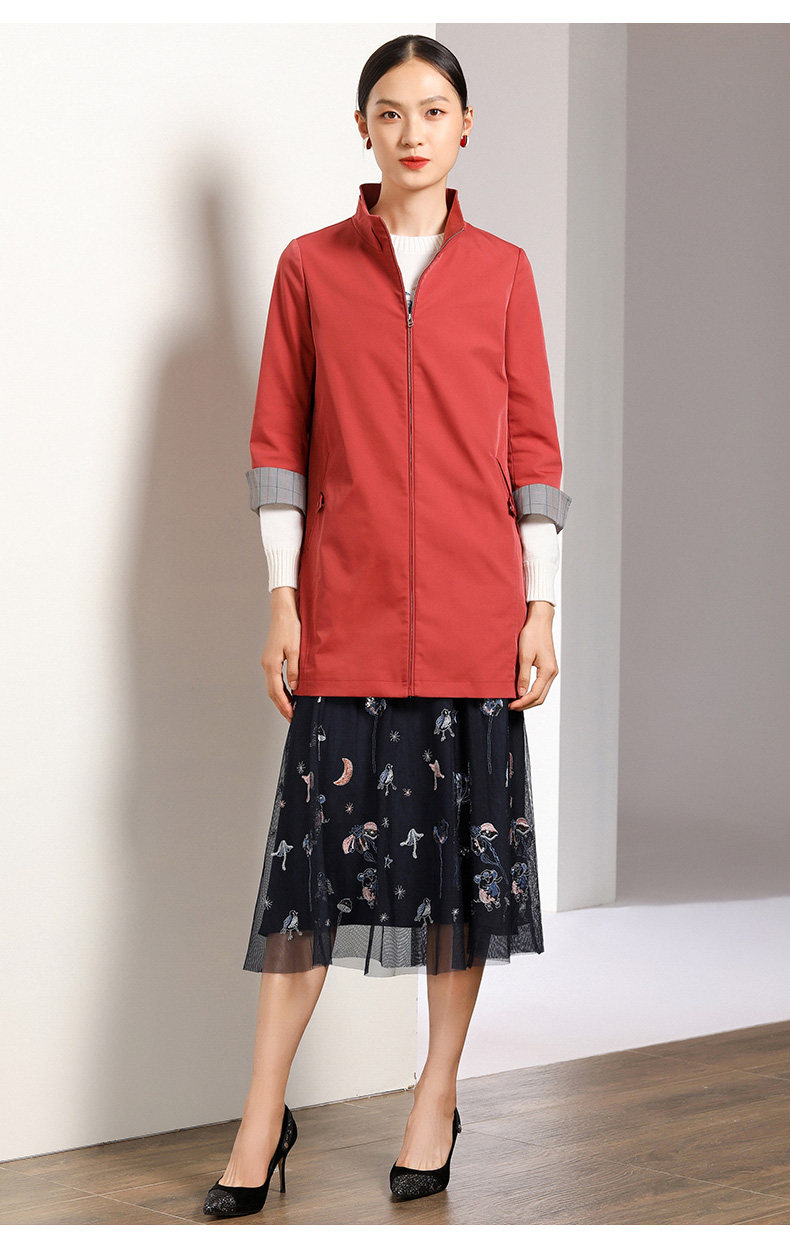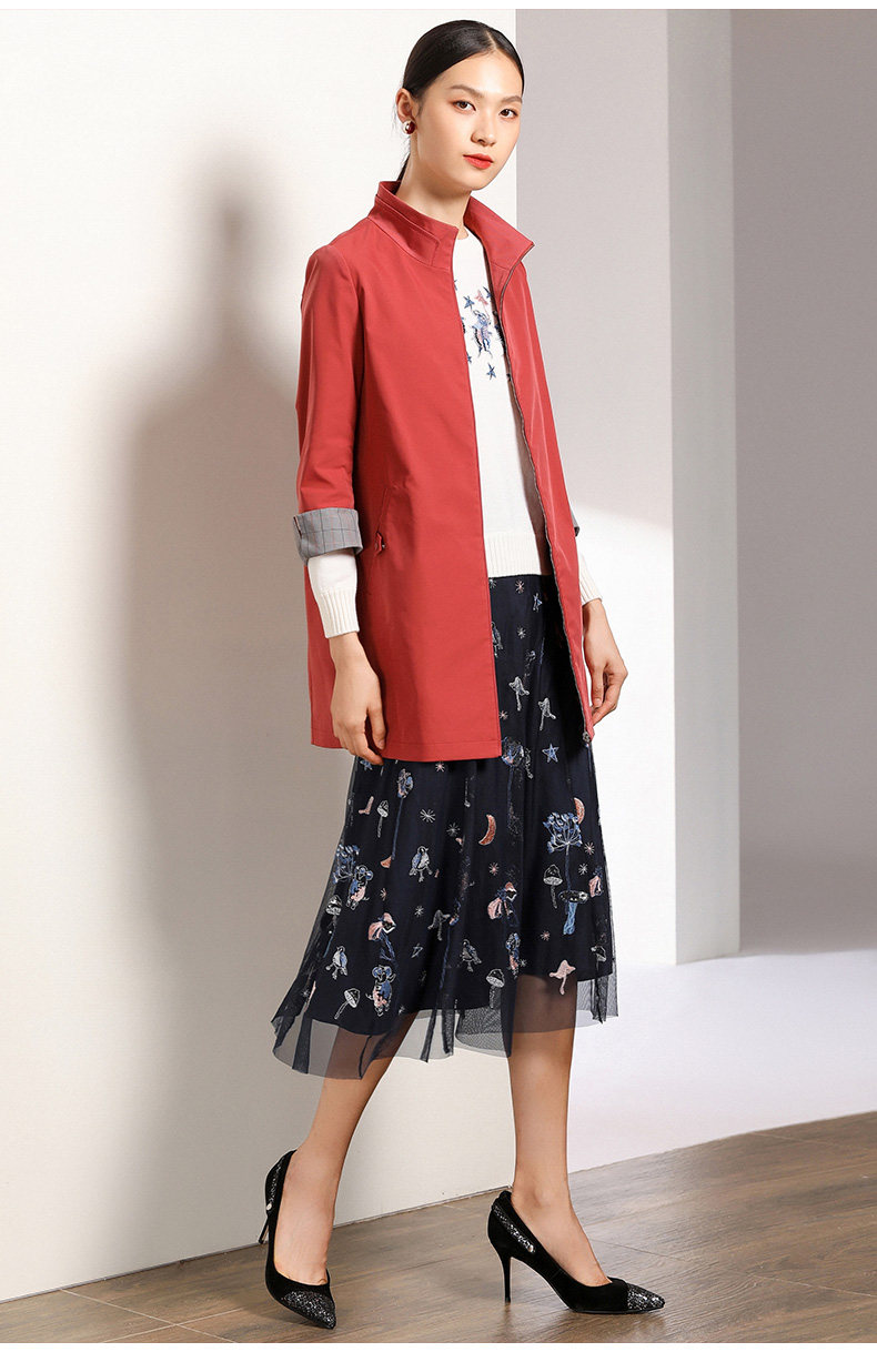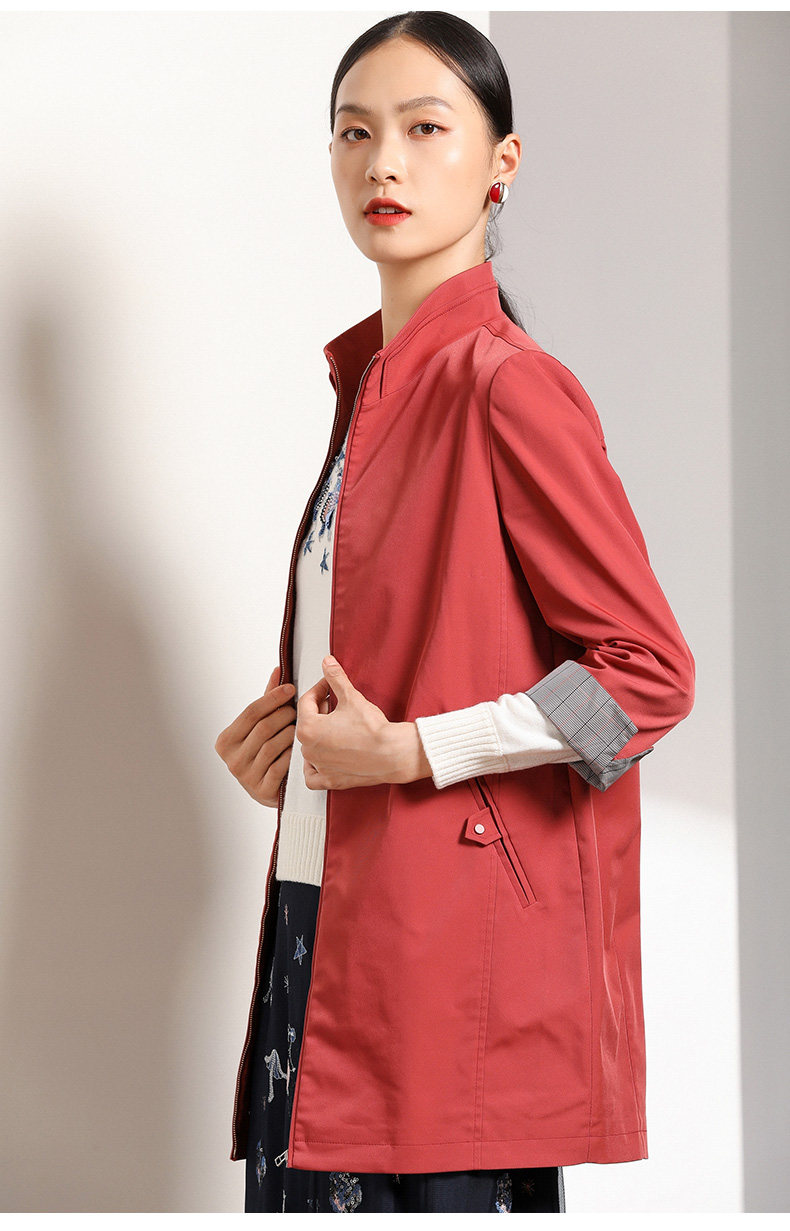乔万尼秋装流行红色宽松直筒气质欧美风衣外套中长款EN3A326