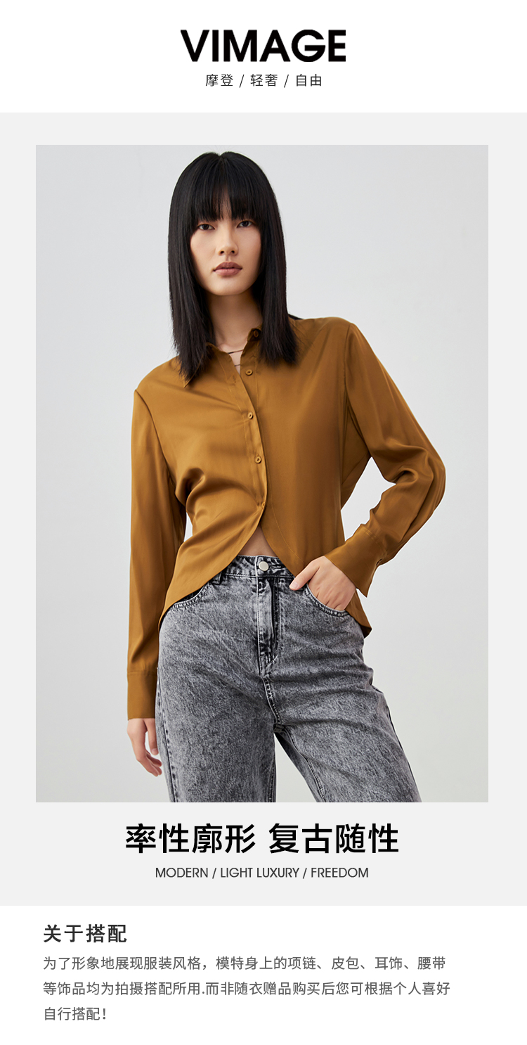 VIMAGE纬漫纪春季新款设计感显瘦收腰短款衬衫上衣女V1709309