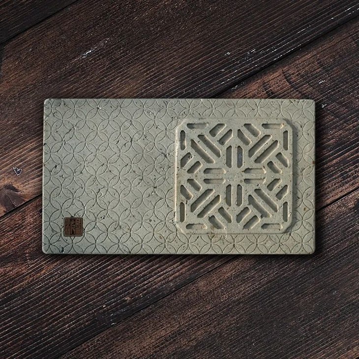 壶承尺寸约为25cm*14cm*3cm,重约2kg,具有吸水性,可作为壶承,不仅是一个可承载茶具的雅器,每次喝完茶后,还可将茶汤倒上去滋养它,享受养器之乐。除此之外,还可摆放香器、花器,为雅室置景。