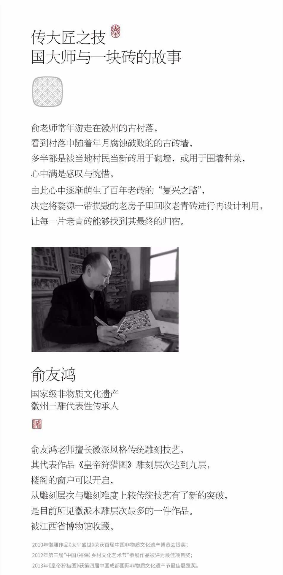 而小懂今天要给大家推荐的并非单纯的老屋旧砖,而是由青砖衍生出来的国家级非物质文化遗产徽州三雕之一的——青砖砖雕。