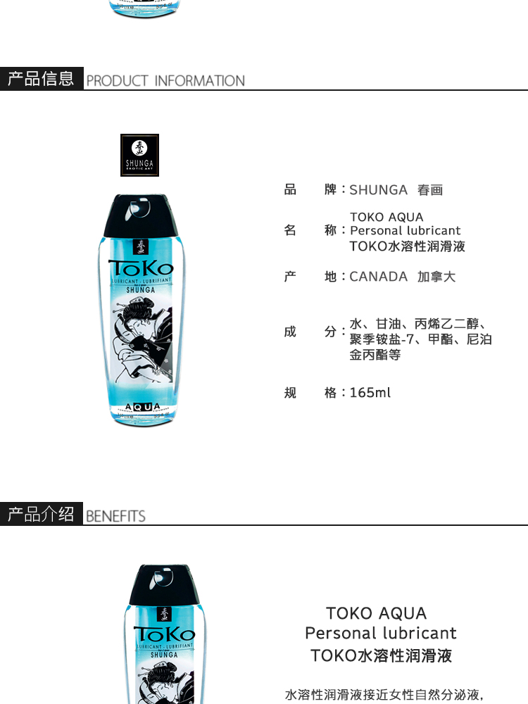 SHUNGA春画 水溶性润滑液 免洗润滑油 人体润滑剂 Toko Aqua