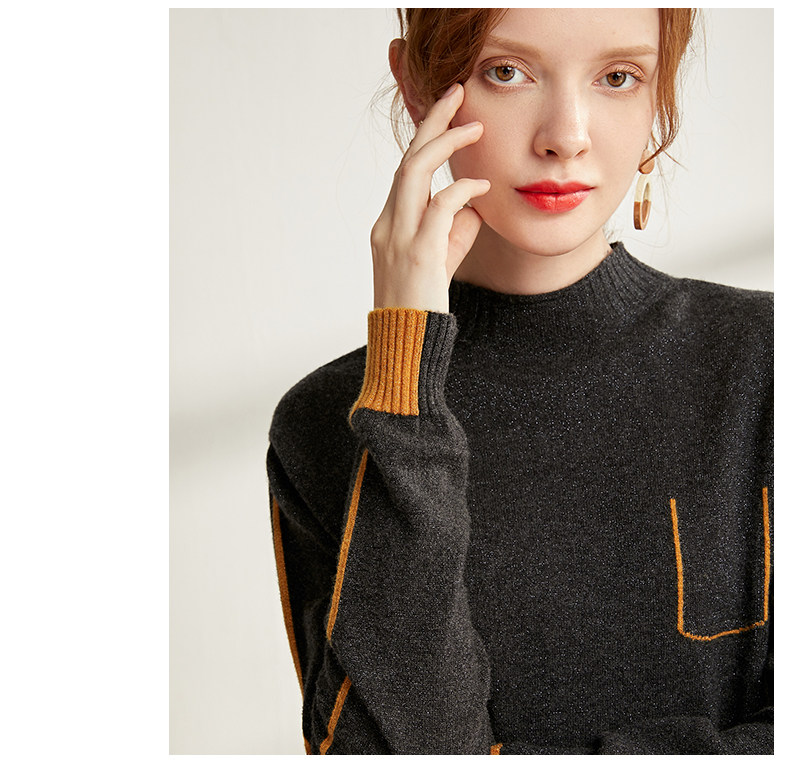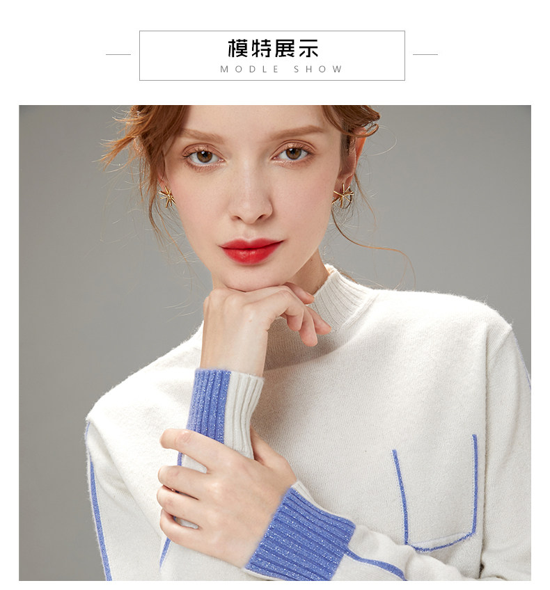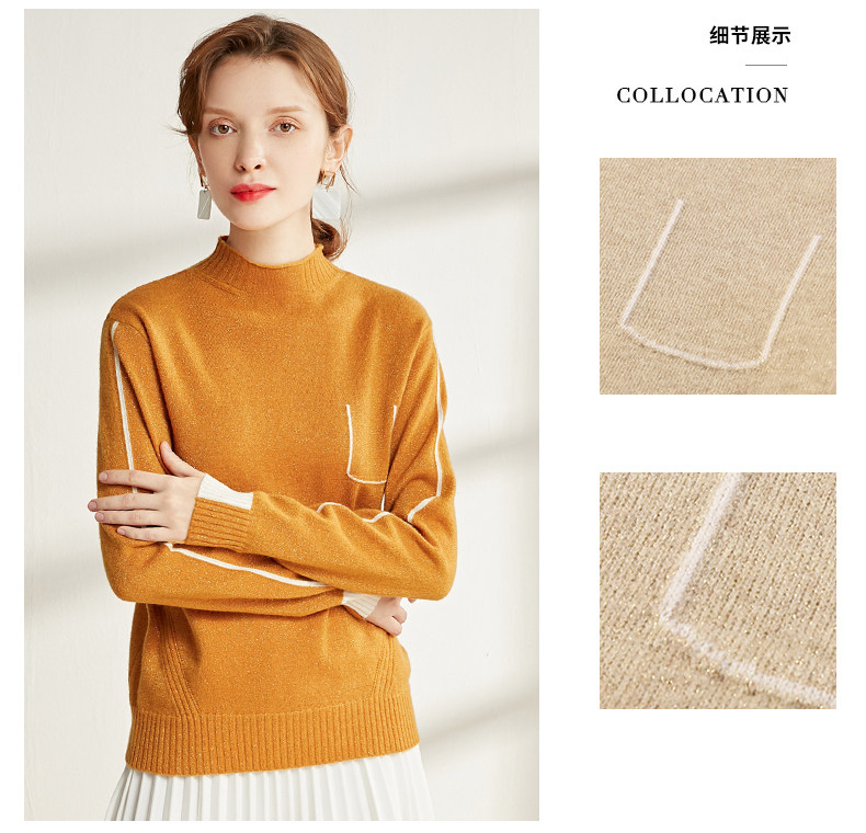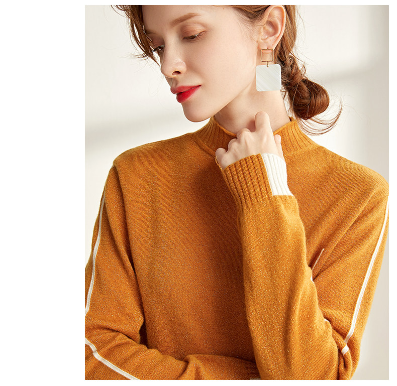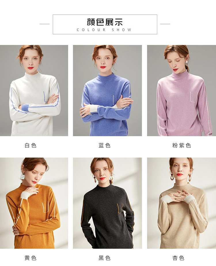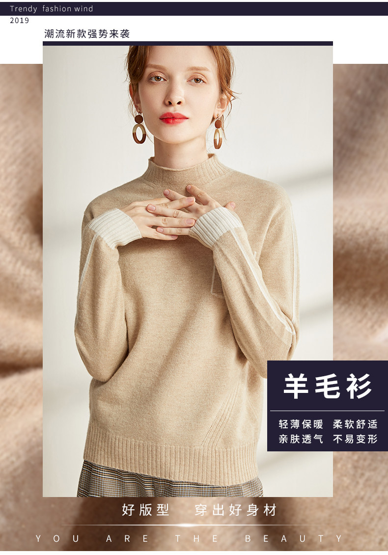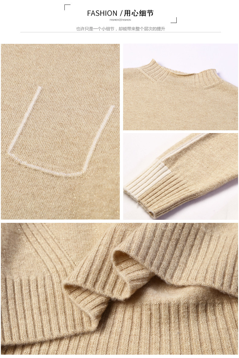 PY-19623 秋冬半高领毛衣女套头韩版宽松外穿加厚羊毛衫拼色短款打底针织衫